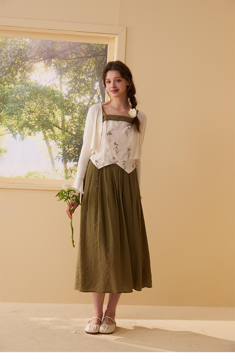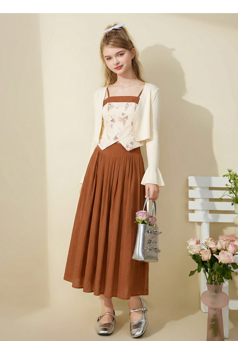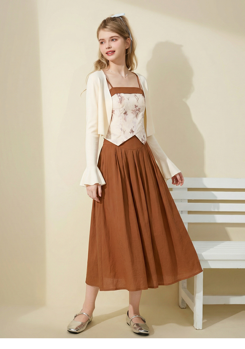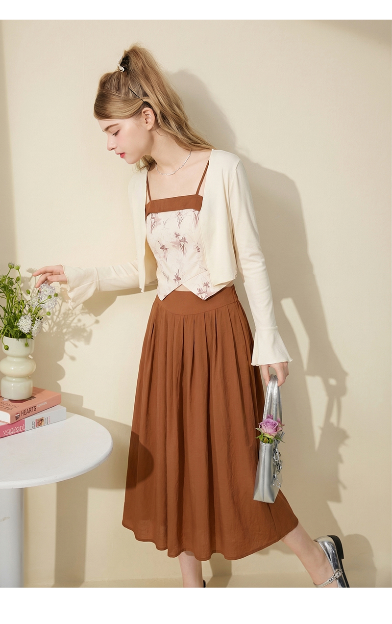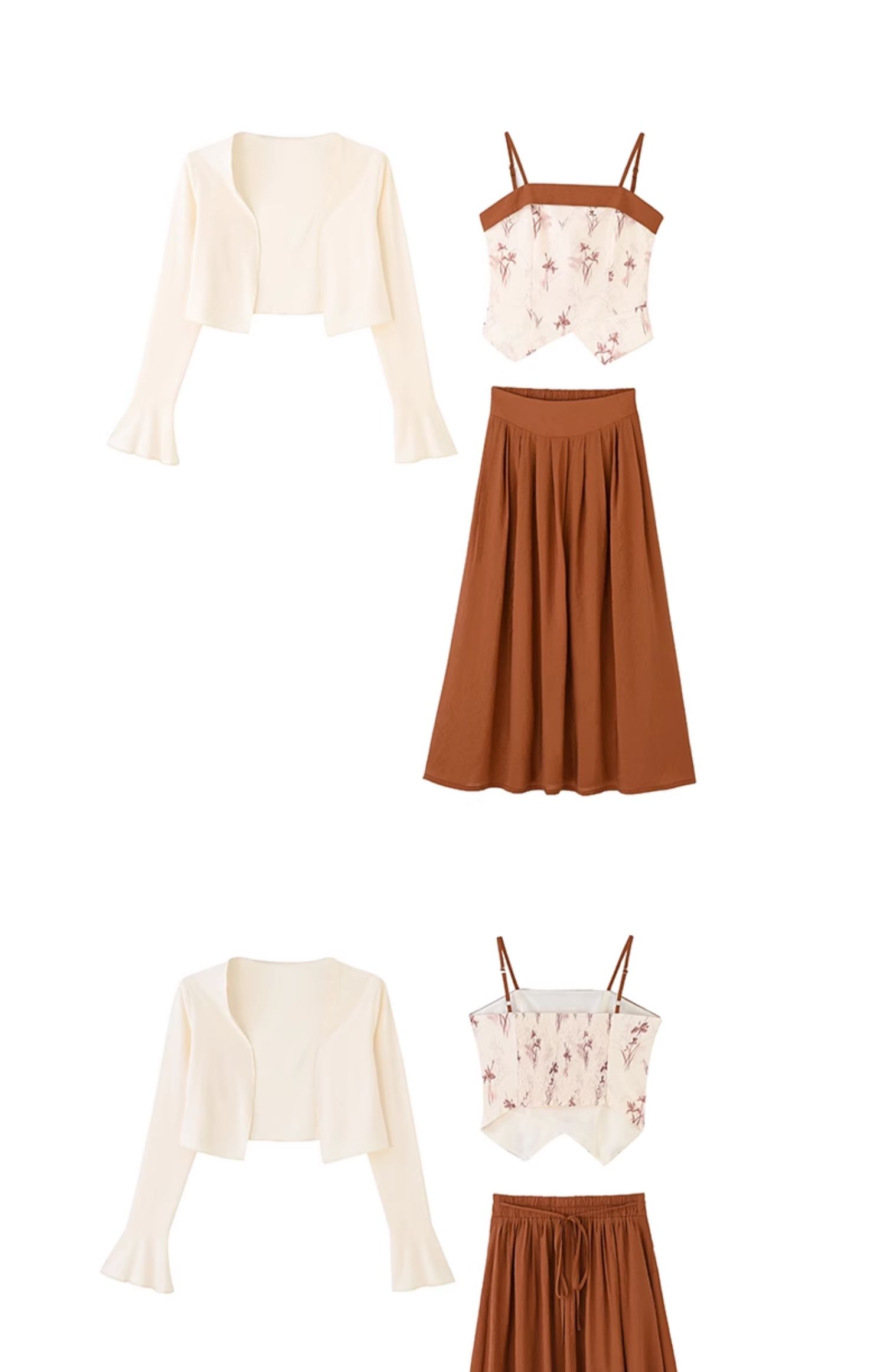 女装针织外披配抹胸吊带加长伞裙三件套S4221002