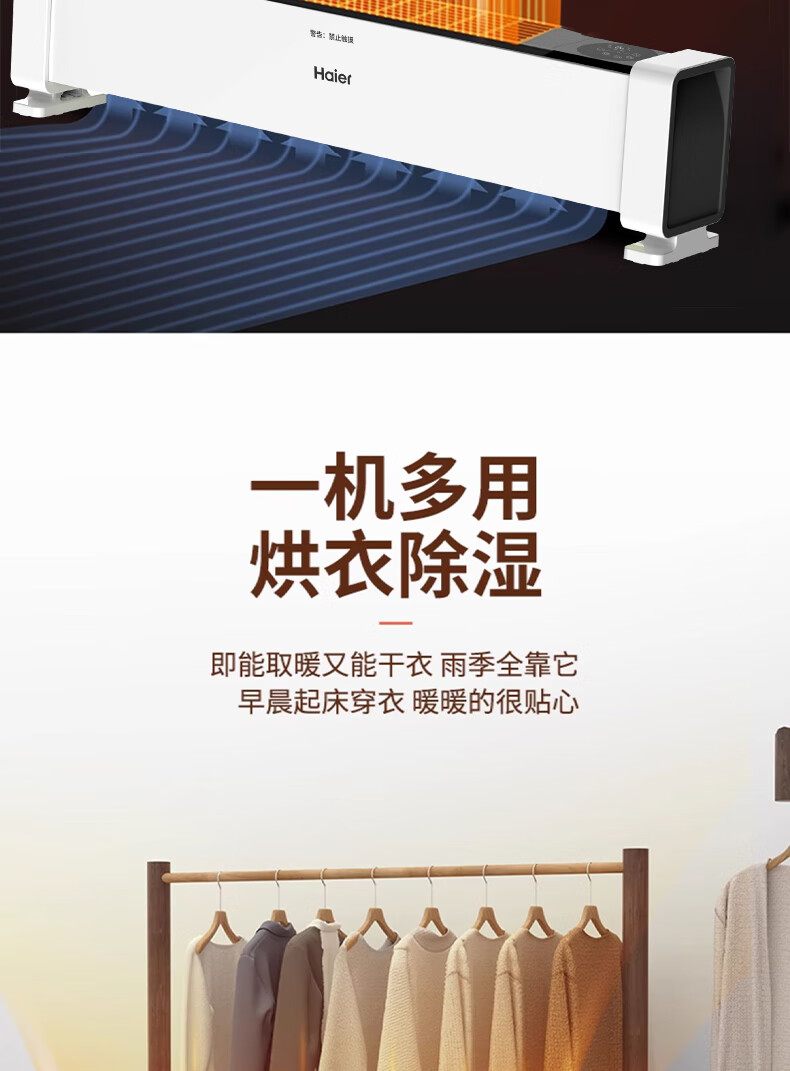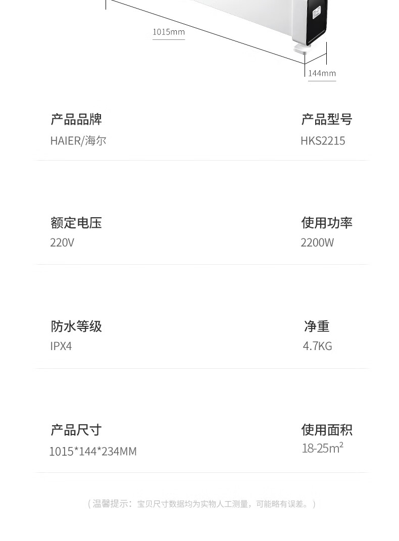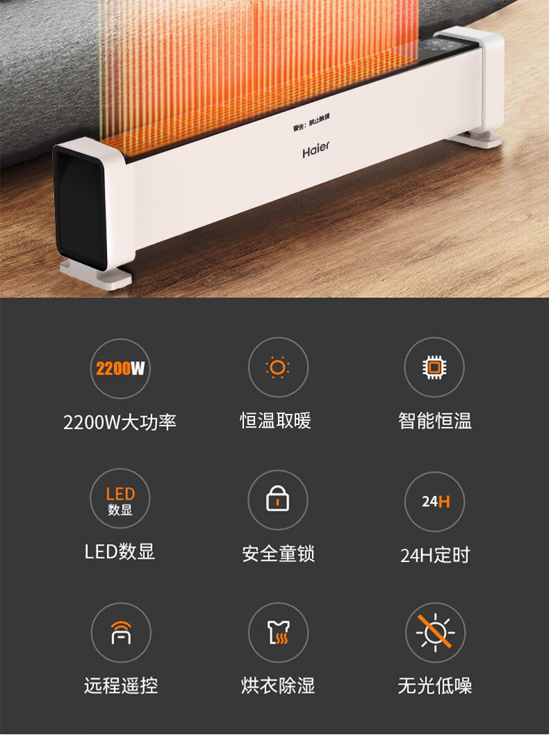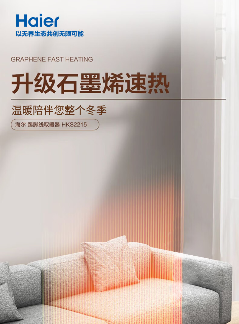 海尔海尔踢脚线取暖器石墨烯室内电暖器大功率恒温暖风机HKS2215
