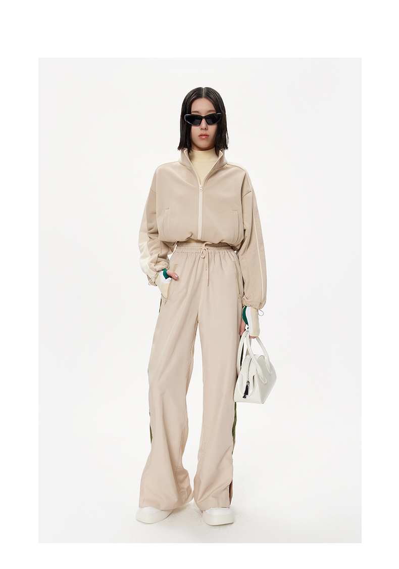lost in echo设计师品牌休闲百搭侧开衩拼接撞色宽松运动直筒长裤