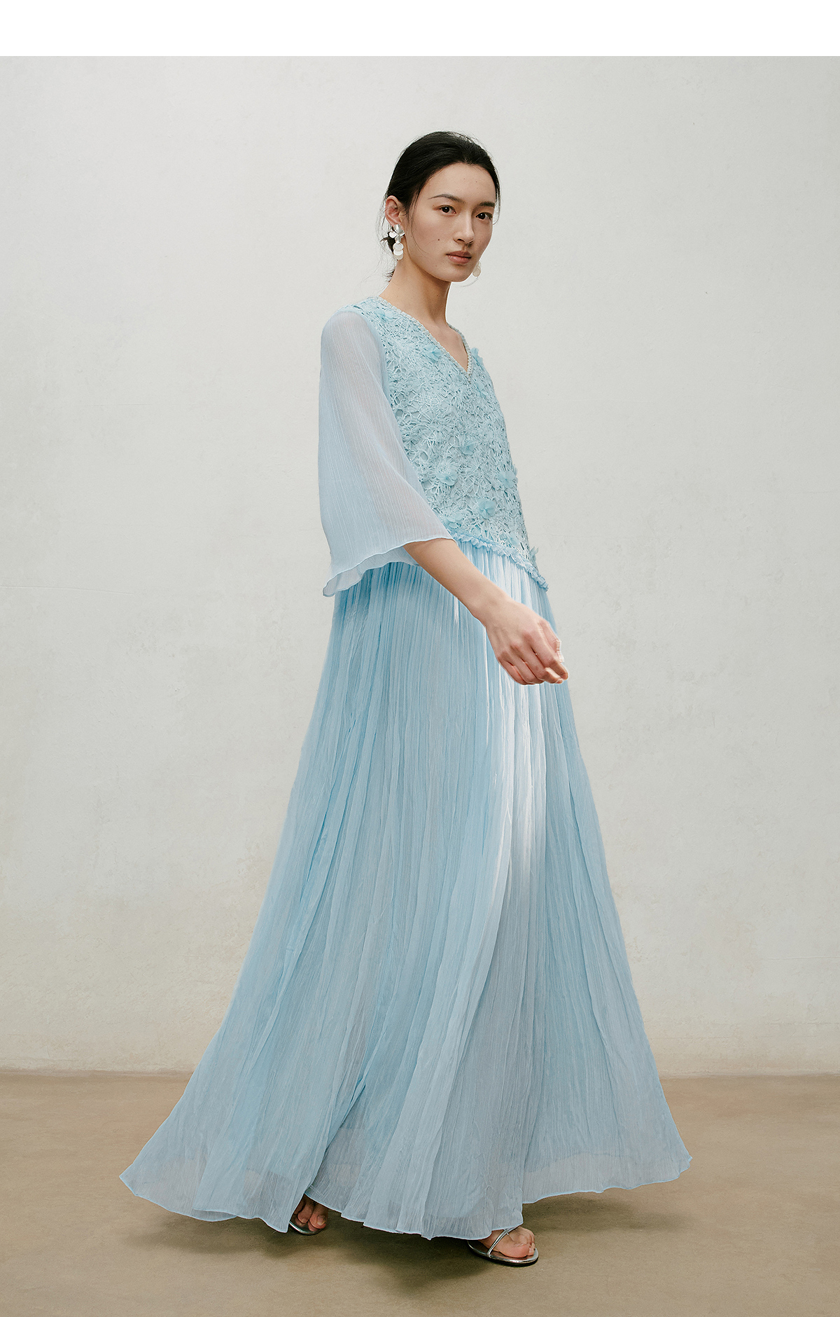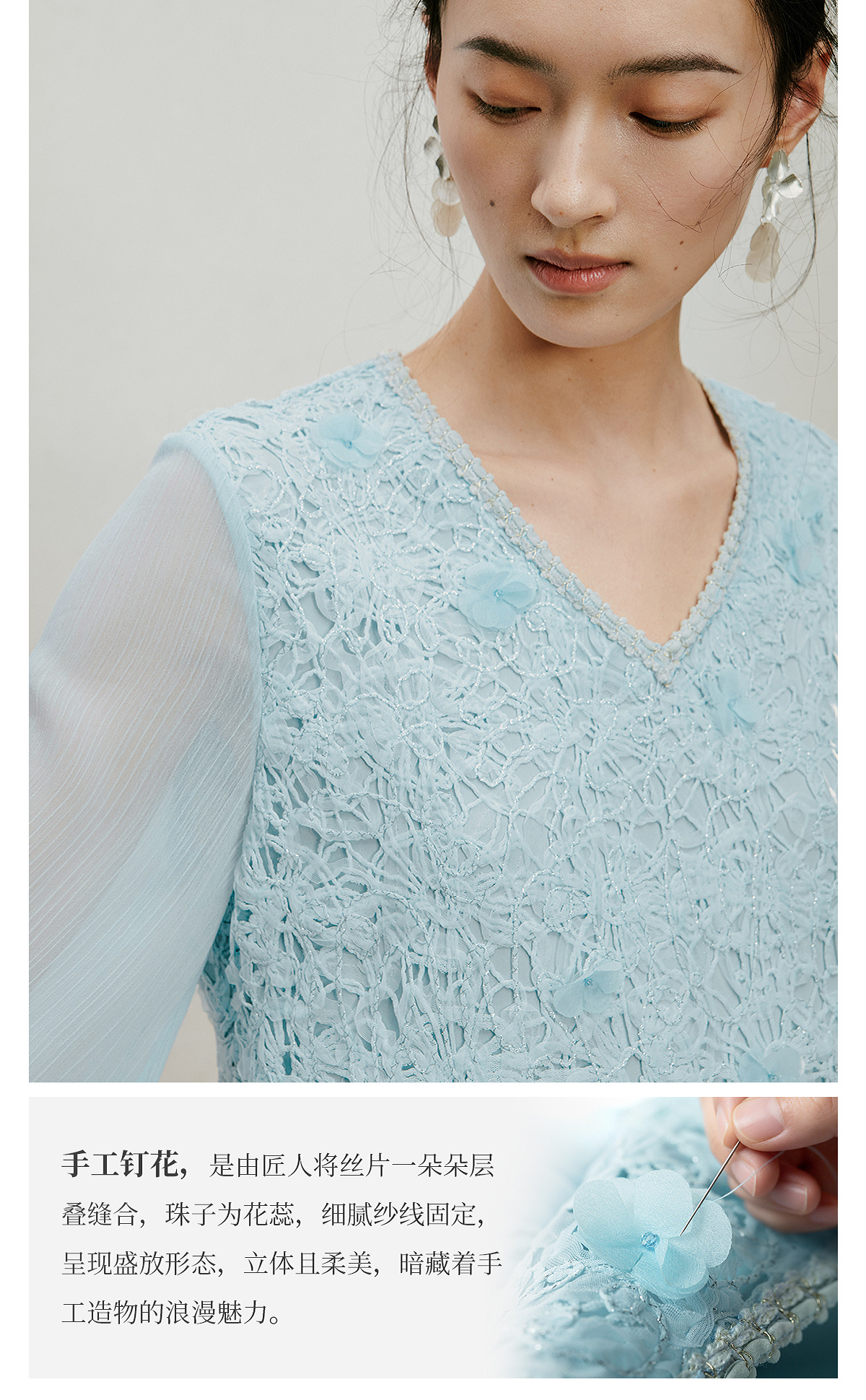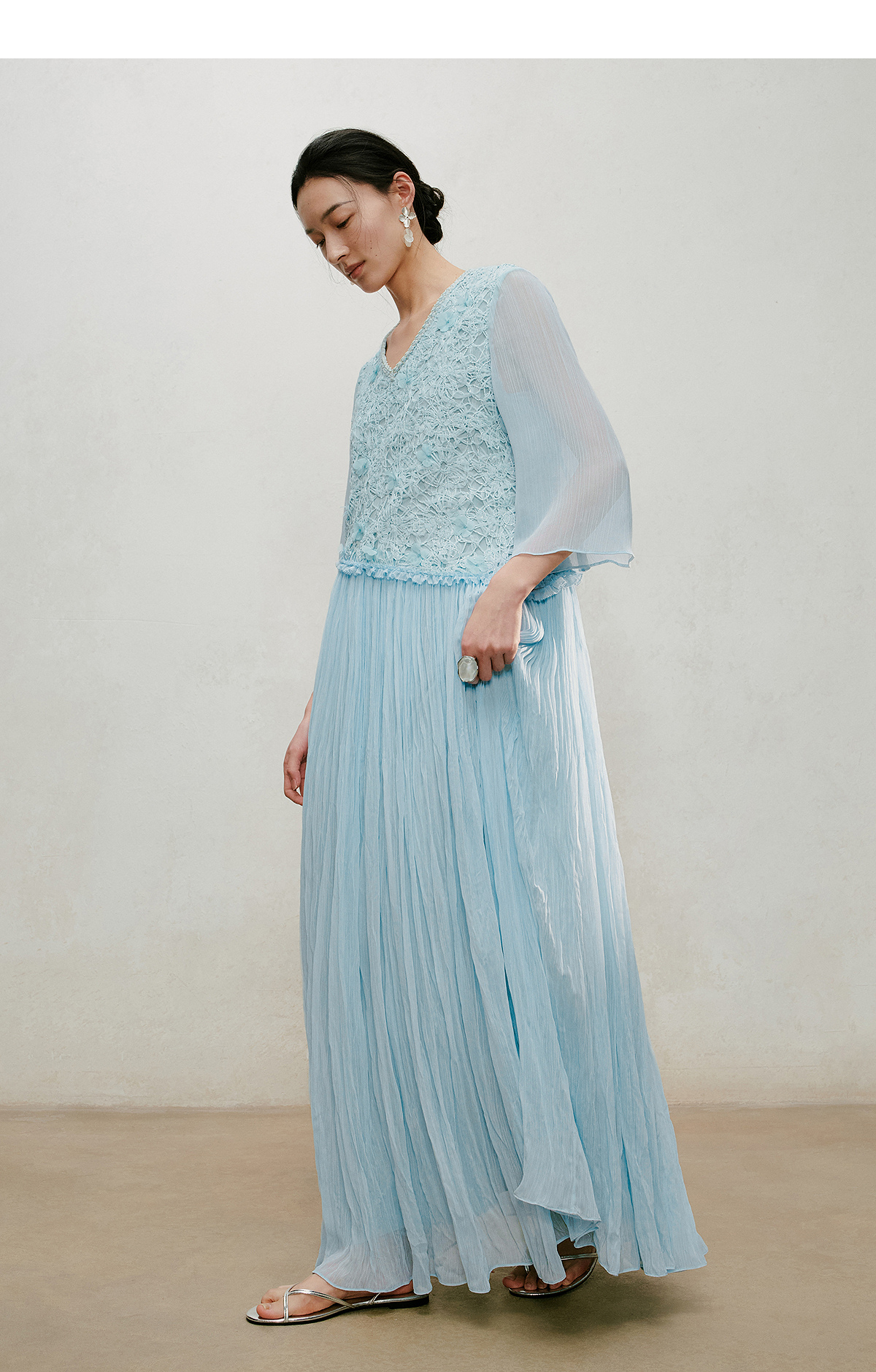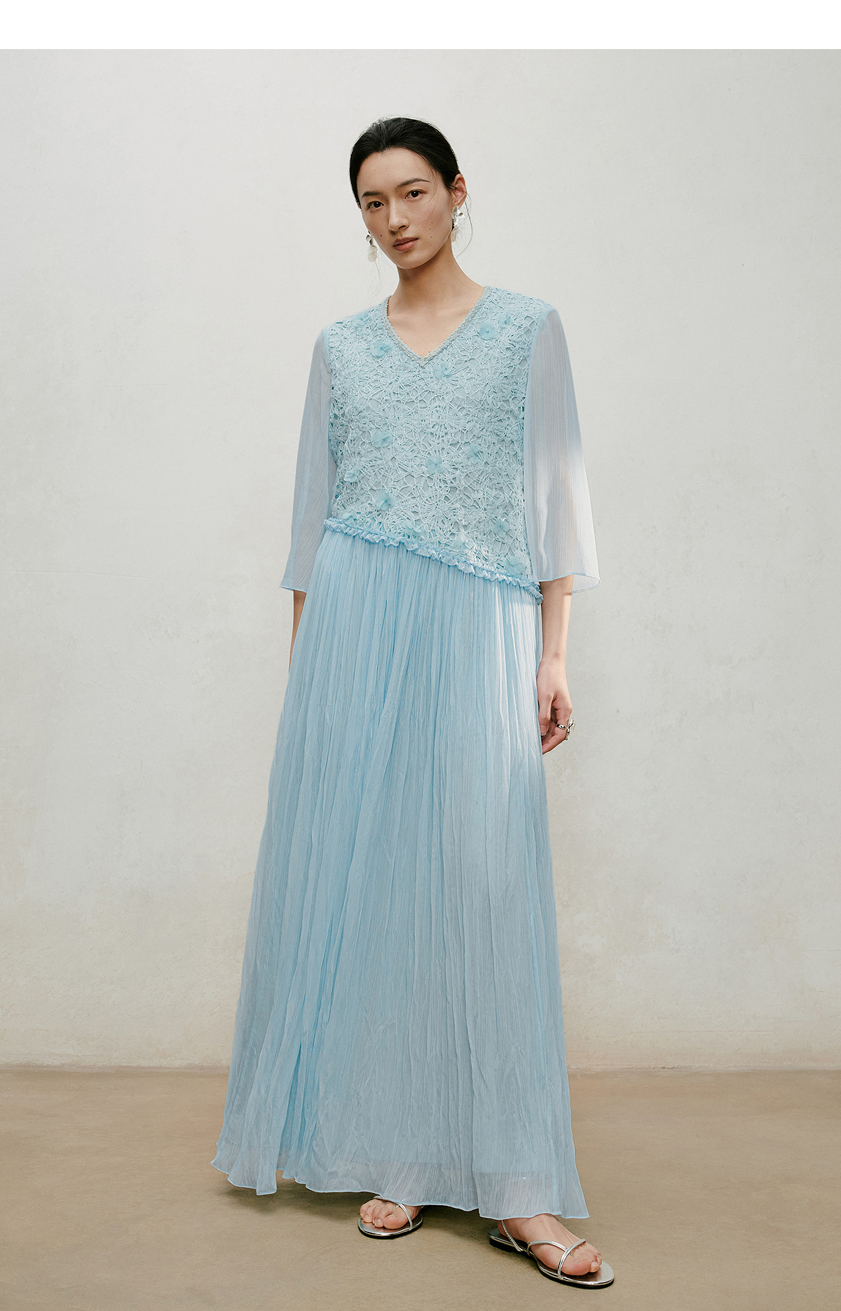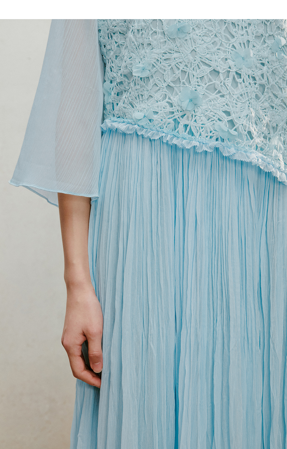 【林栖设计小店】手工钉花|优雅多色刺绣蕾丝宽松2026夏新款百褶连衣裙1962134