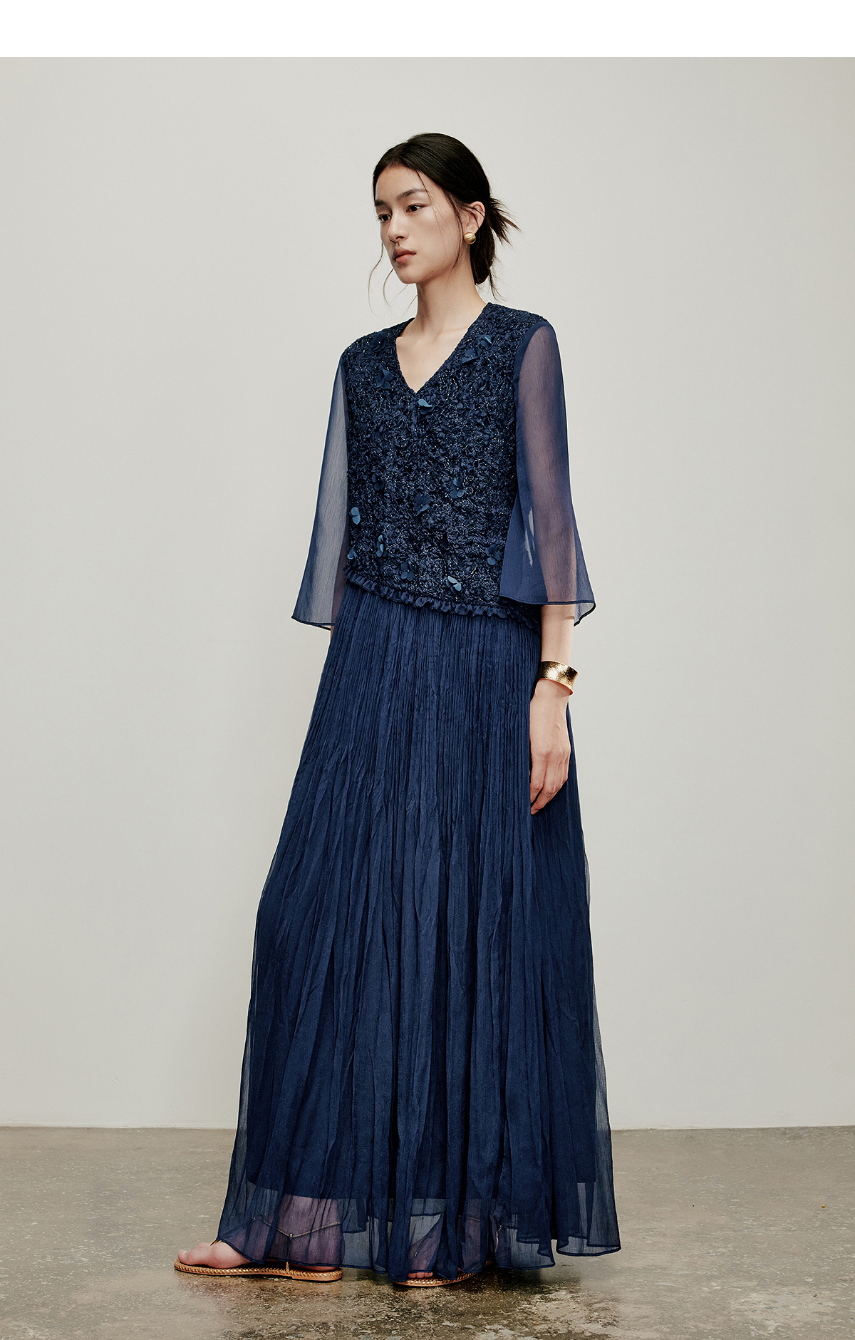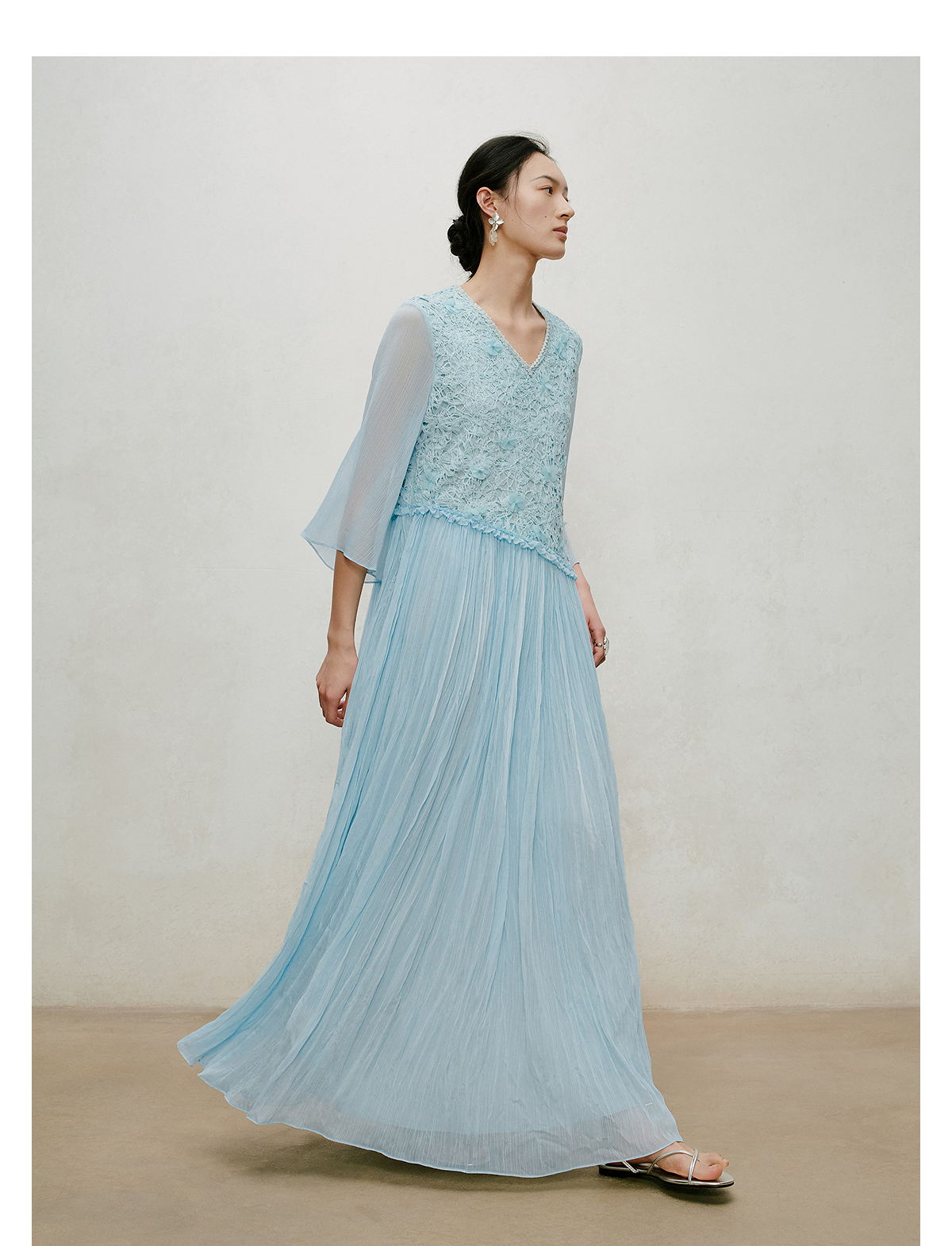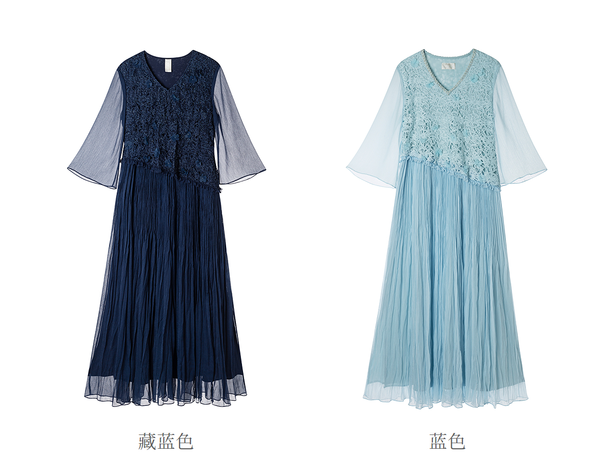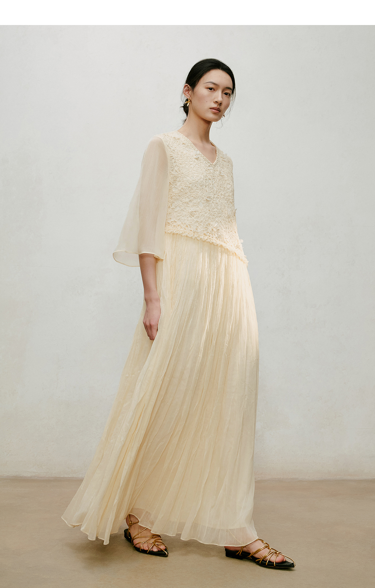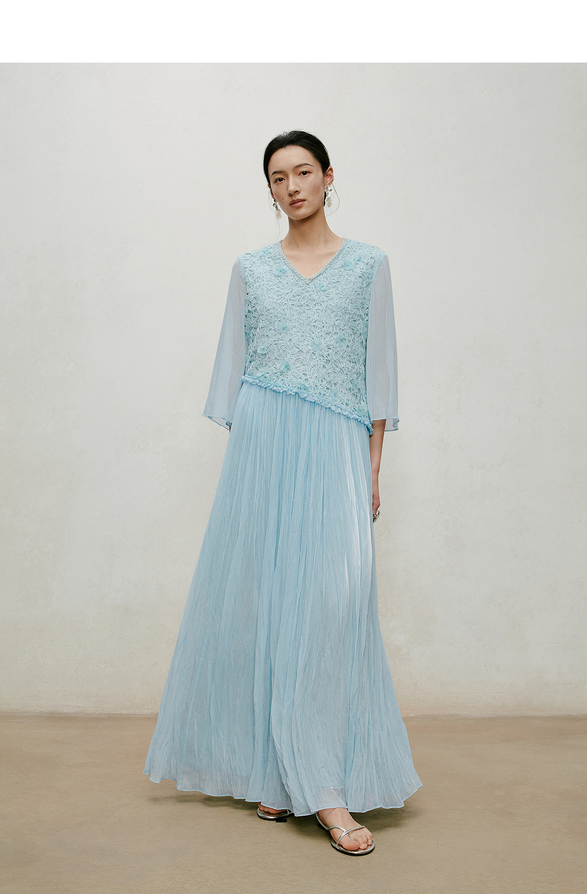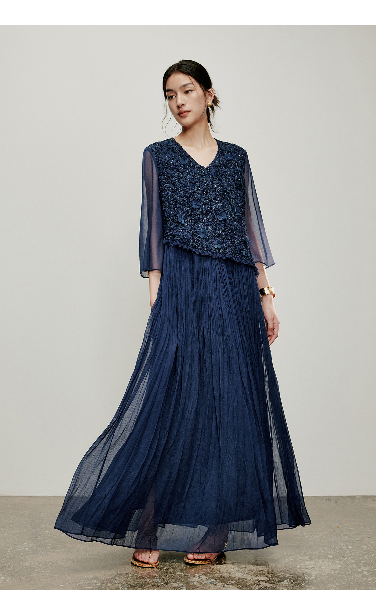 【林栖设计小店】手工钉花|优雅多色刺绣蕾丝宽松2026夏新款百褶连衣裙1962134