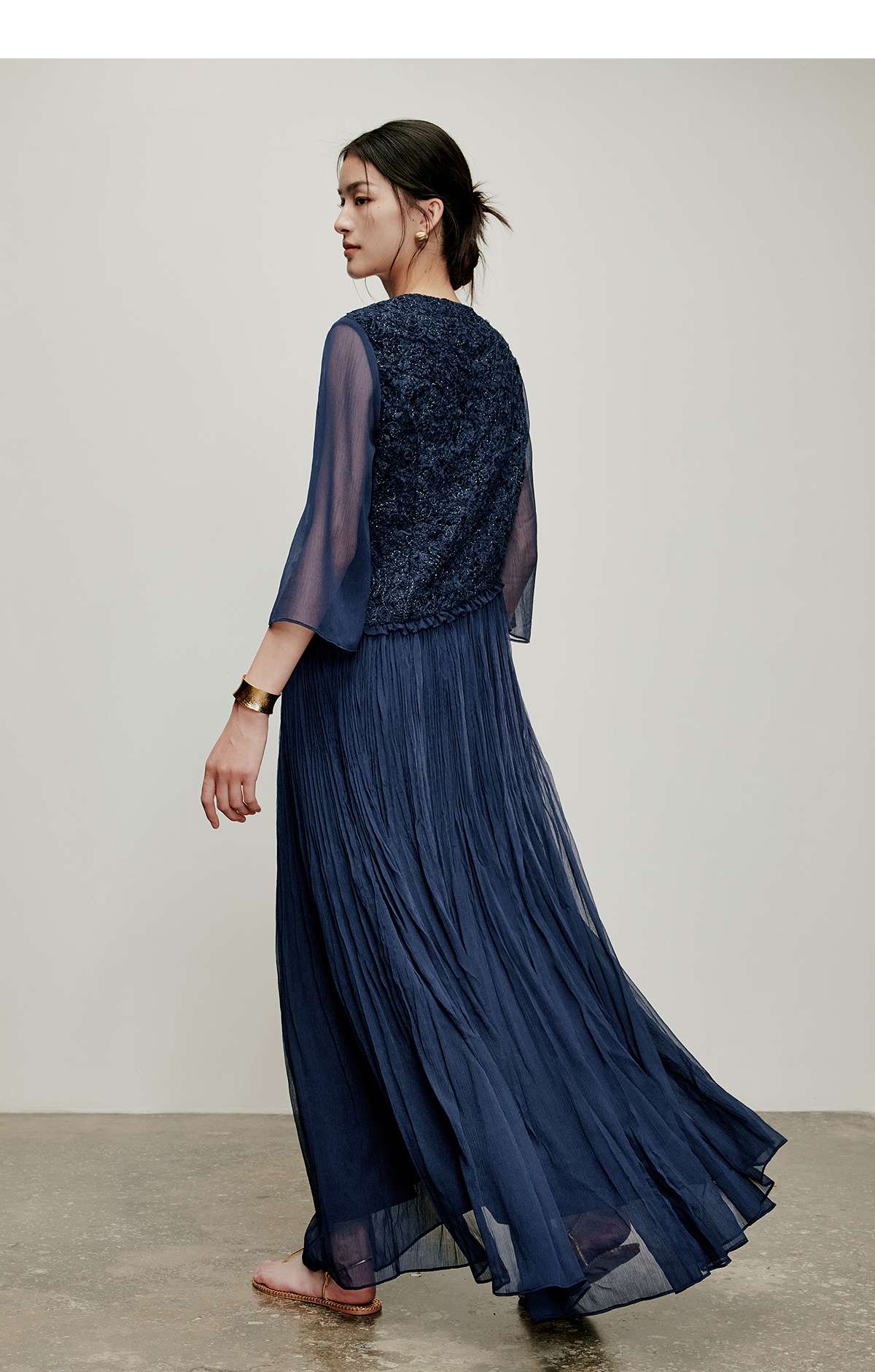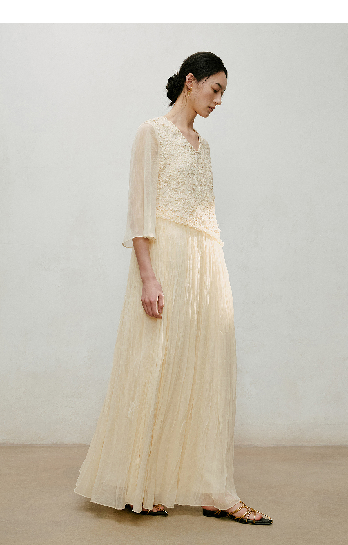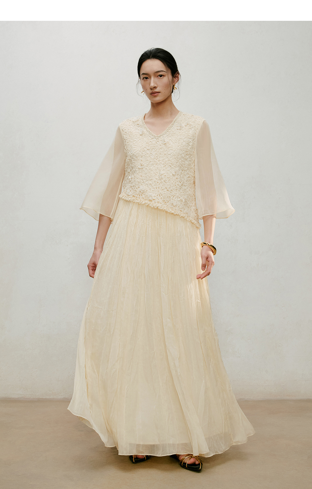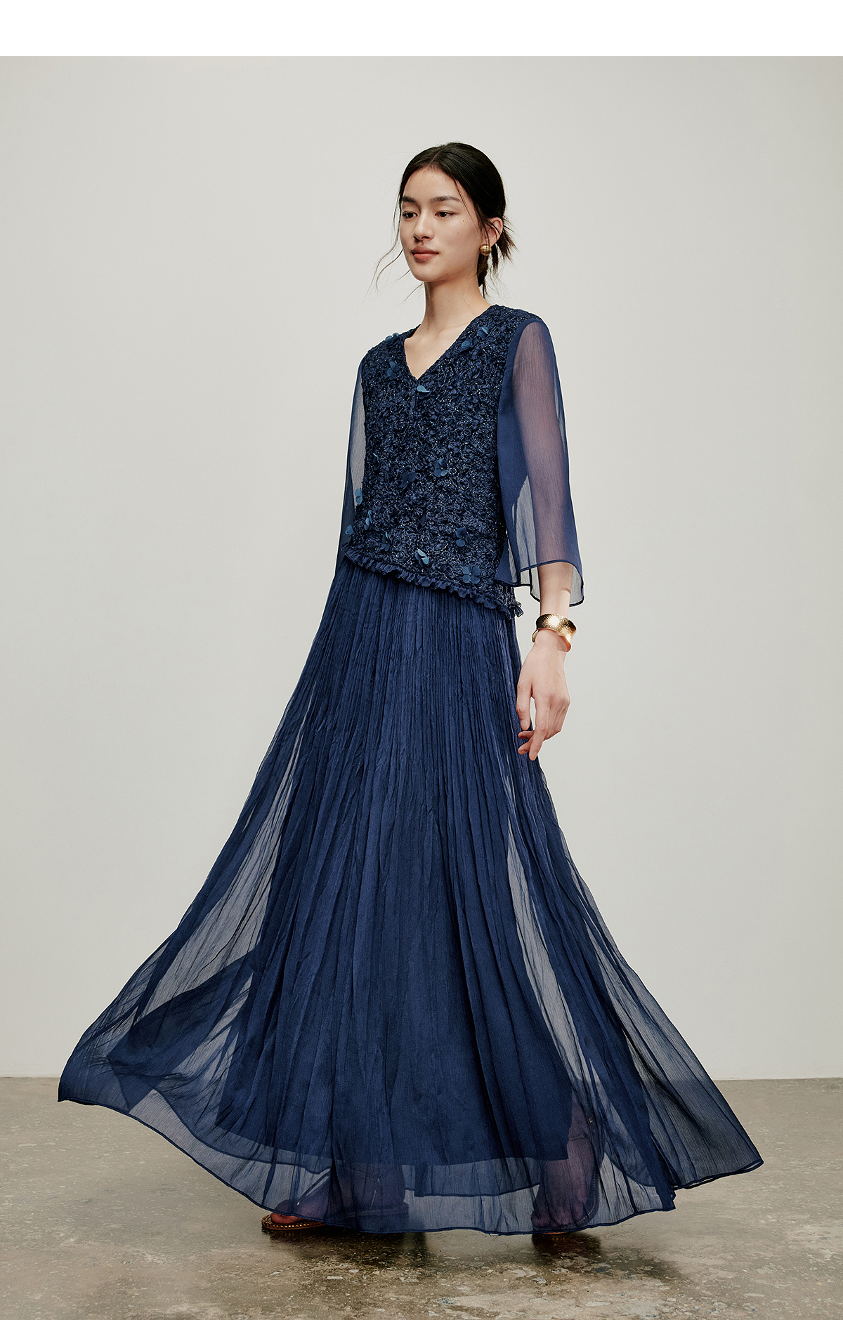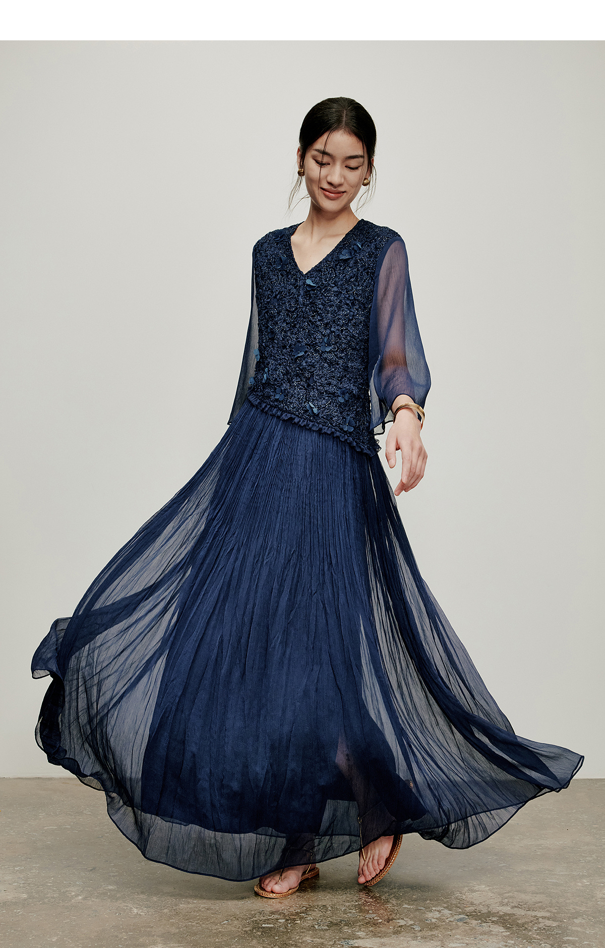【林栖设计小店】手工钉花|优雅多色刺绣蕾丝宽松2026夏新款百褶连衣裙1962134