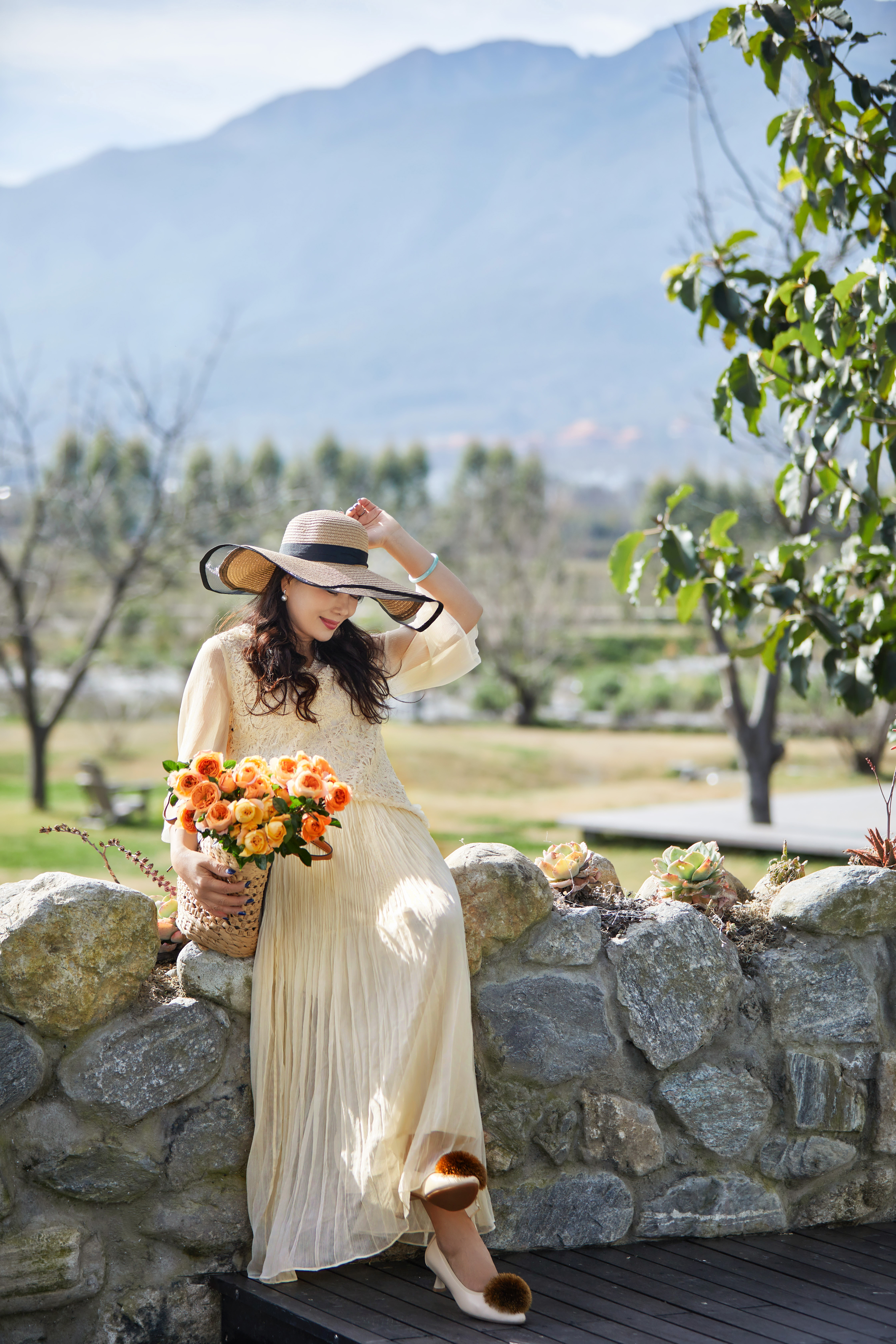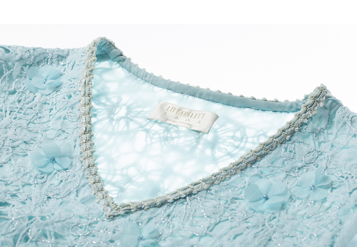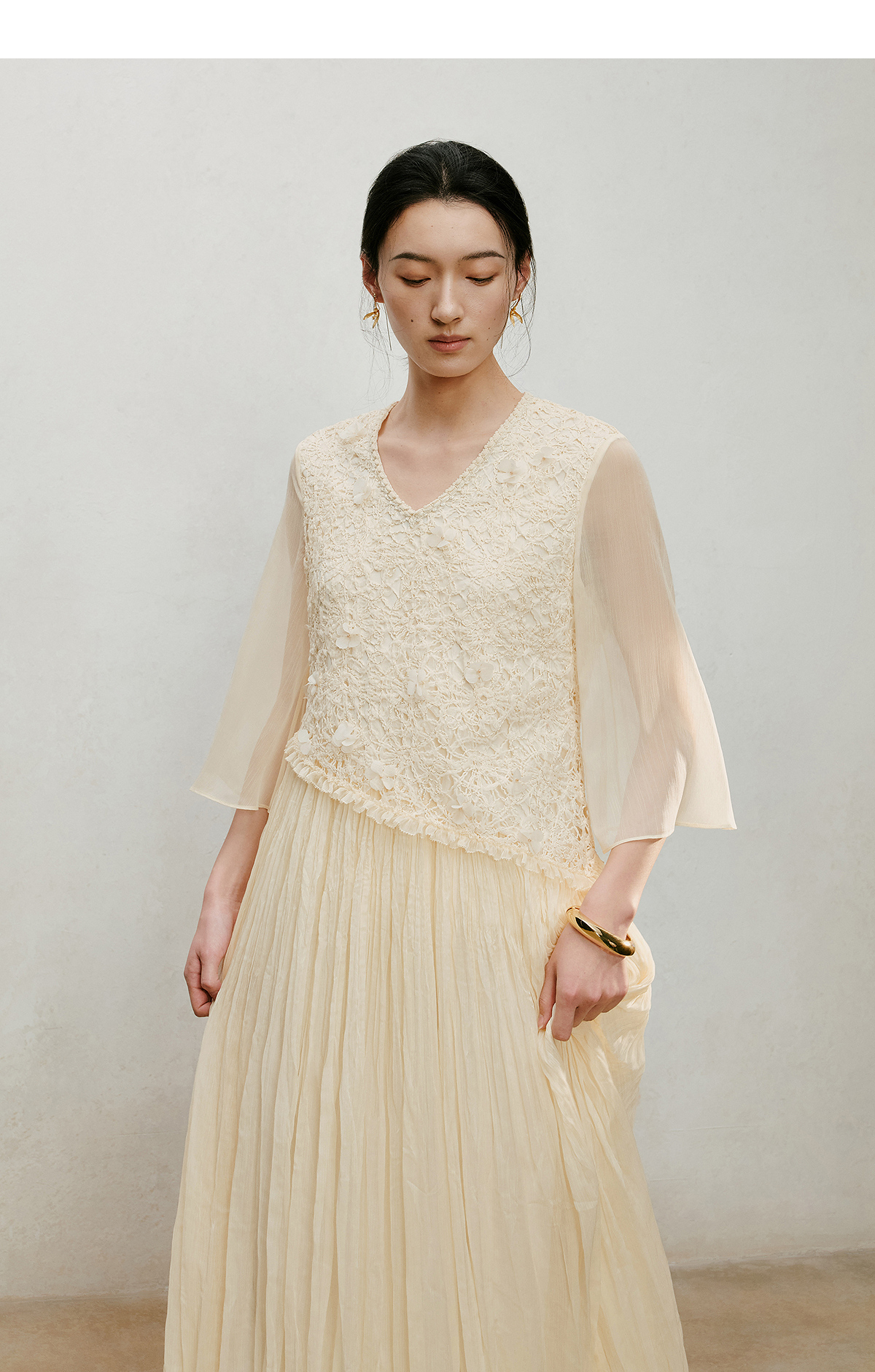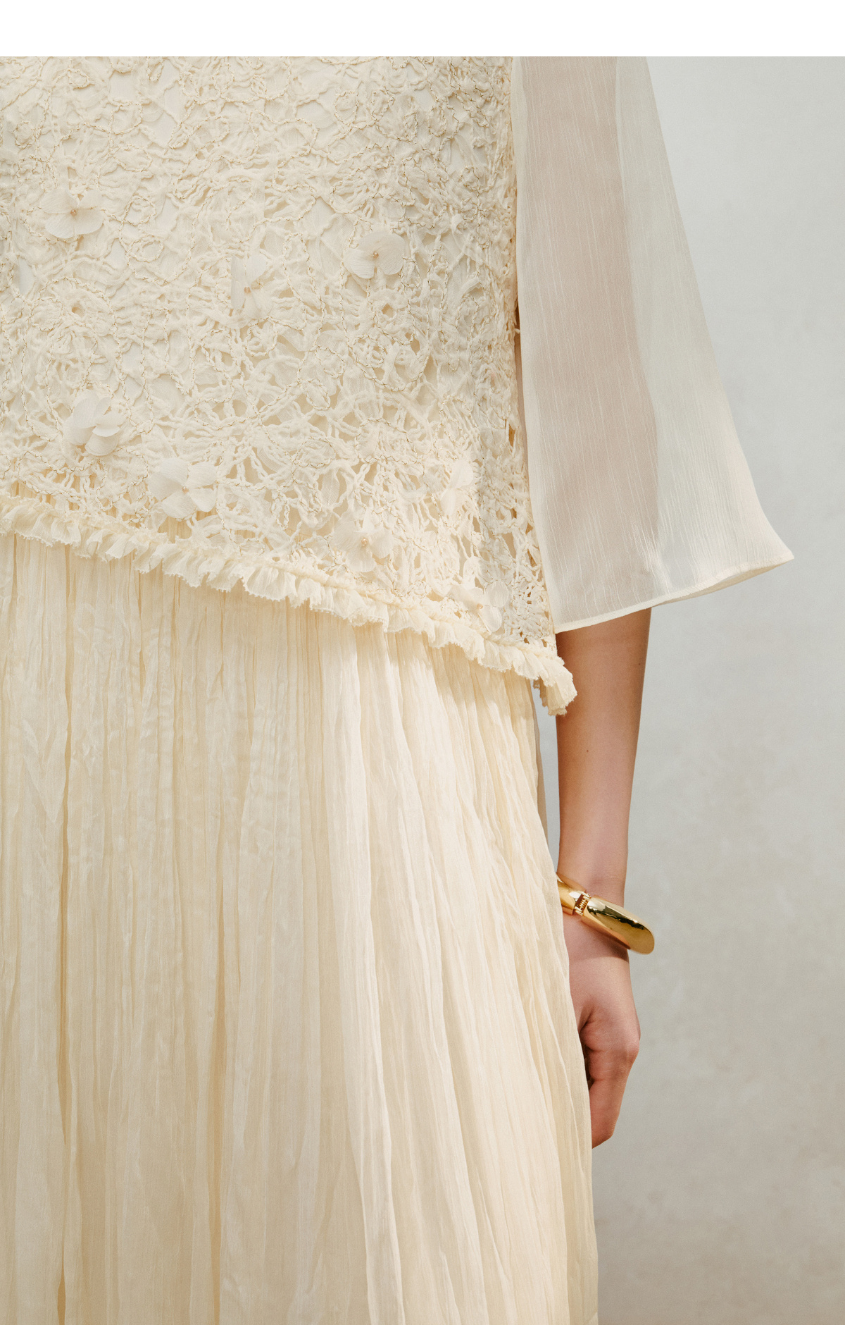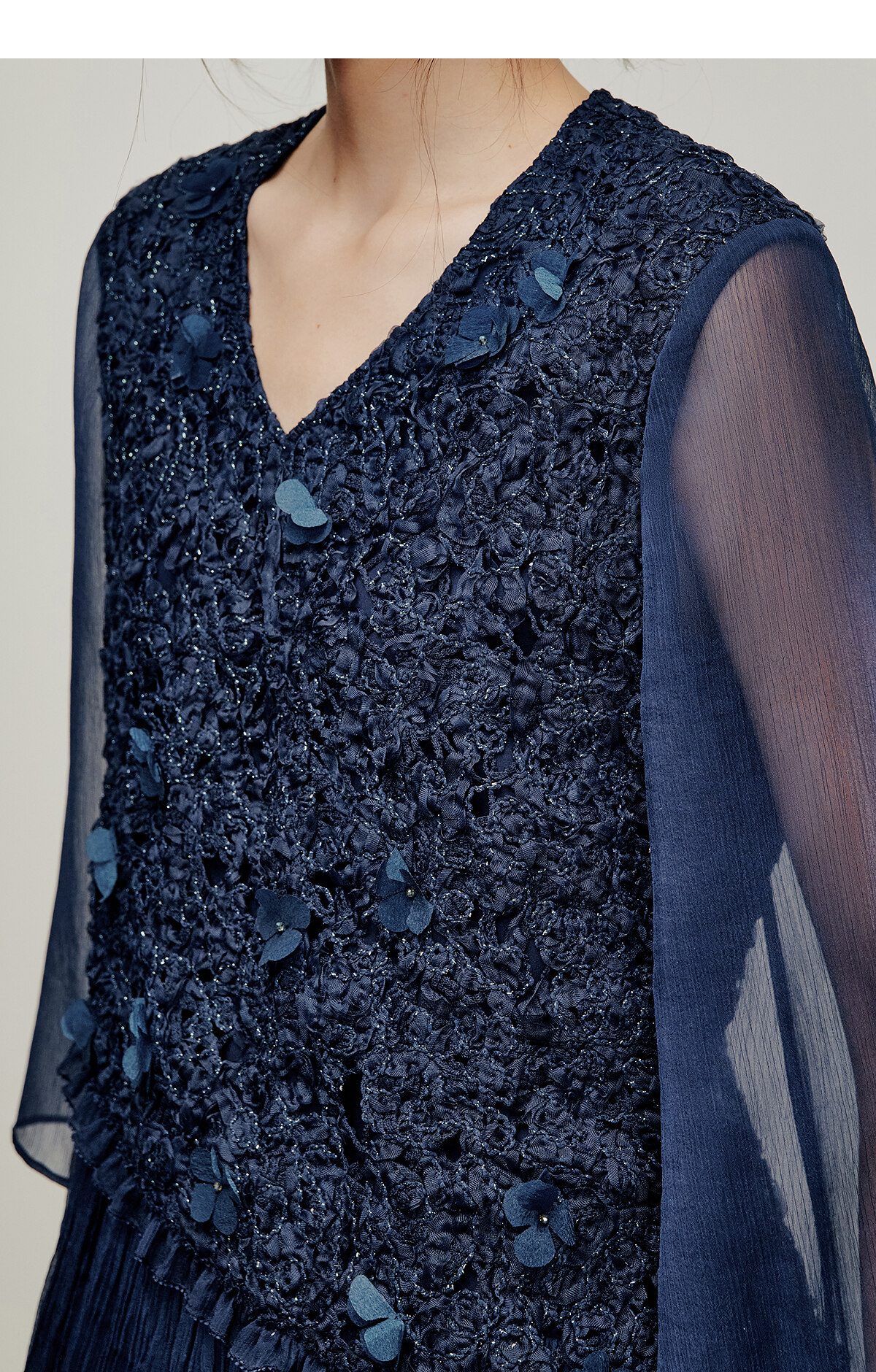 【林栖设计小店】手工钉花|优雅多色刺绣蕾丝宽松2026夏新款百褶连衣裙1962134