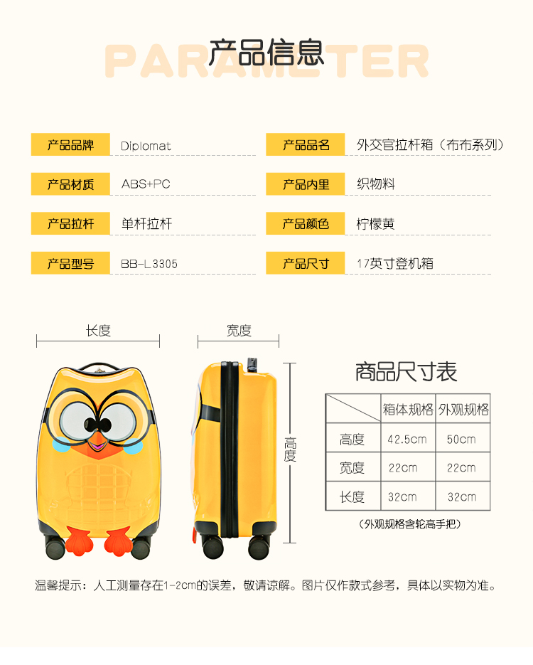 diplomat外交官儿童拉杆箱BB-L3305黄色17寸