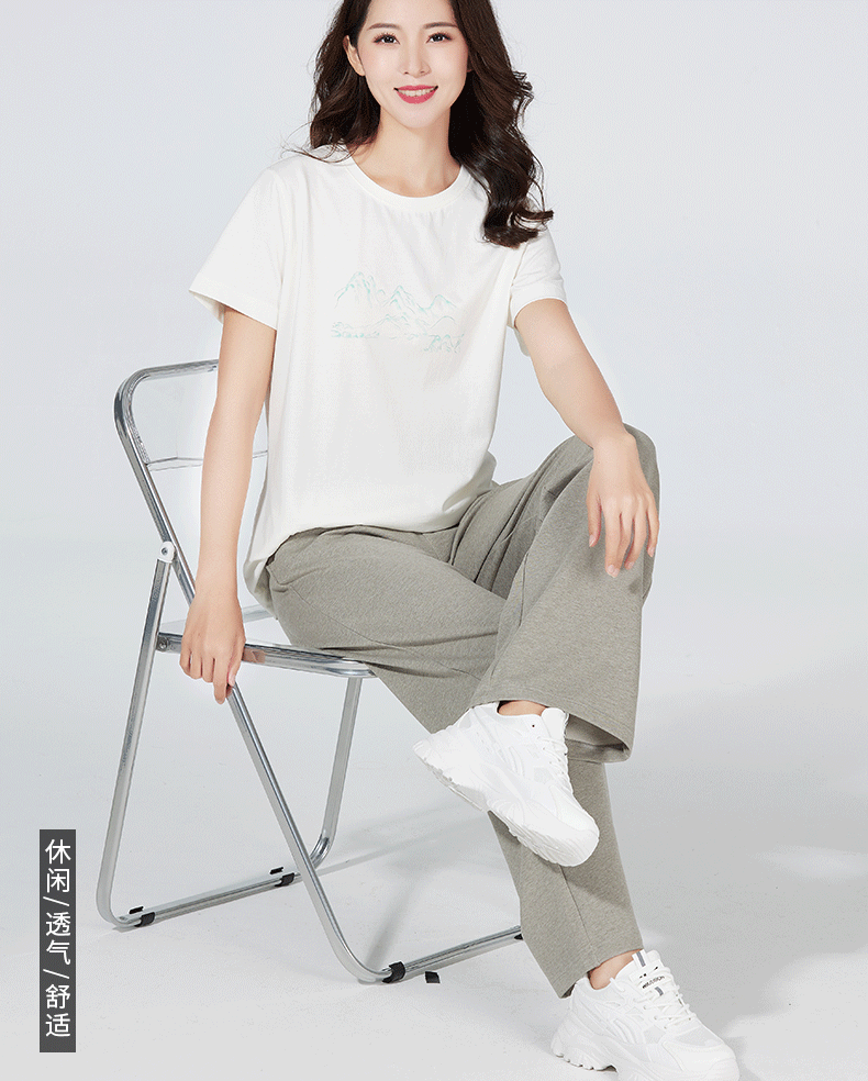 素道有机彩棉 女士宽松阔腿裤 针织夏季休闲长裤
