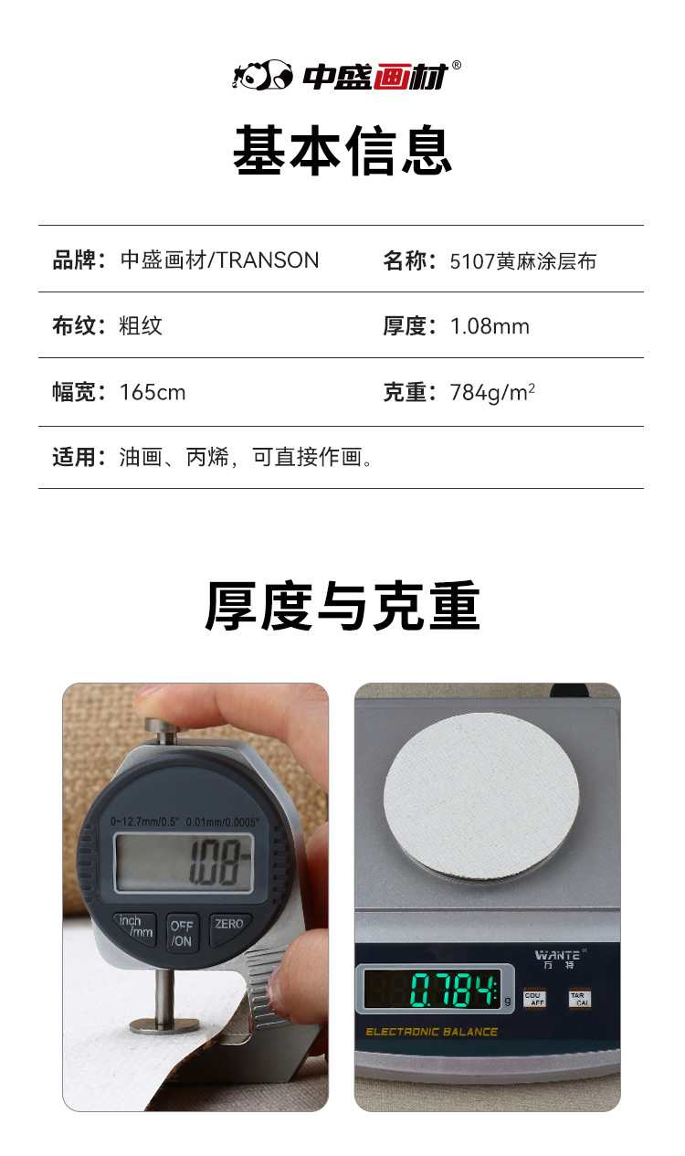 中盛画材 孟加拉国 黄麻加厚粗纹涂层油画布5107