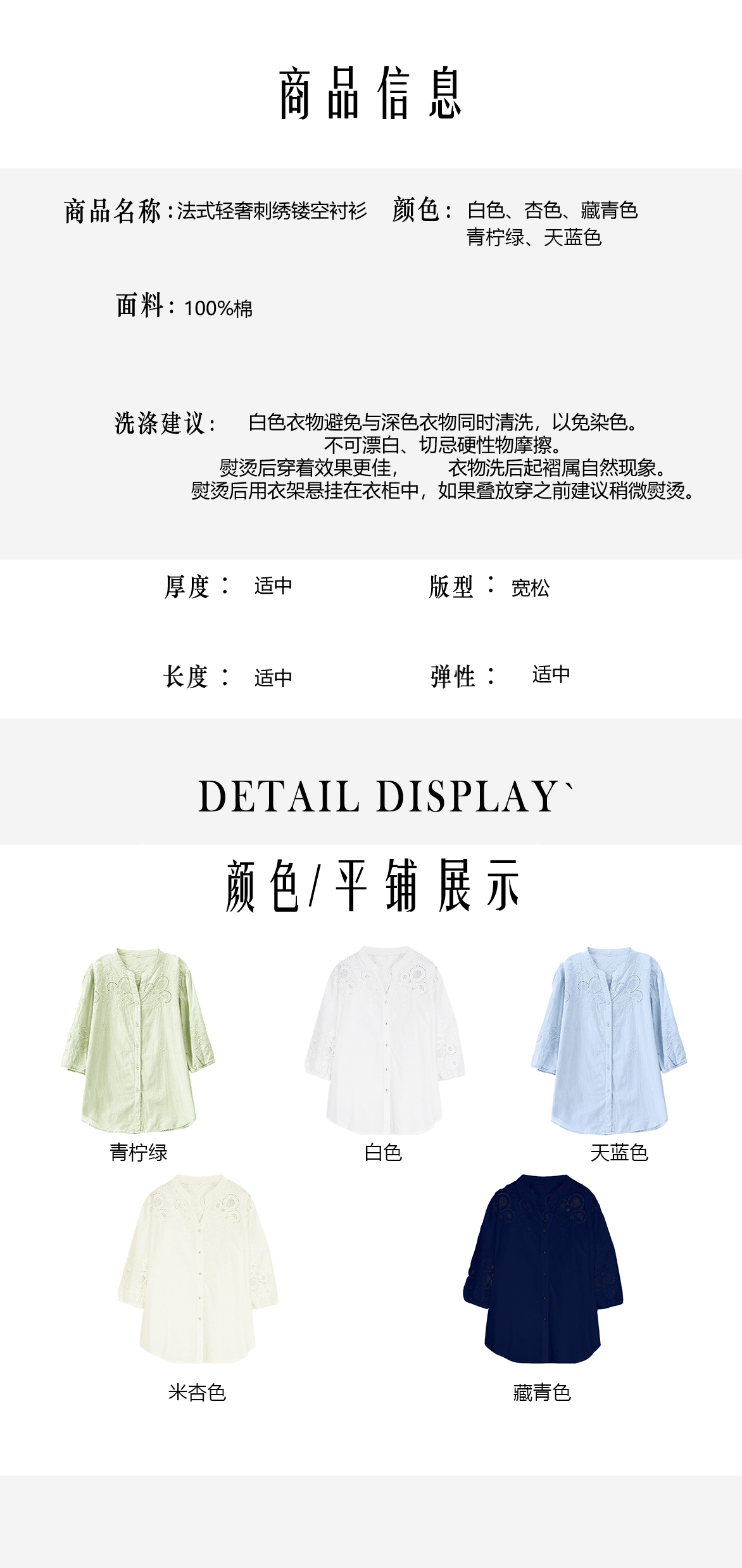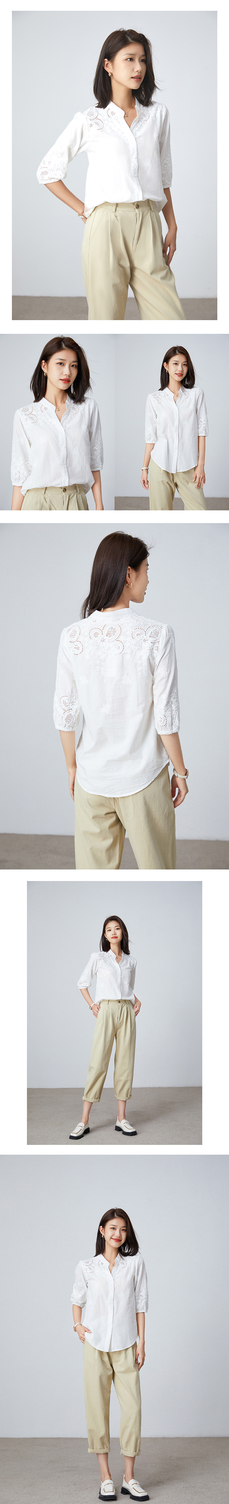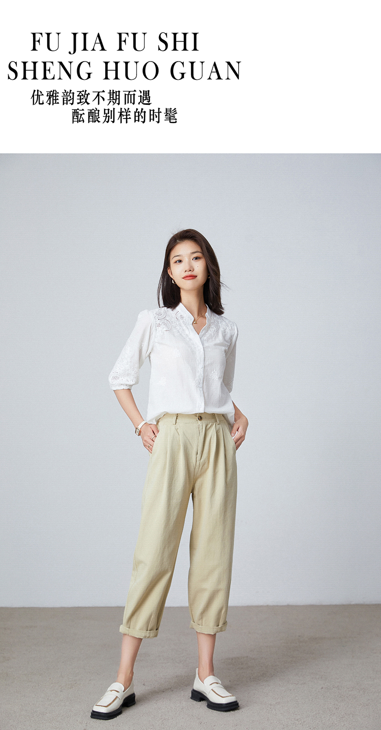 馥迦法式轻奢刺绣镂空衬衫/休闲裤