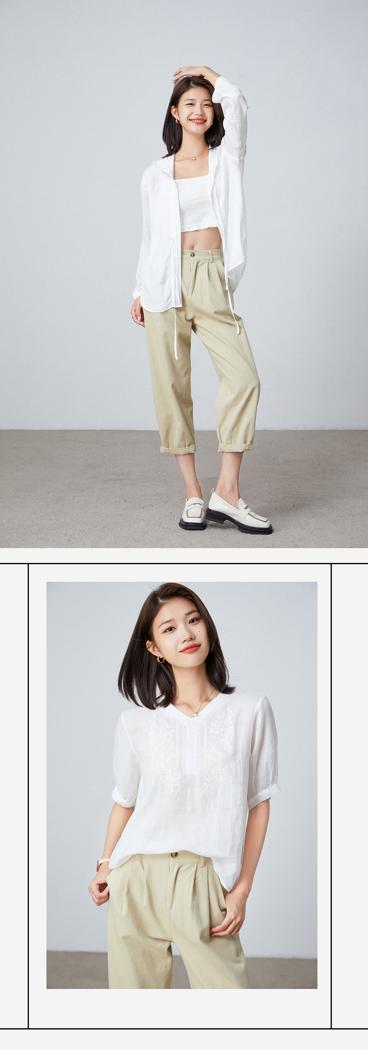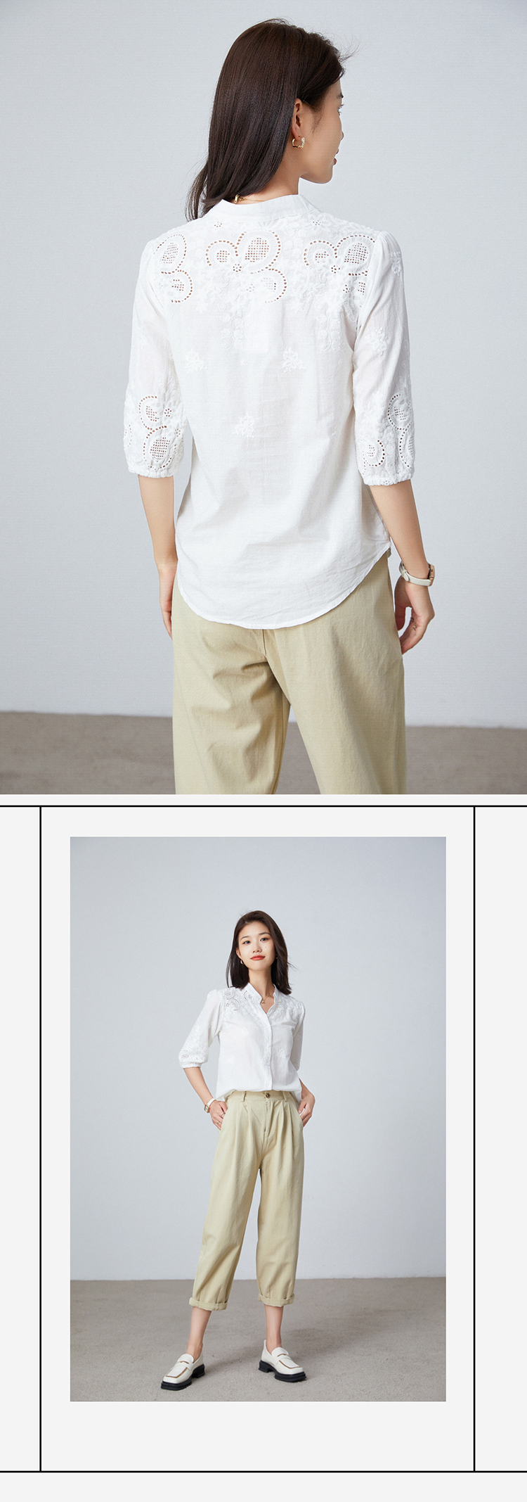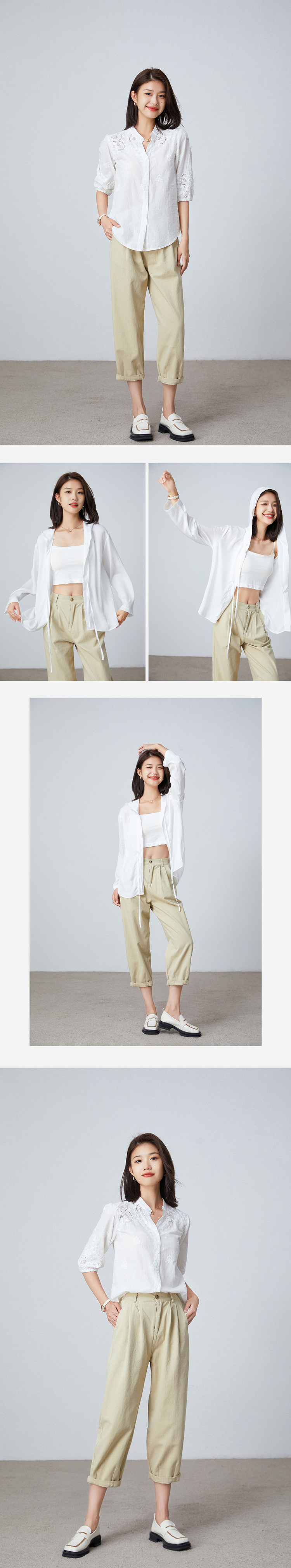 馥迦法式轻奢刺绣镂空衬衫/休闲裤