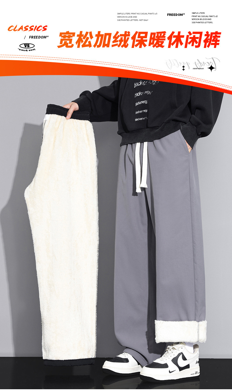 【GZ】无忧购加厚羊羔绒裤子男士冬季加绒卫裤宽松直筒棉裤29181(截单后3-5天发货)