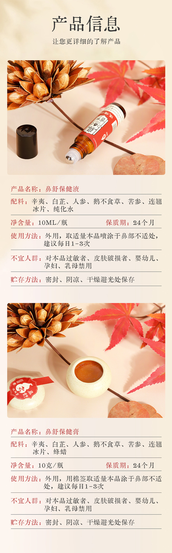 鼻舒保健膏/液 辛夷/白芷/人参/鹅不食草/苦参/连翘/冰片 天然植物改善舒缓鼻腔不适 两种款式任你选择