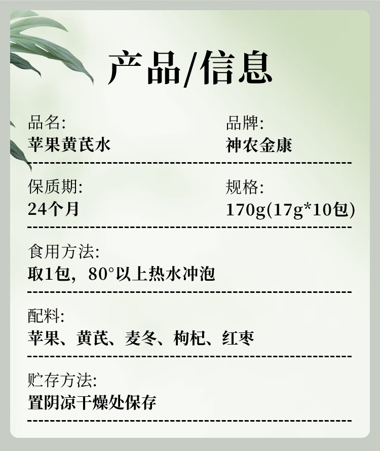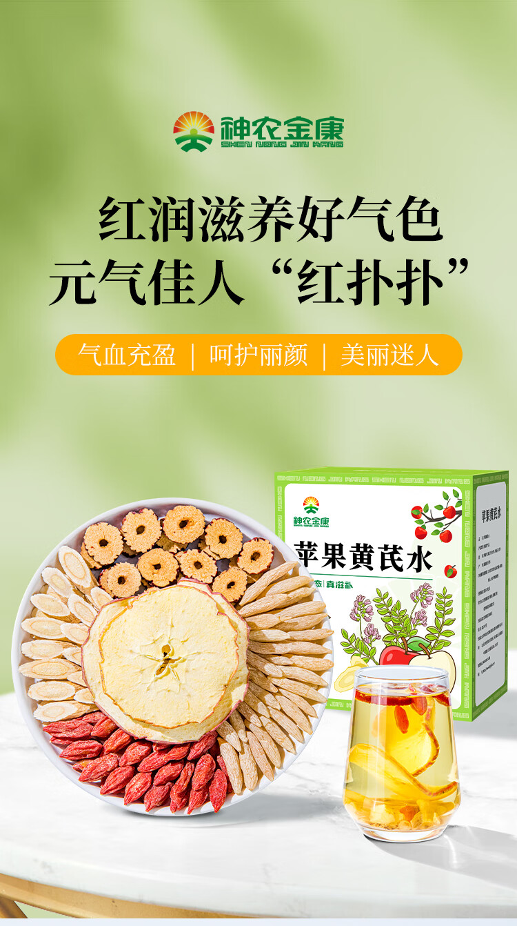 神农金康 黄芪麦冬苹果水170g(10包) 红枣枸杞子五宝 独立袋泡元气花茶 原生态真滋补 喝护家人健康