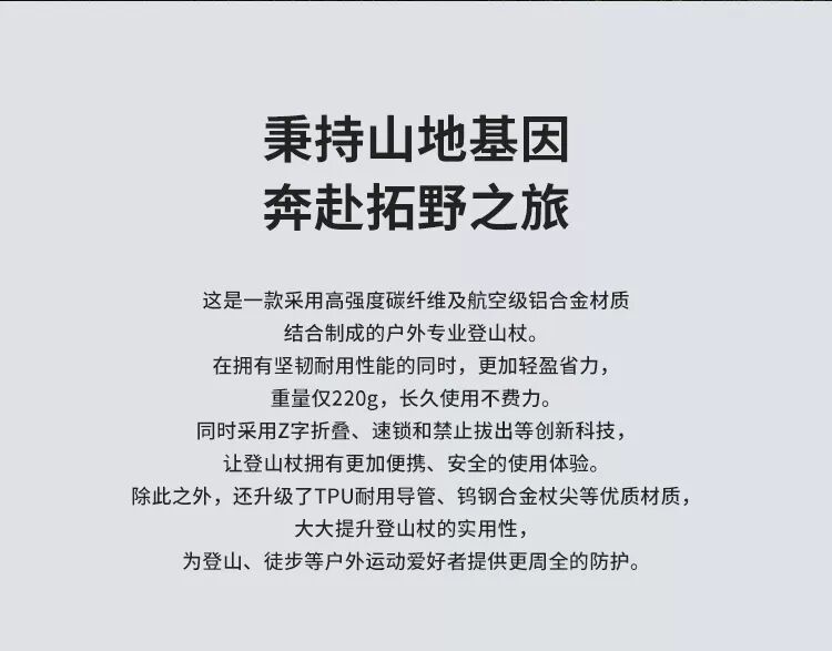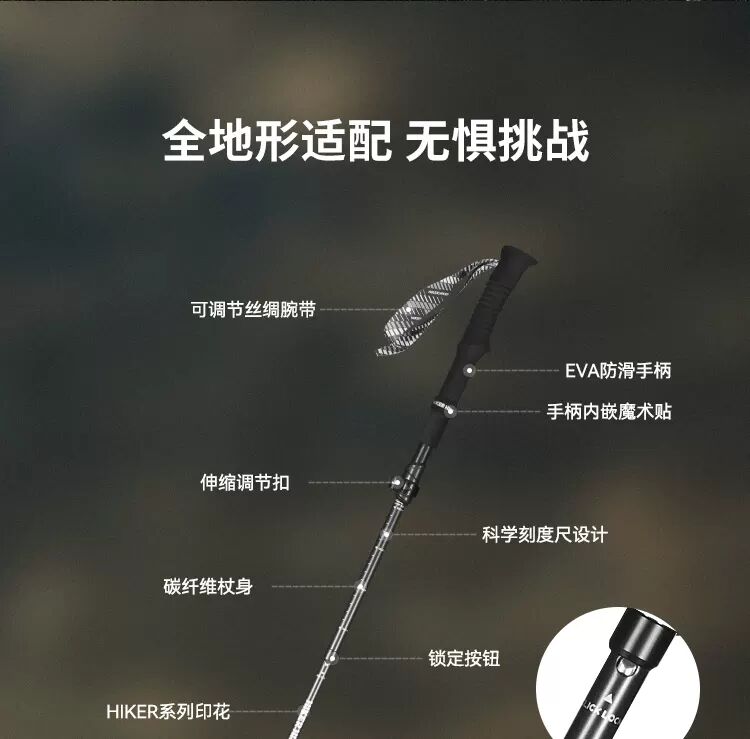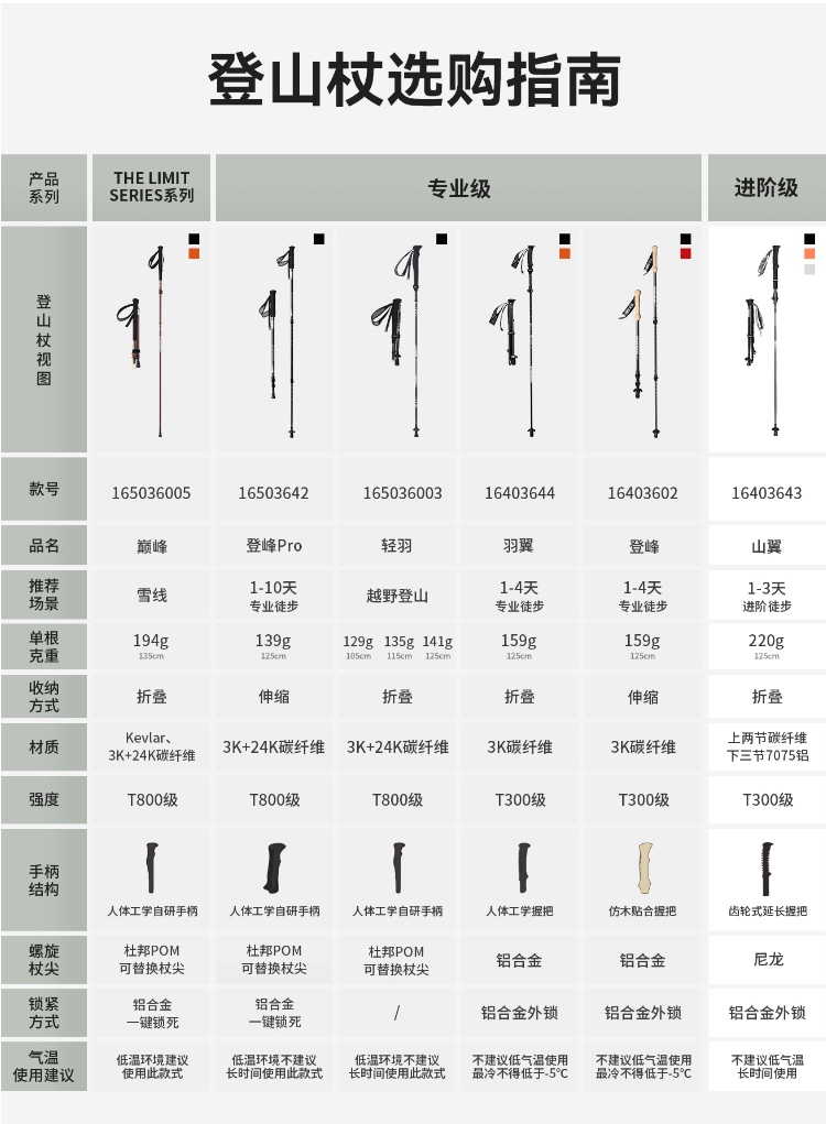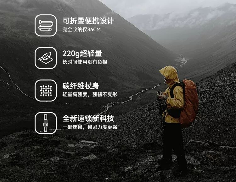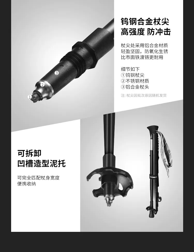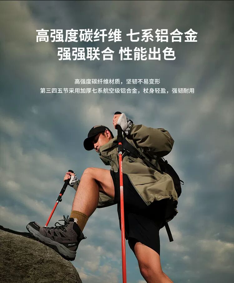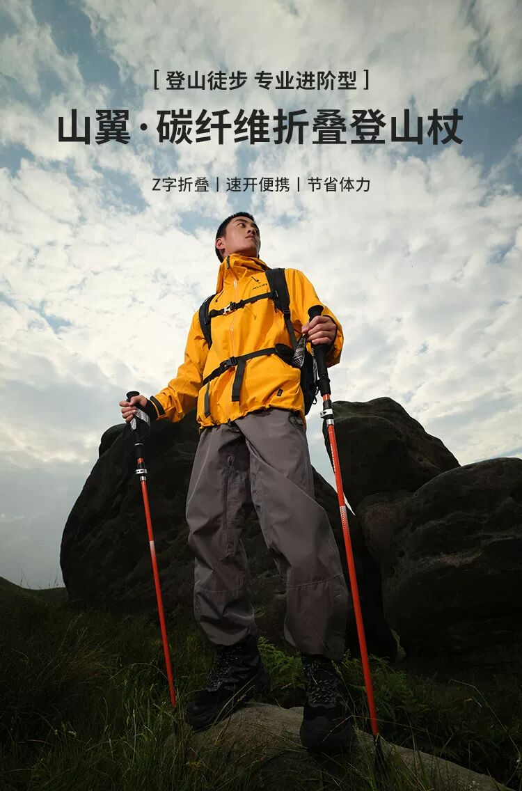 【山翼】伯希和户外登山杖碳纤维徒步折叠手杖专业爬山防滑装备