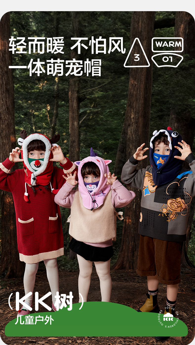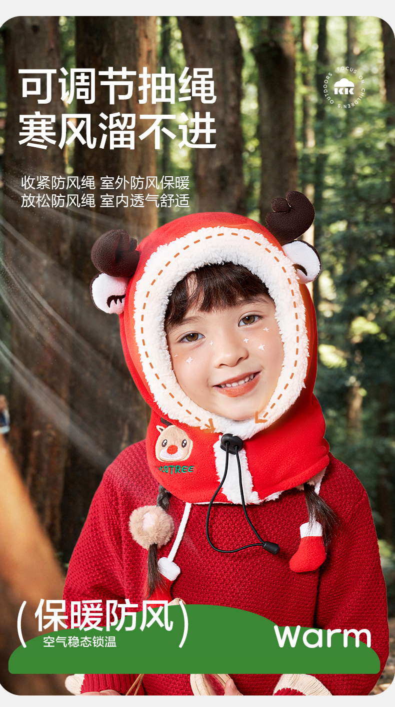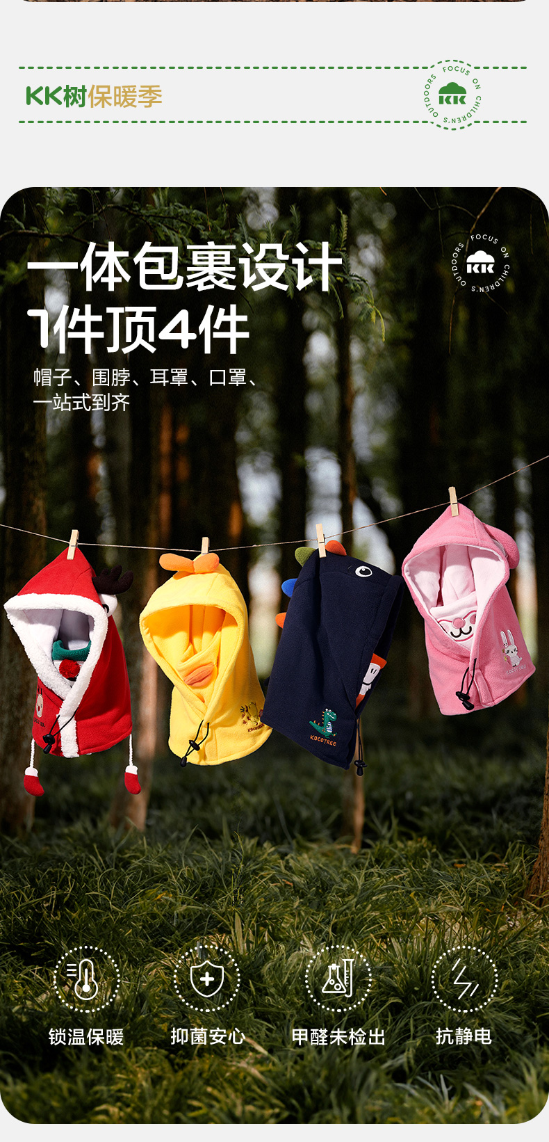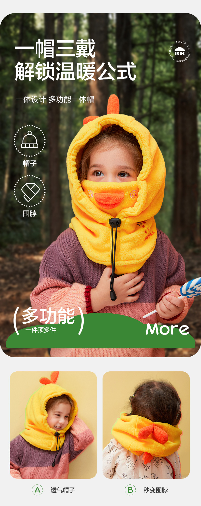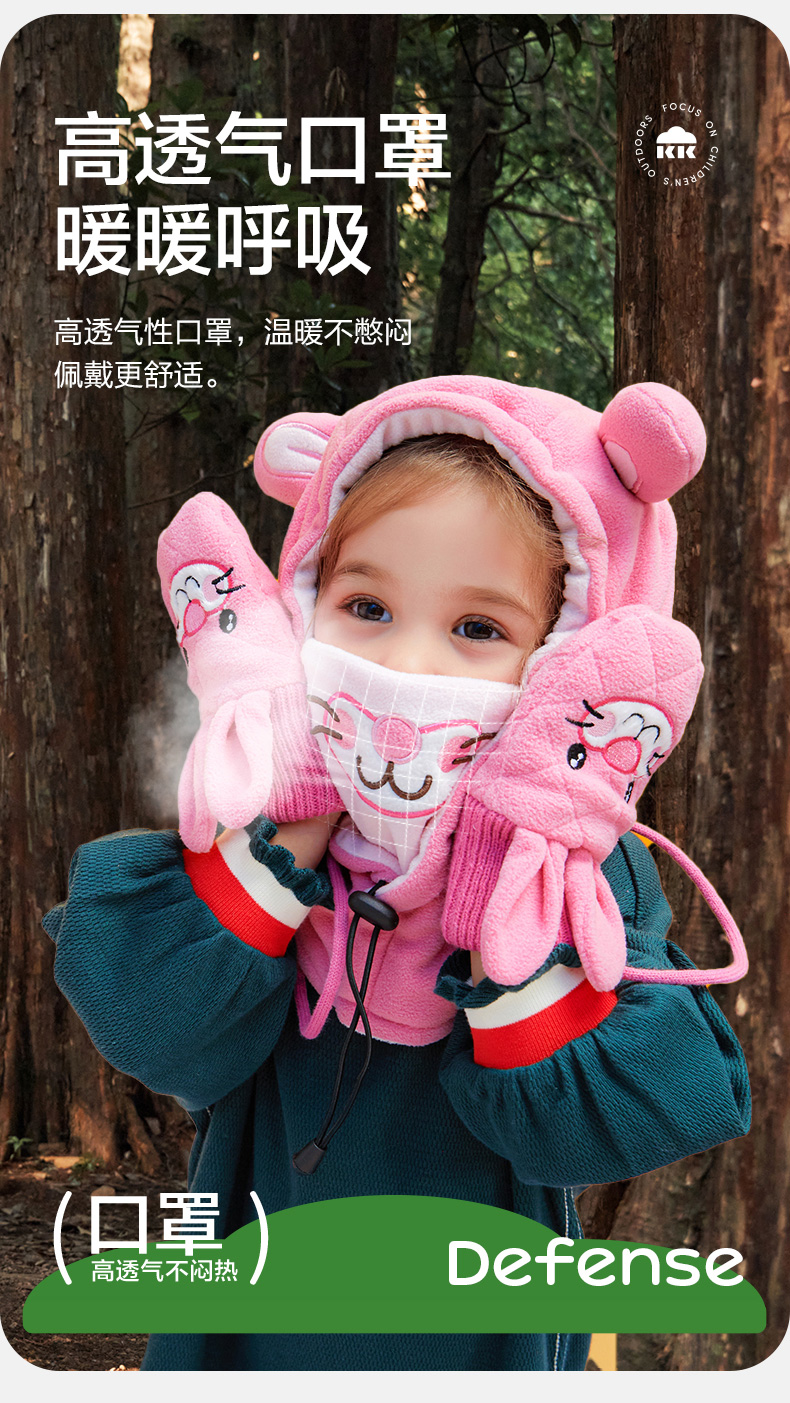 KK树儿童帽子秋冬季男童女童围巾围脖护耳一体帽婴儿宝宝防风保暖