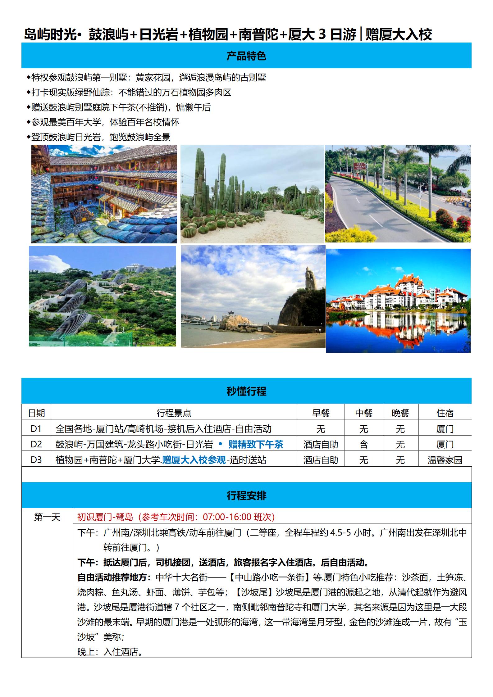 【五一】<厦门3天动车团(12人小团)>鼓浪屿+日光岩+植物园+南普陀+厦大3日游│赠厦大入校