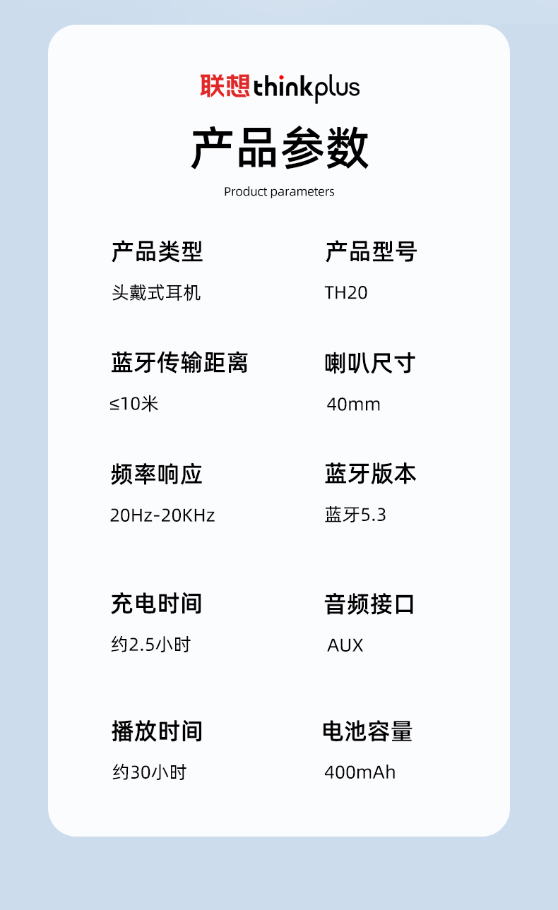 联想thinkplus 头戴式蓝牙耳机TH20 蓝色