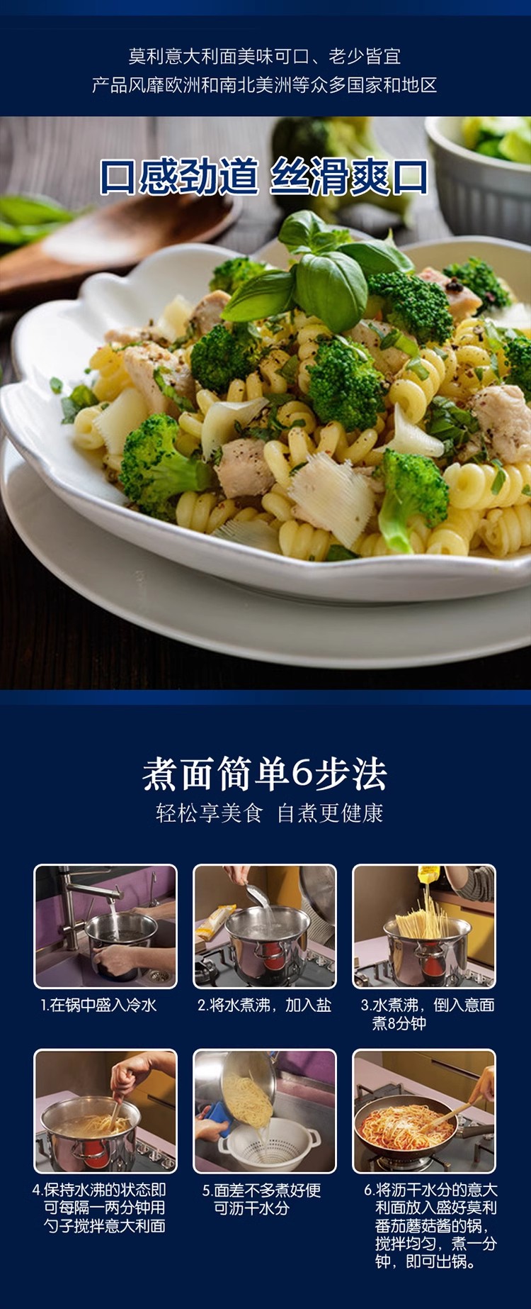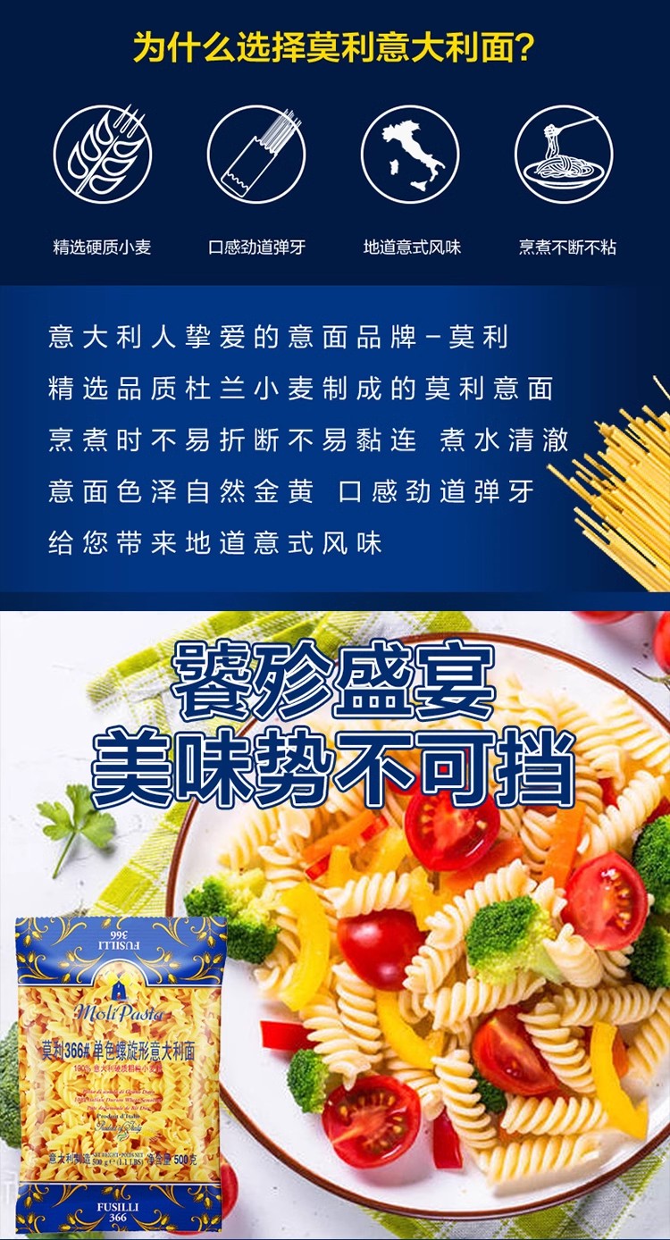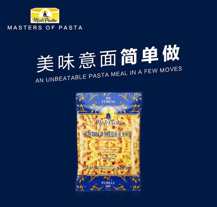莫利366#单色螺旋形意大利面500g意大利面螺旋状通心粉休闲方便面西餐