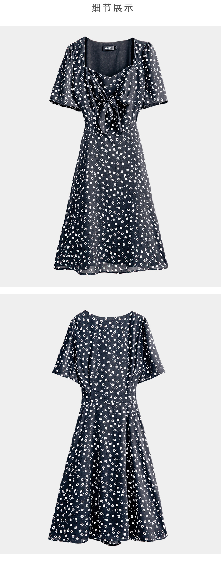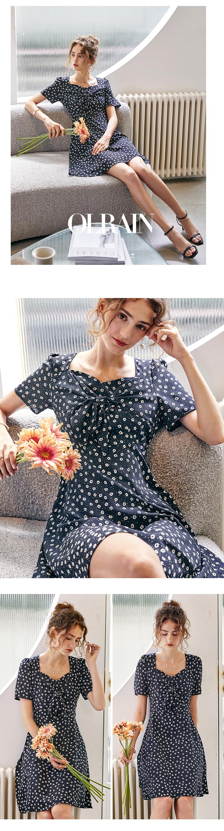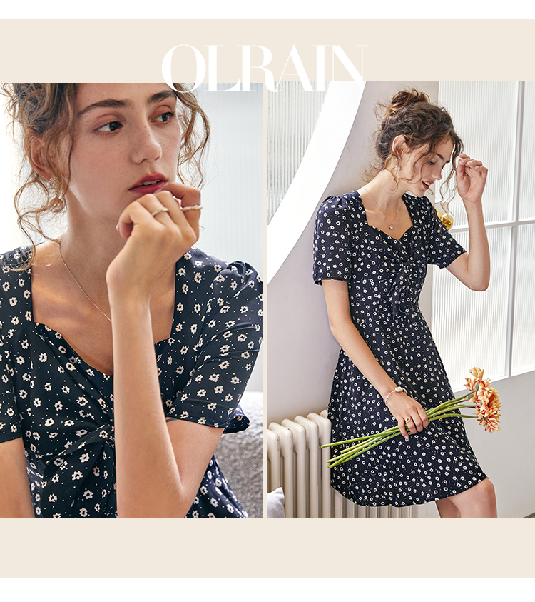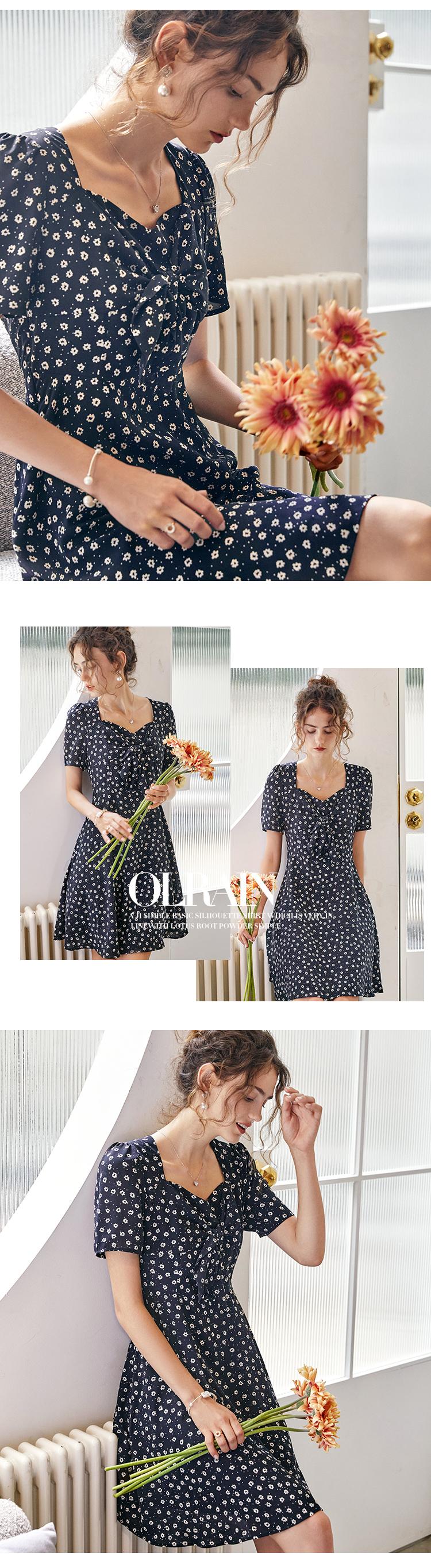 欧芮儿雪纺碎花茶歇连衣裙2021夏收腰显瘦法式复古短袖小个子短裙