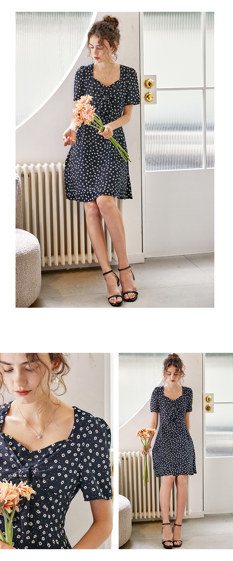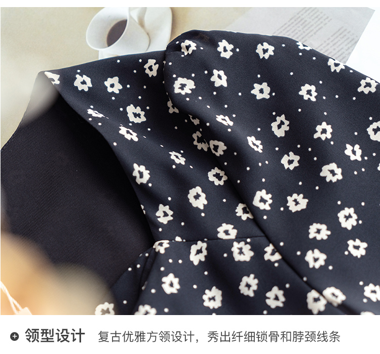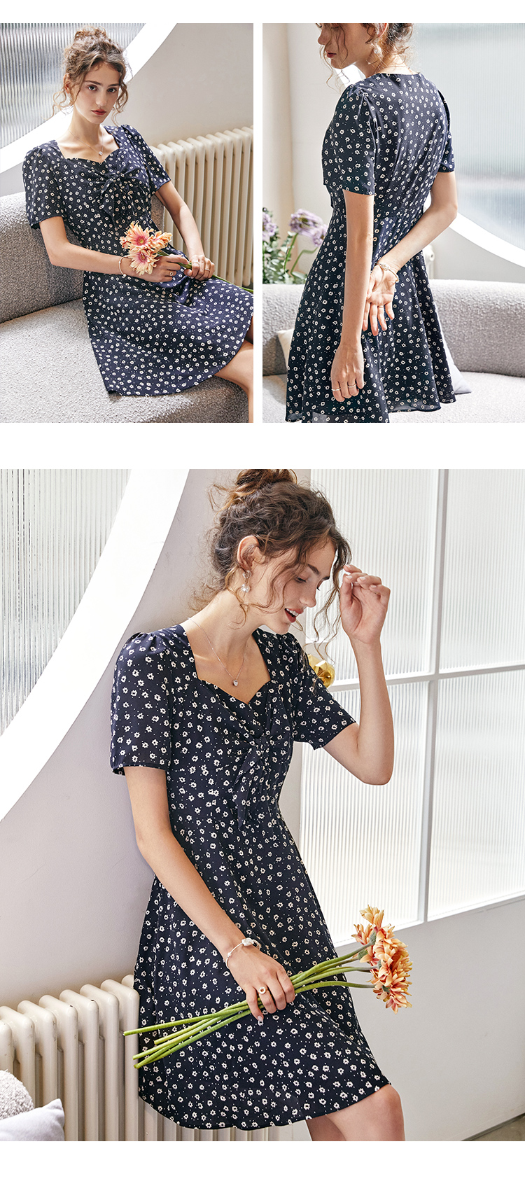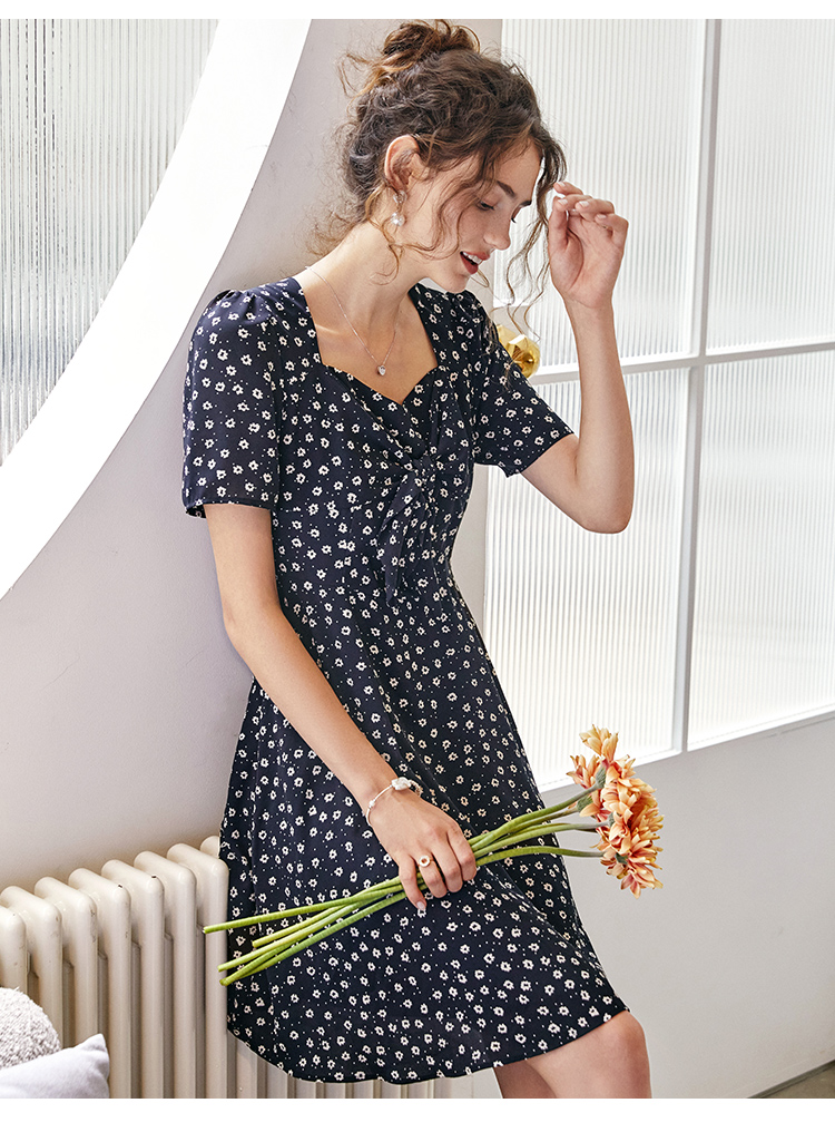 欧芮儿雪纺碎花茶歇连衣裙2021夏收腰显瘦法式复古短袖小个子短裙