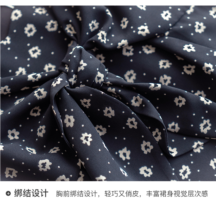 欧芮儿碎花雪纺连衣裙2021春夏新款蕾丝拼接复古提花高腰收腰裙子