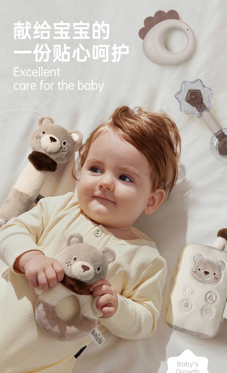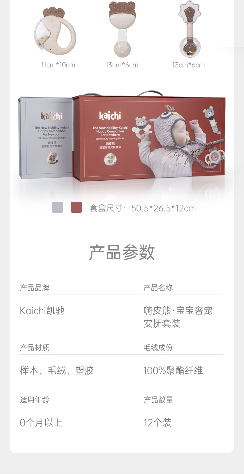 Kaichi新品嗨皮熊新生儿见面礼婴儿手摇铃安抚礼盒01岁宝宝满月礼