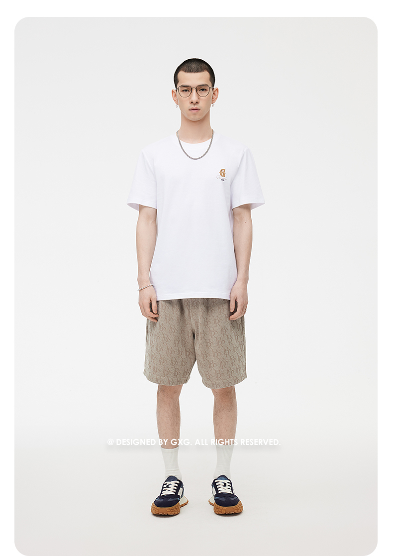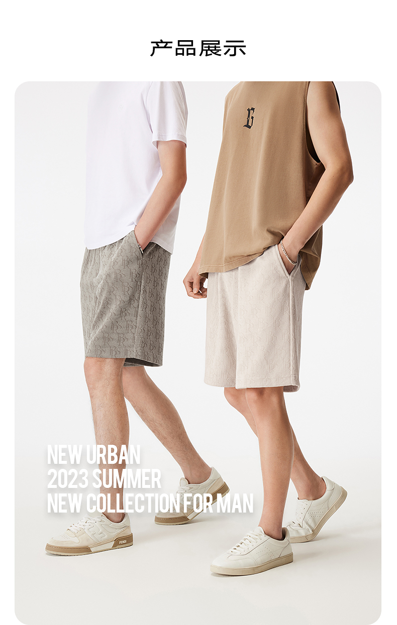 GXG男装 五分裤短裤老花满印竖条肌理时尚休闲 夏季热卖