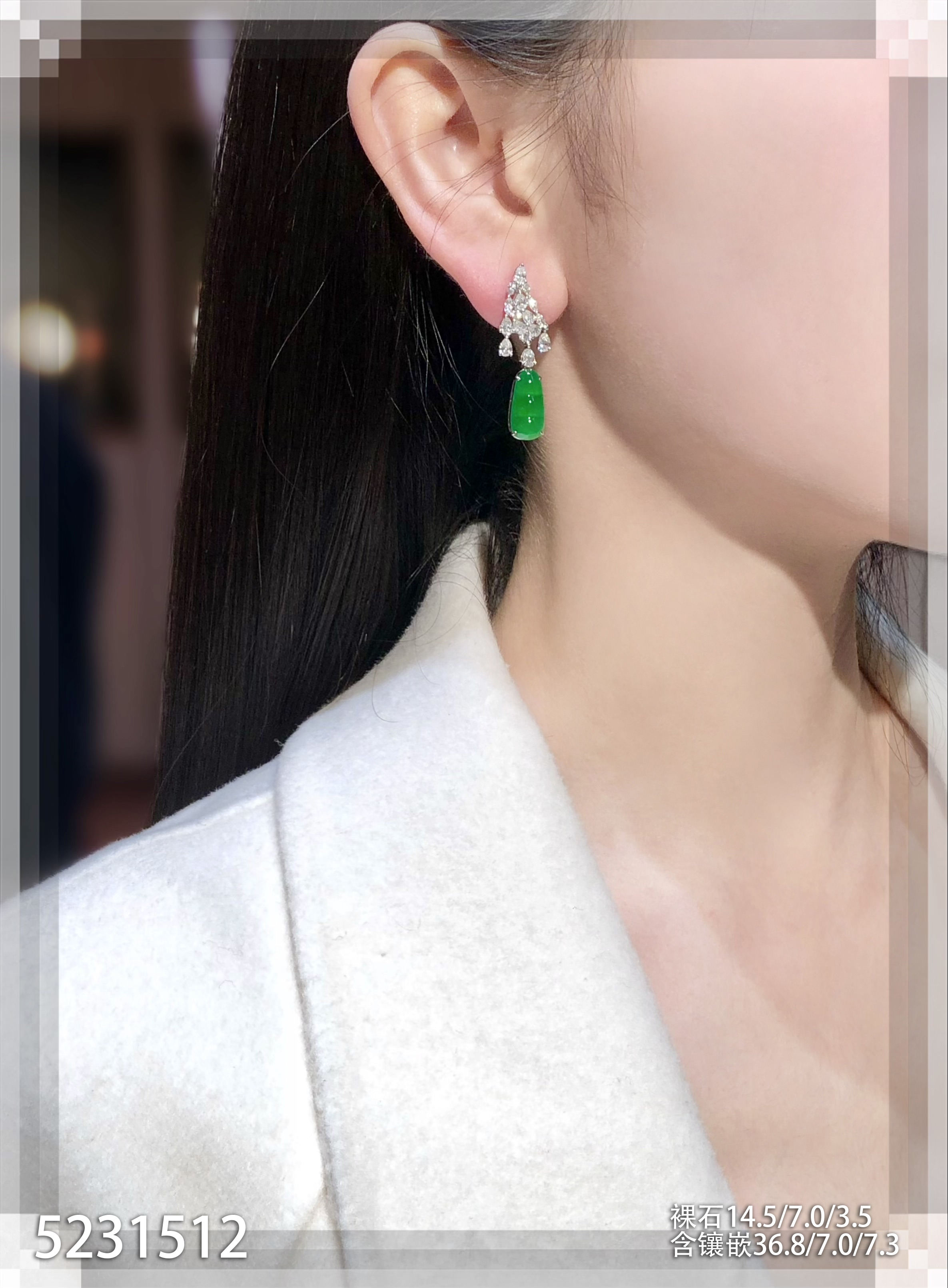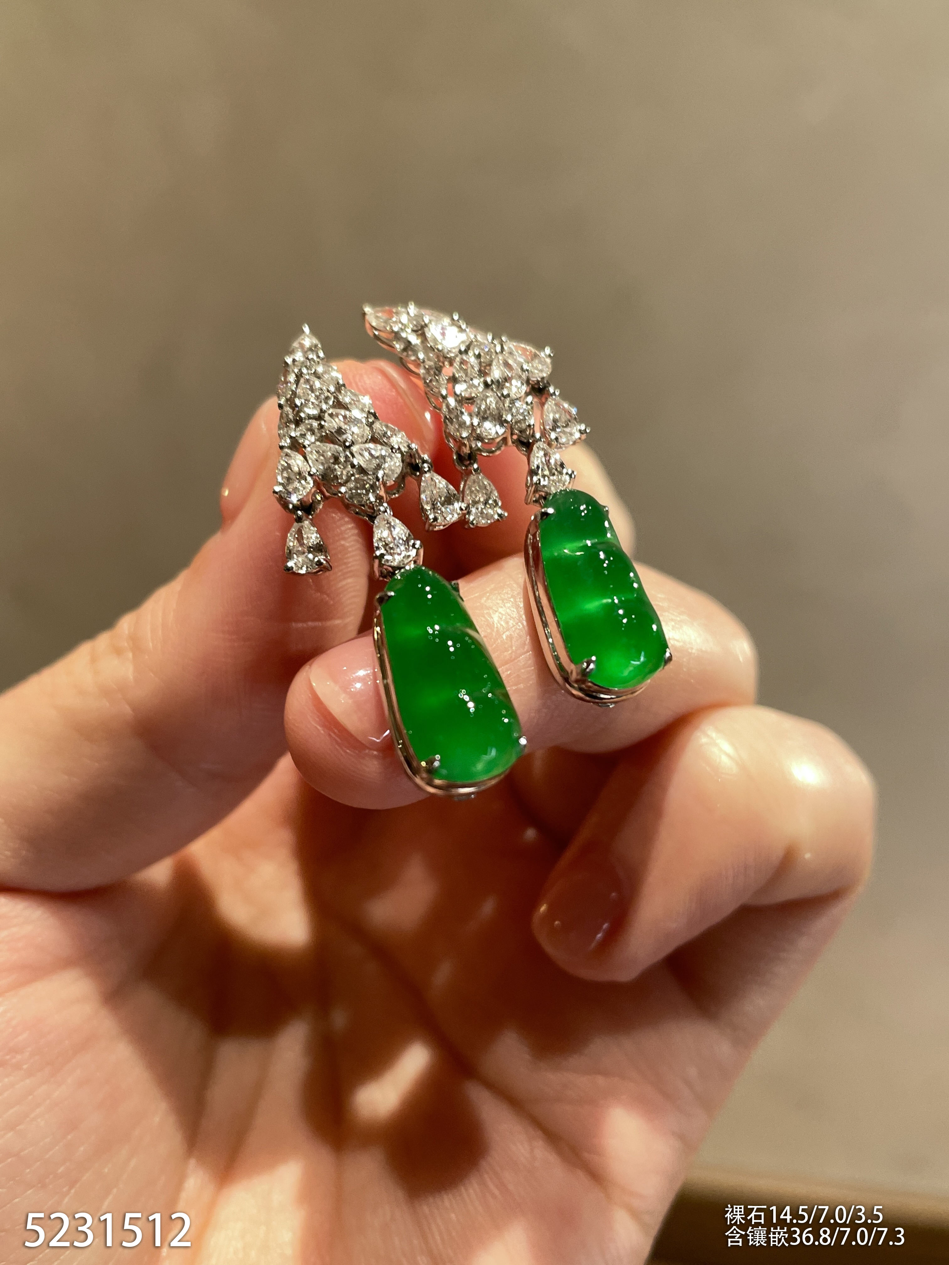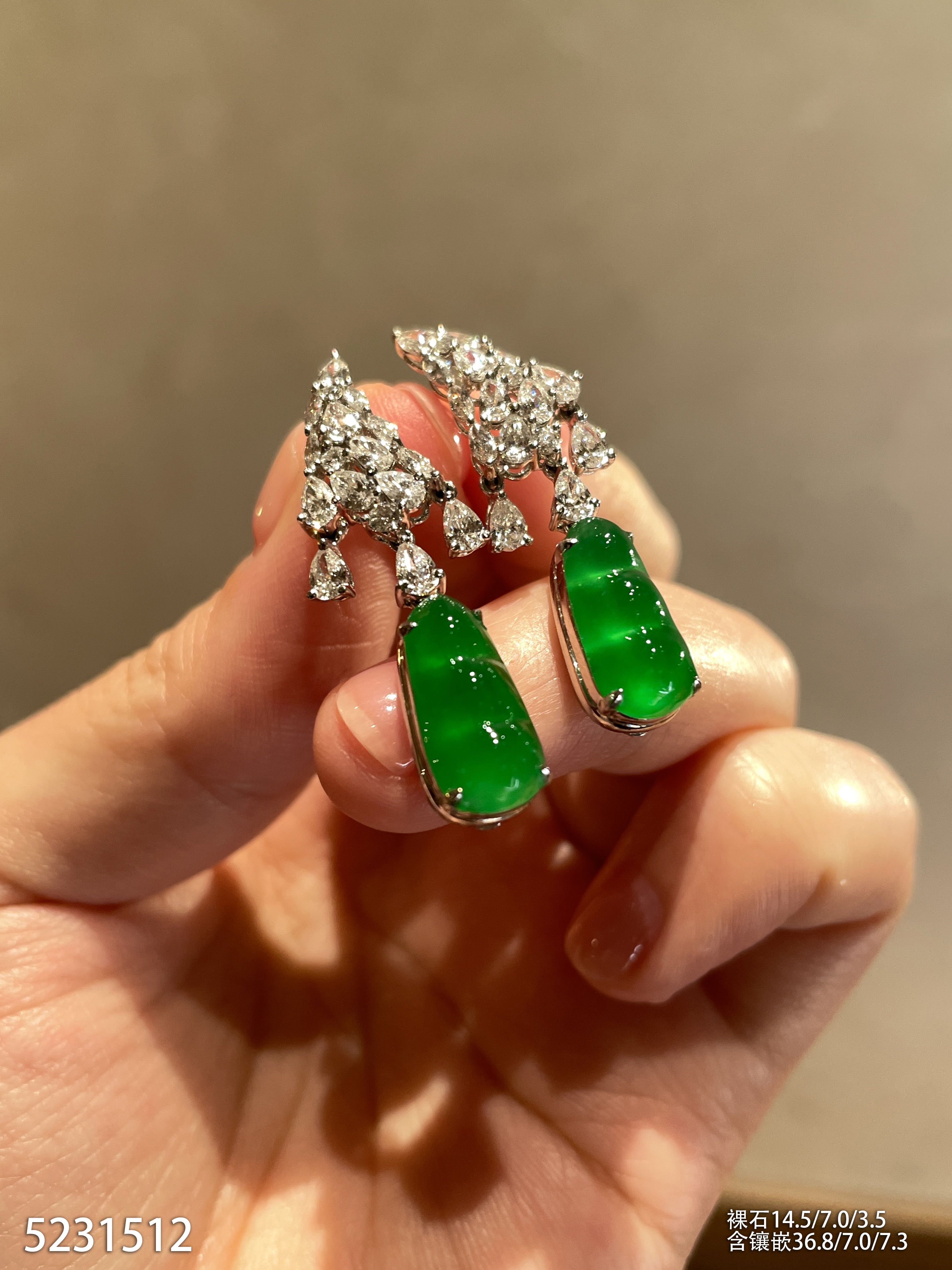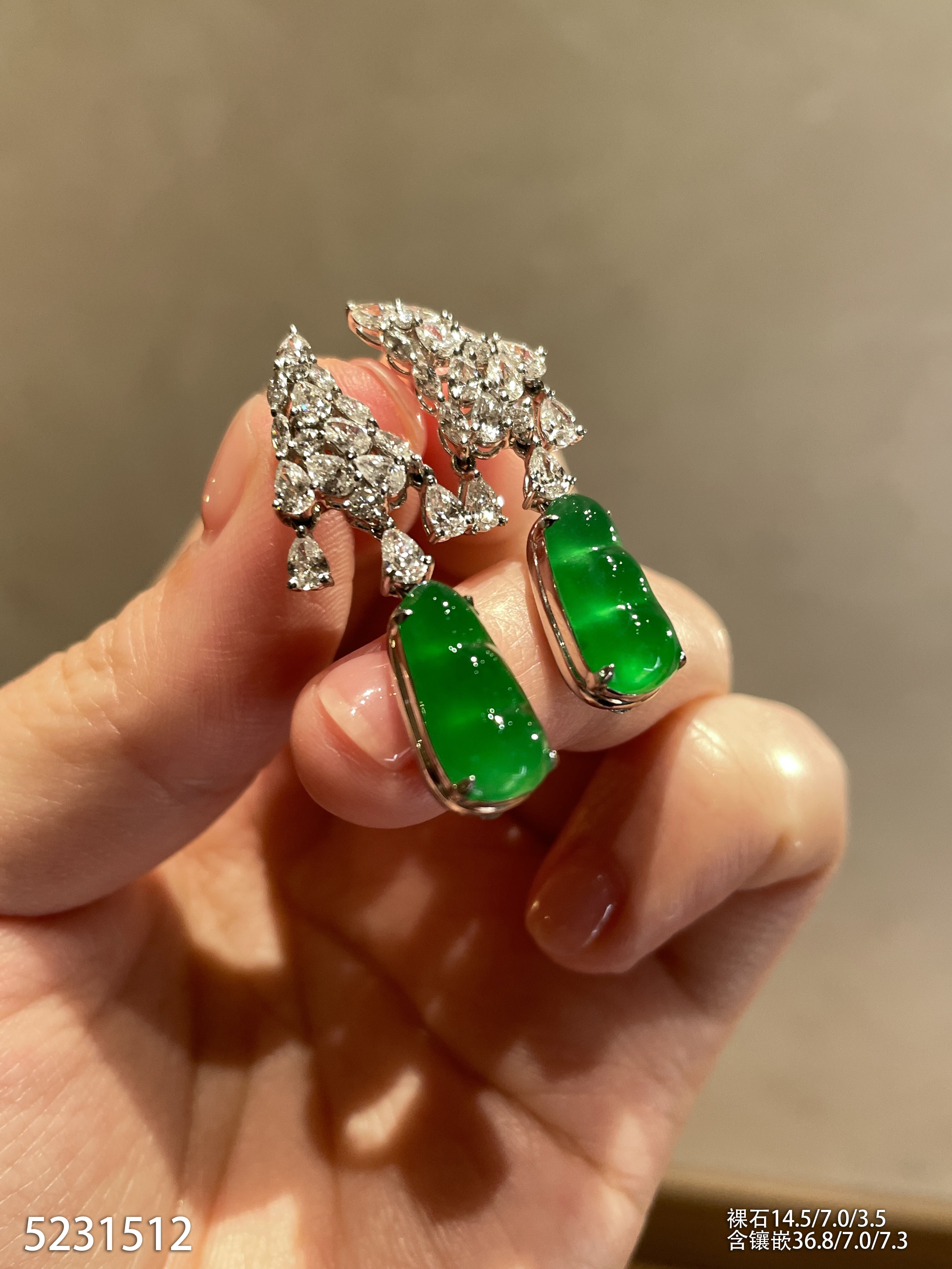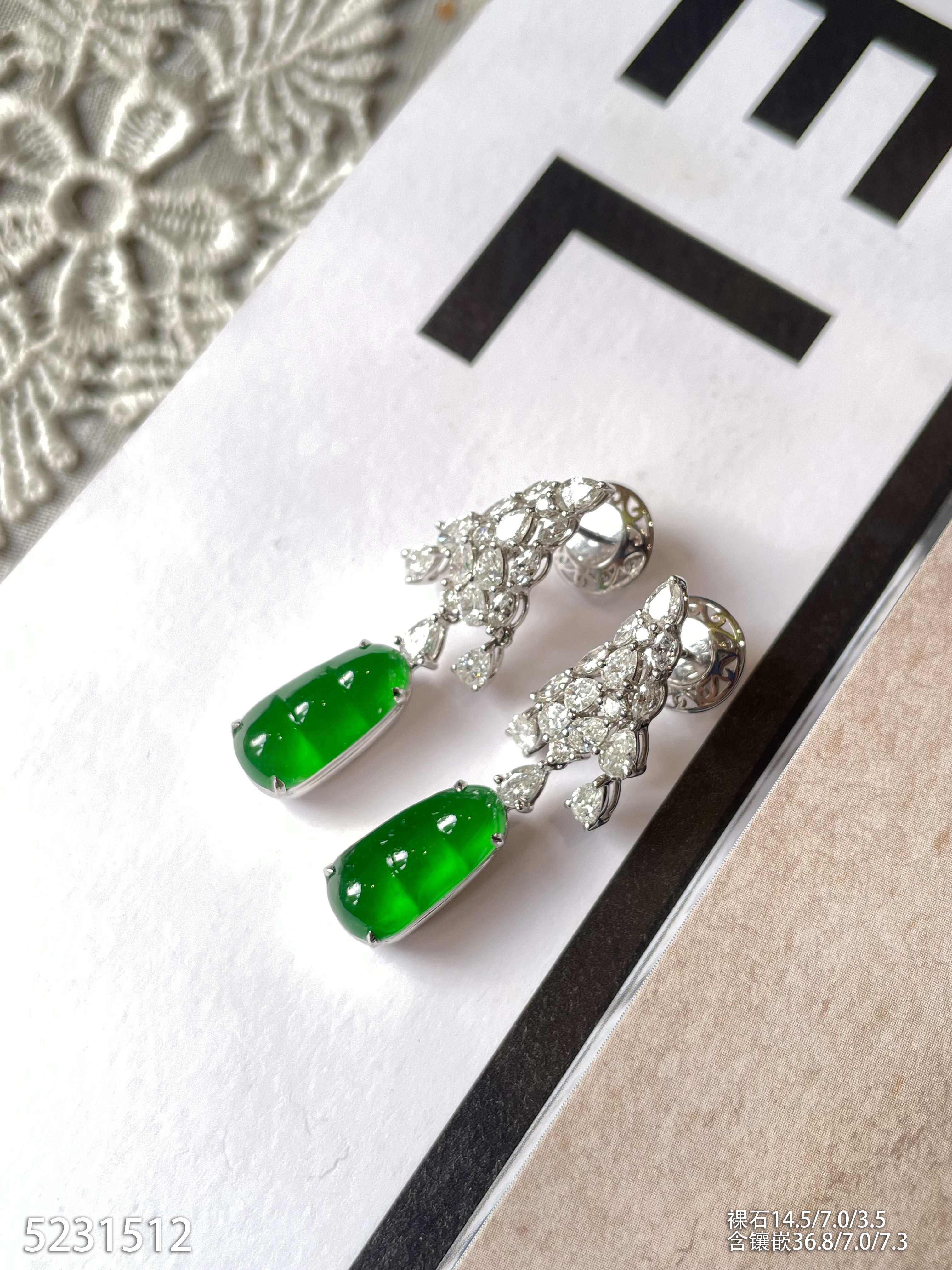 高冰种艳绿葫芦耳坠 72999【6024304】