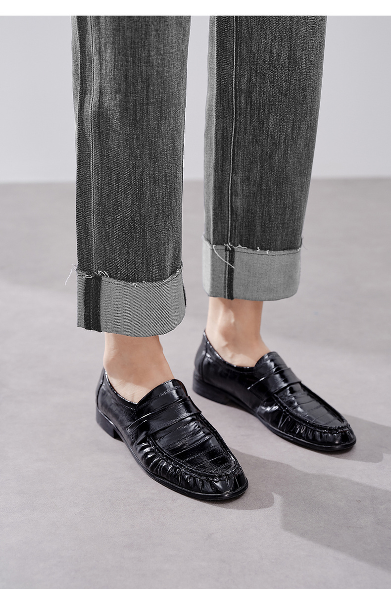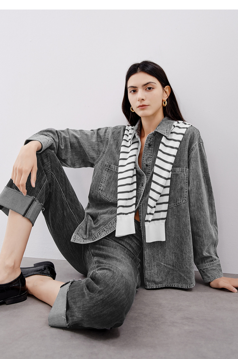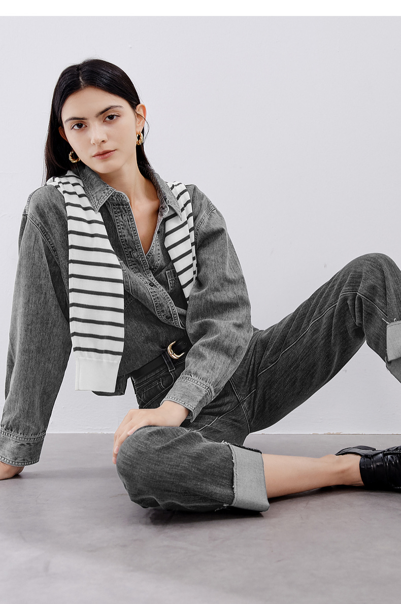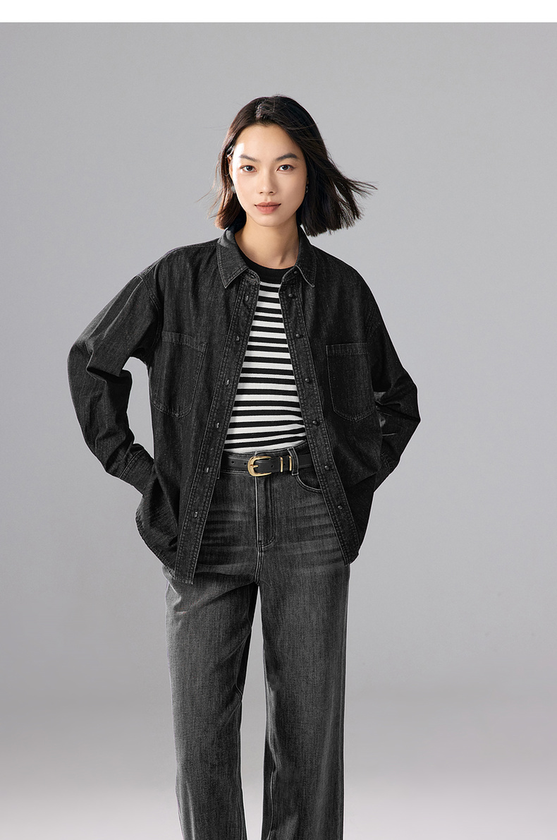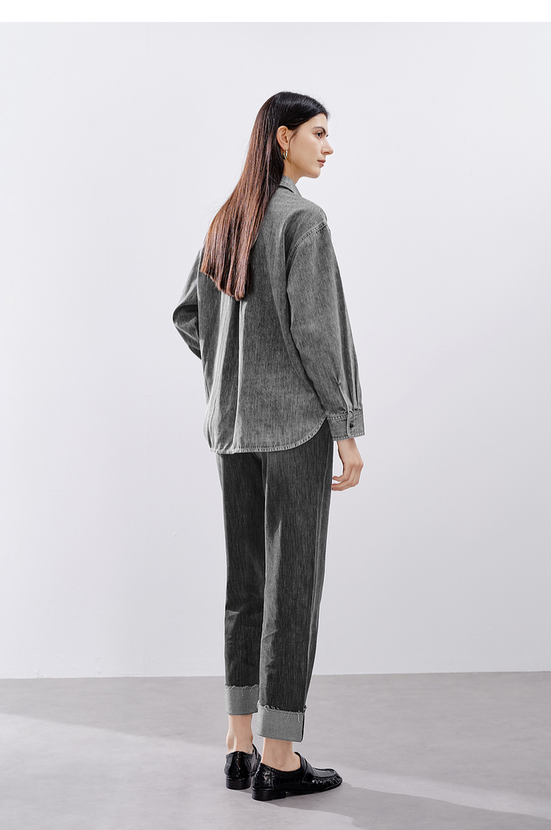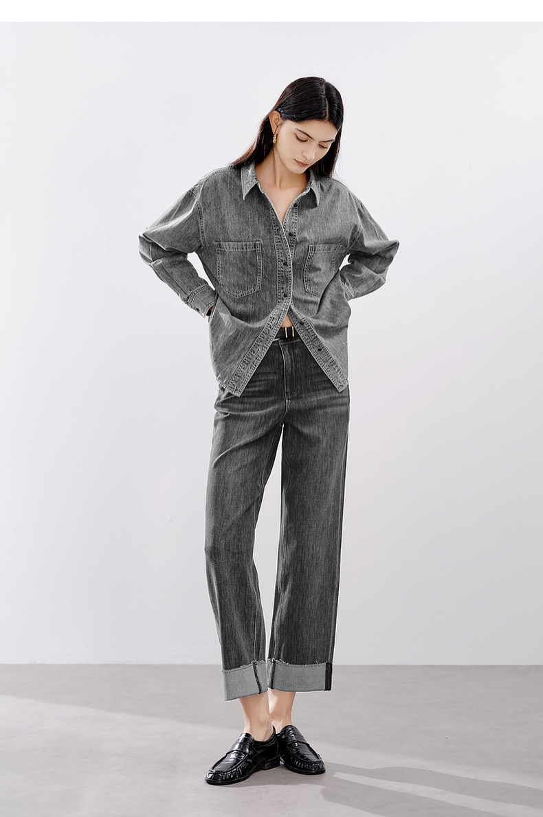 【严选】伊芙丽高弹力翻脚口显瘦百搭复古牛仔裤女2024秋装新款通勤裤子1F7951291