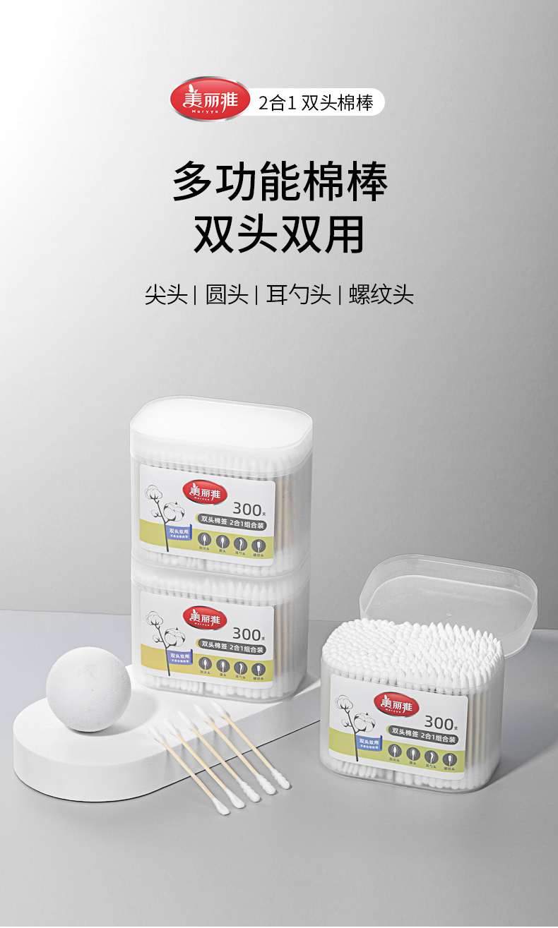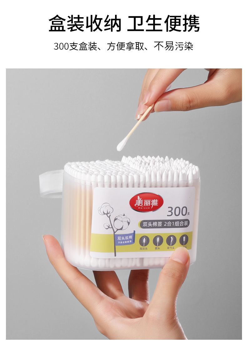 【批发】美丽雅盒装双头棉签带耳勺棉棒 300支/盒