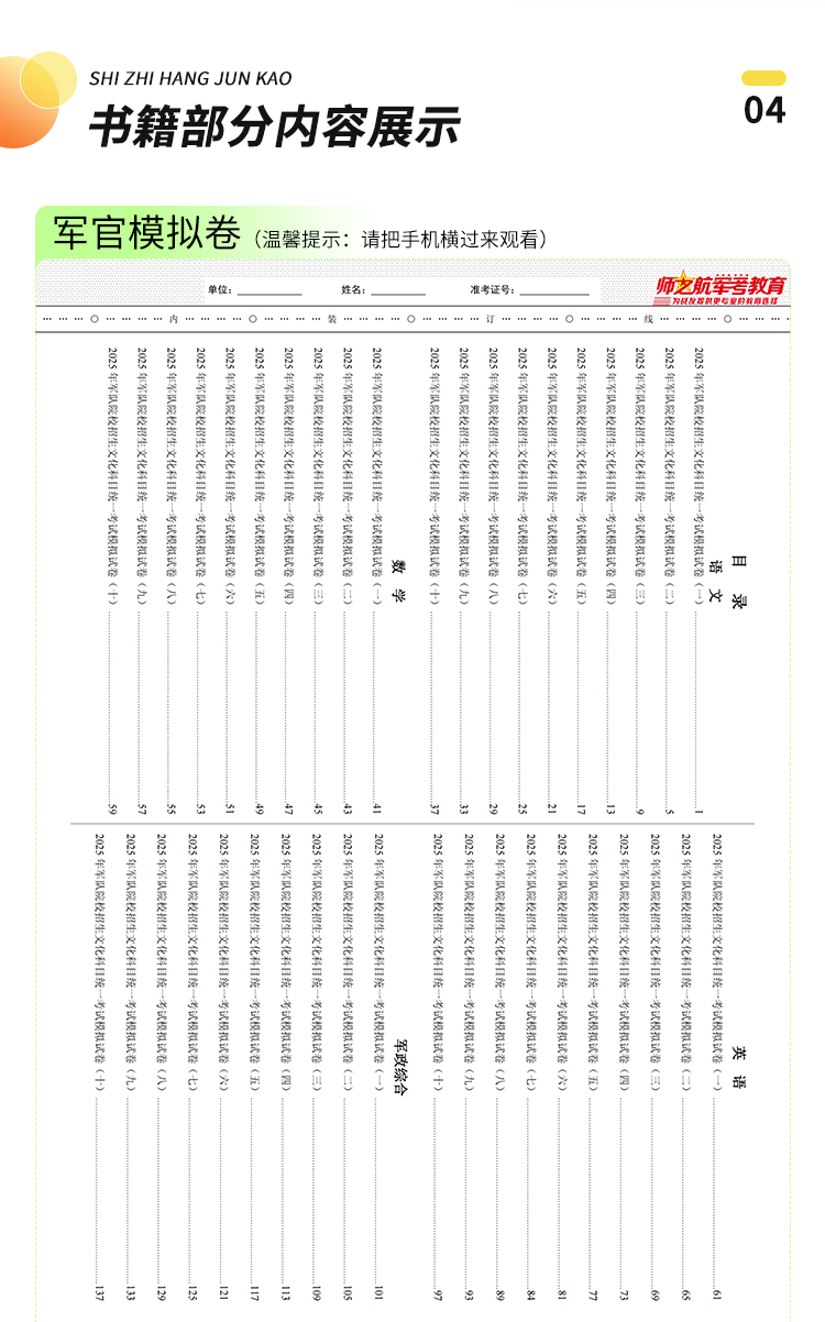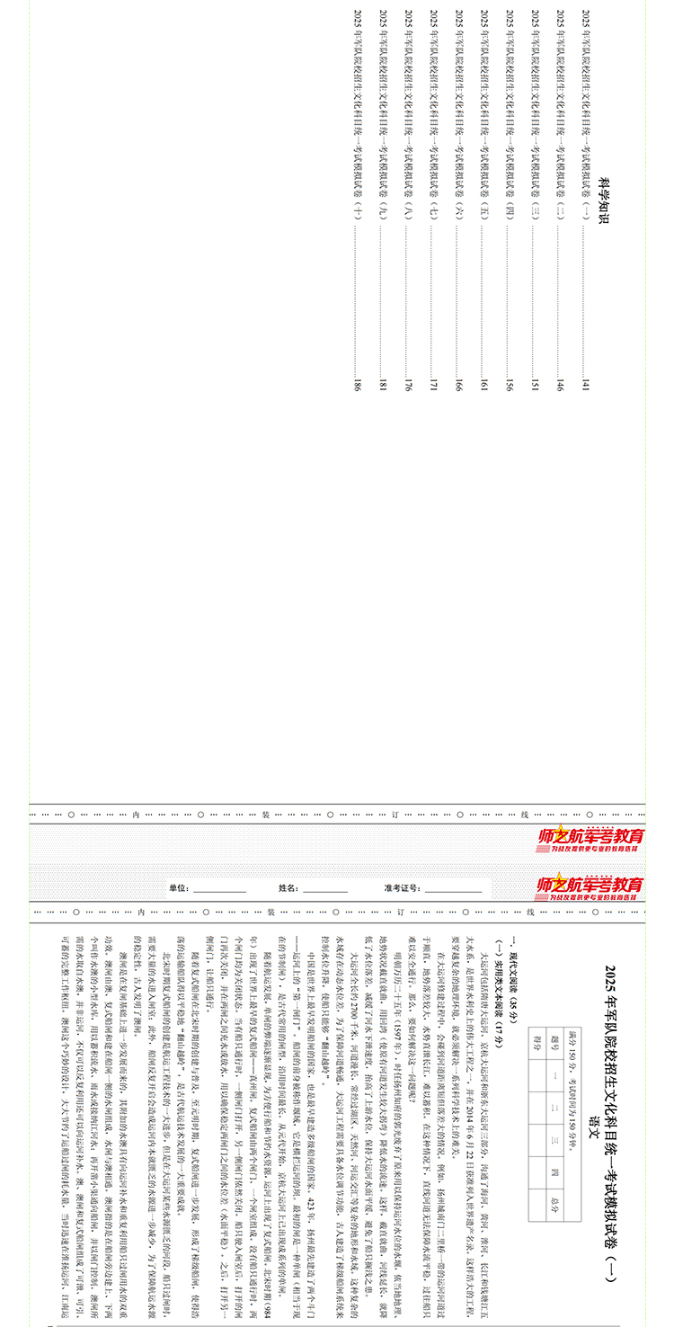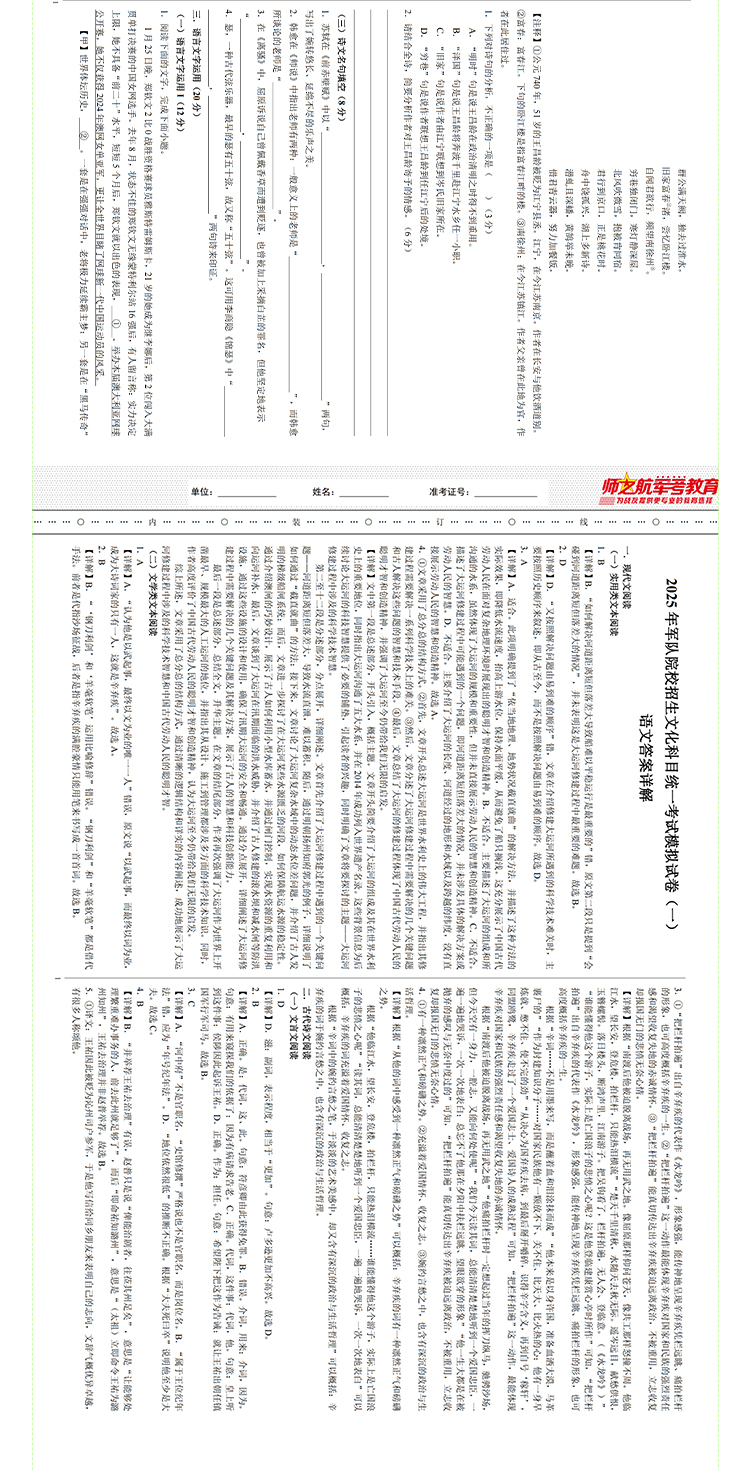 2025包邮战士考军校复习军考试卷仿真练习模拟题仿真试题