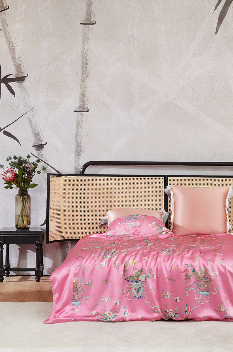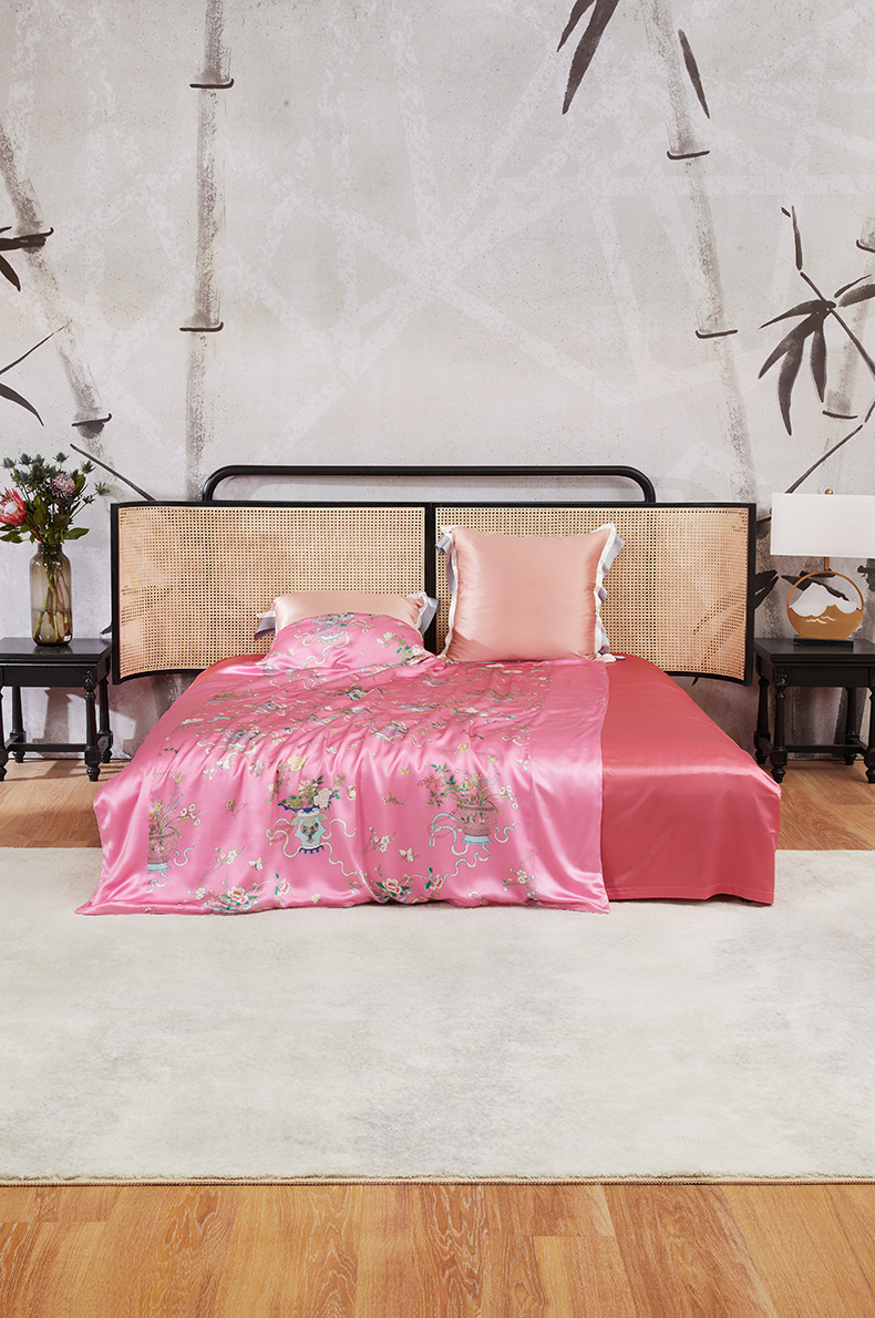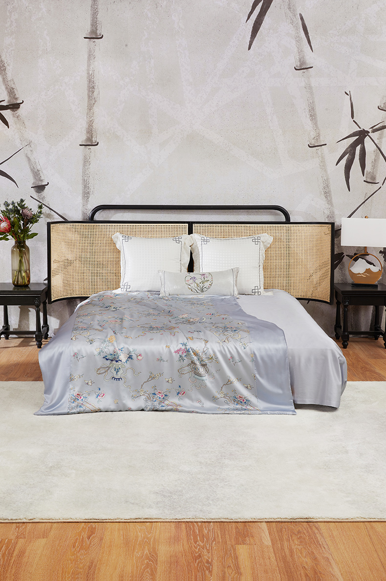 内里采用双层纱布包裹绗缝的工艺,将蚕丝均匀固定,增加了被子的美观和耐用性。