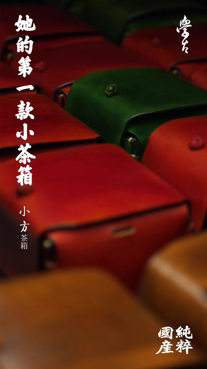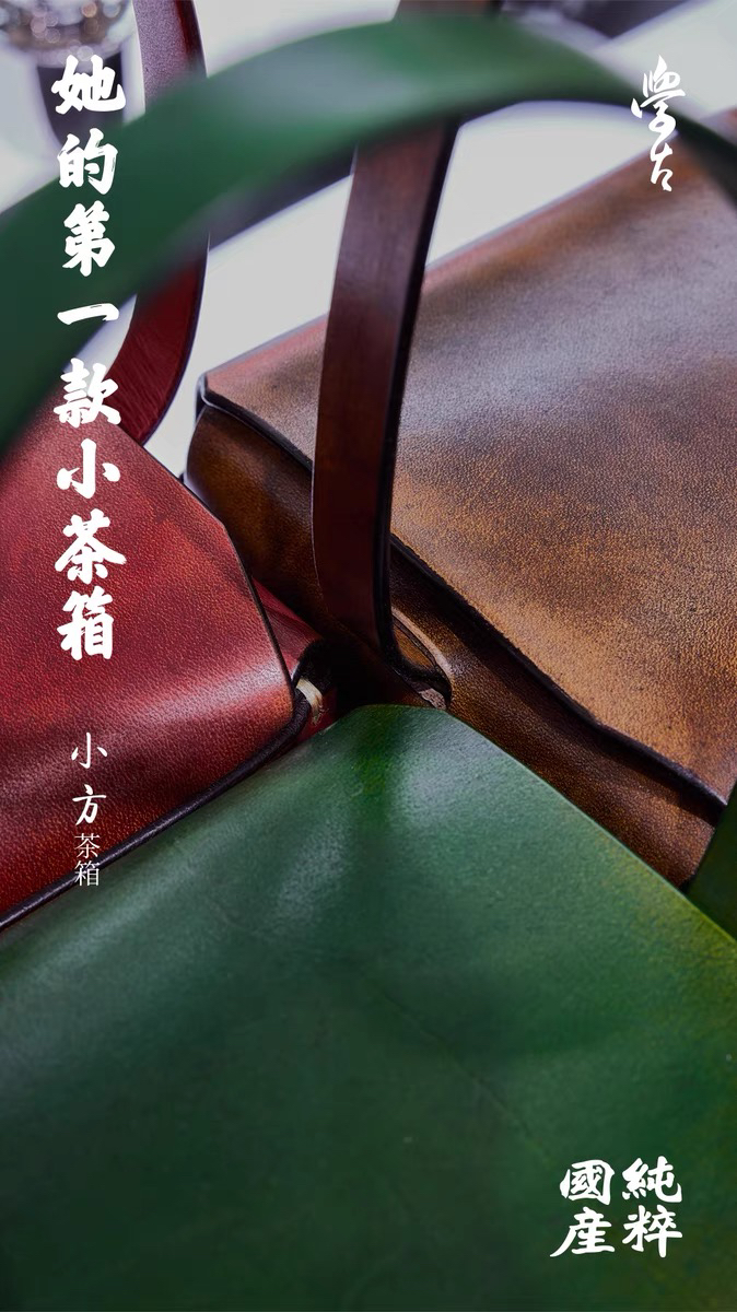 学古|小方茶箱 意大利牛皮手工擦色三色可选