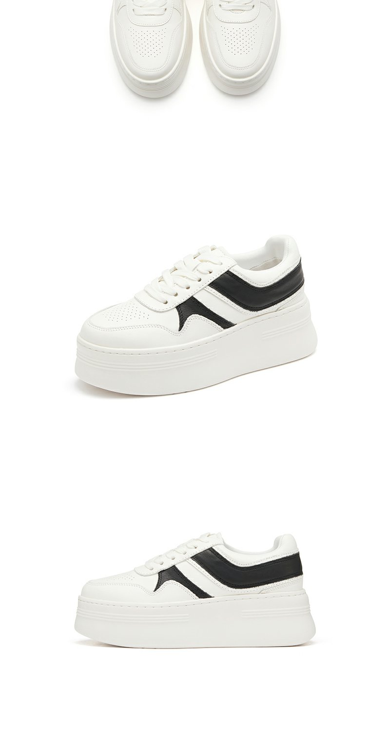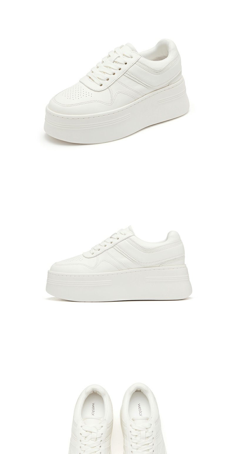 westory夏季新款厚底百搭圆头系带真皮休闲运动鞋56401