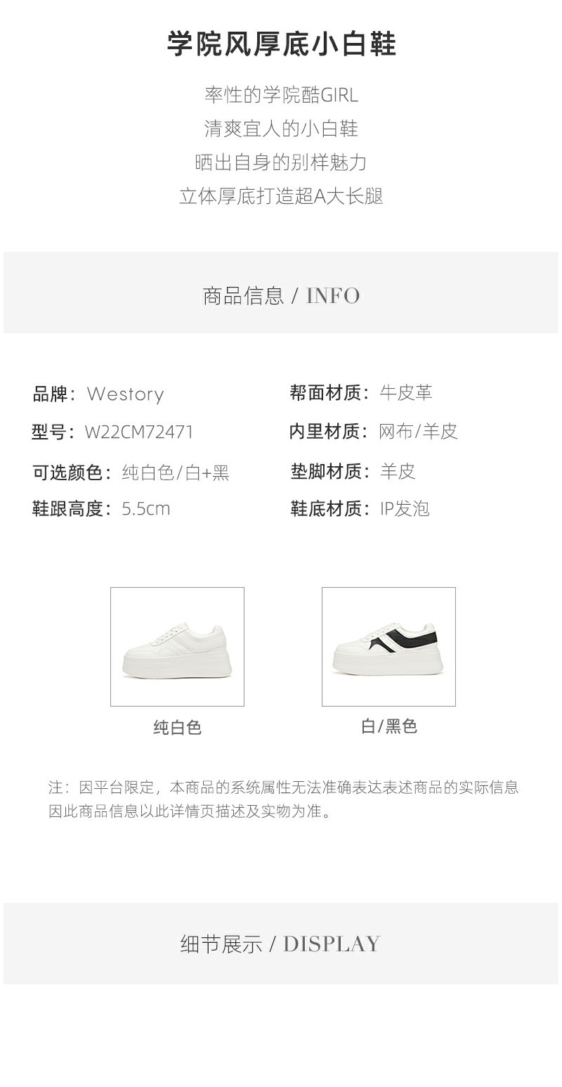 westory厚底增高复古小白鞋ins潮22年秋季新款透气休闲鞋女72471