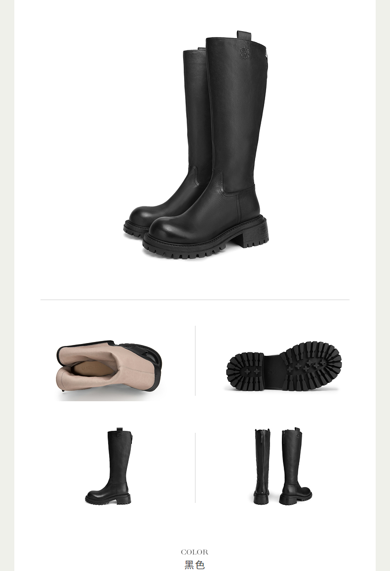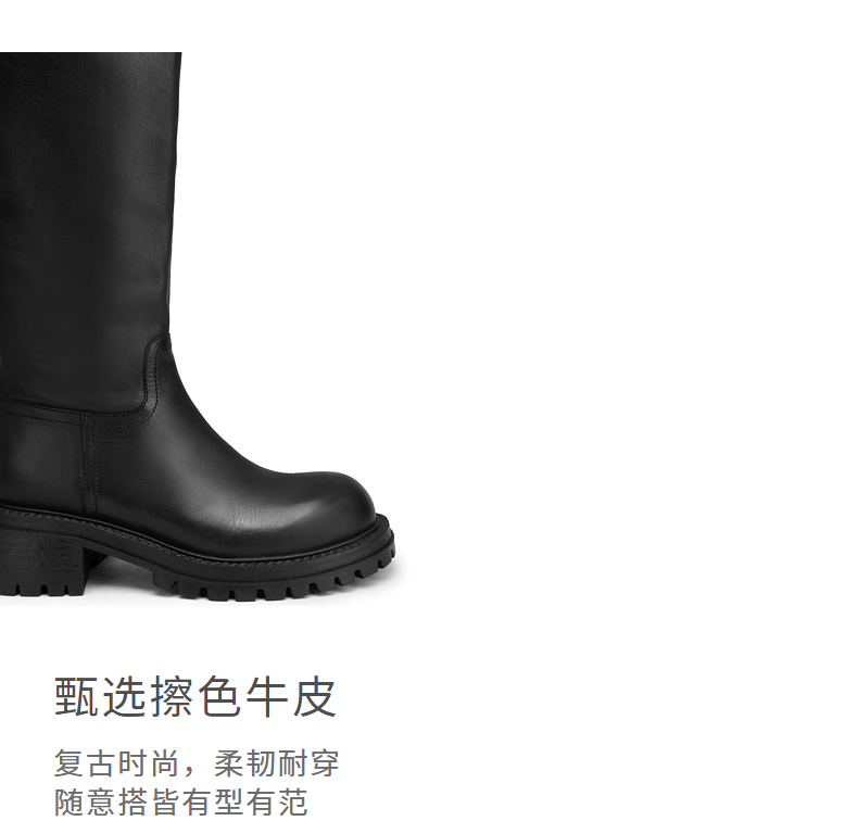 natursun英伦风骑士靴秋冬季通勤粗跟圆头复古长靴女皮靴N24591501