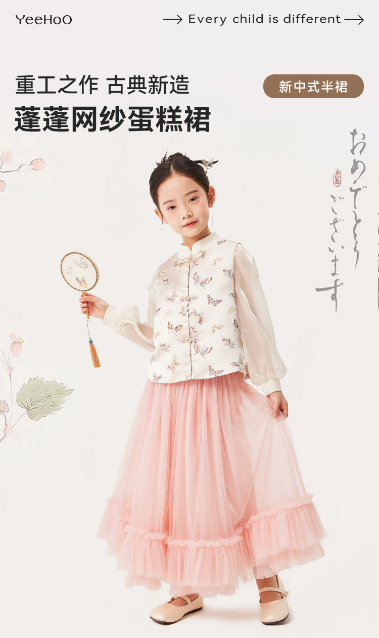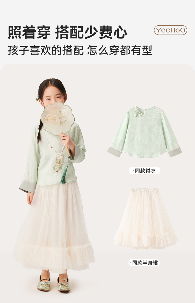 【英氏】【110-170】女童新中式半裙