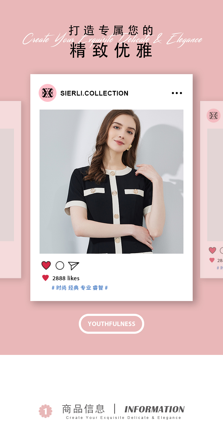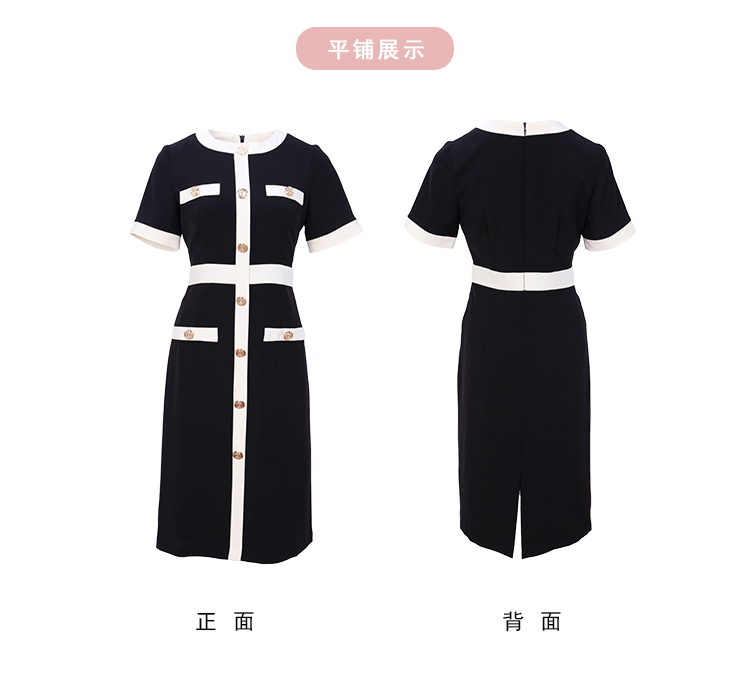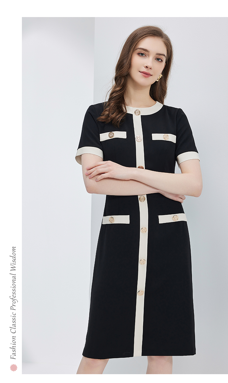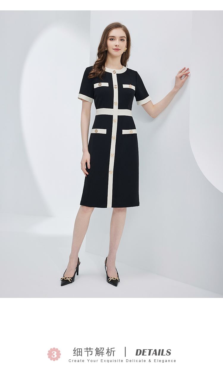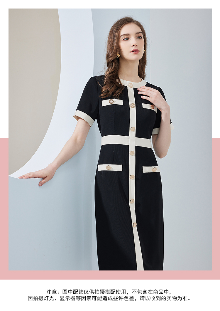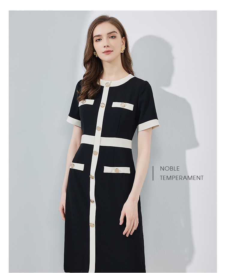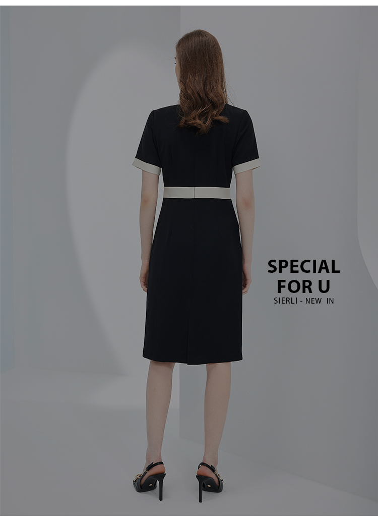 RF8C1斯尔丽瑟俪2023春夏新品优雅时尚职业气质款小香风感撞色连衣裙