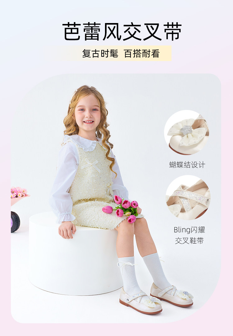泰兰尼斯春季新款公主鞋精致女童小皮鞋时尚软底单鞋可爱演出鞋M03X6A9055