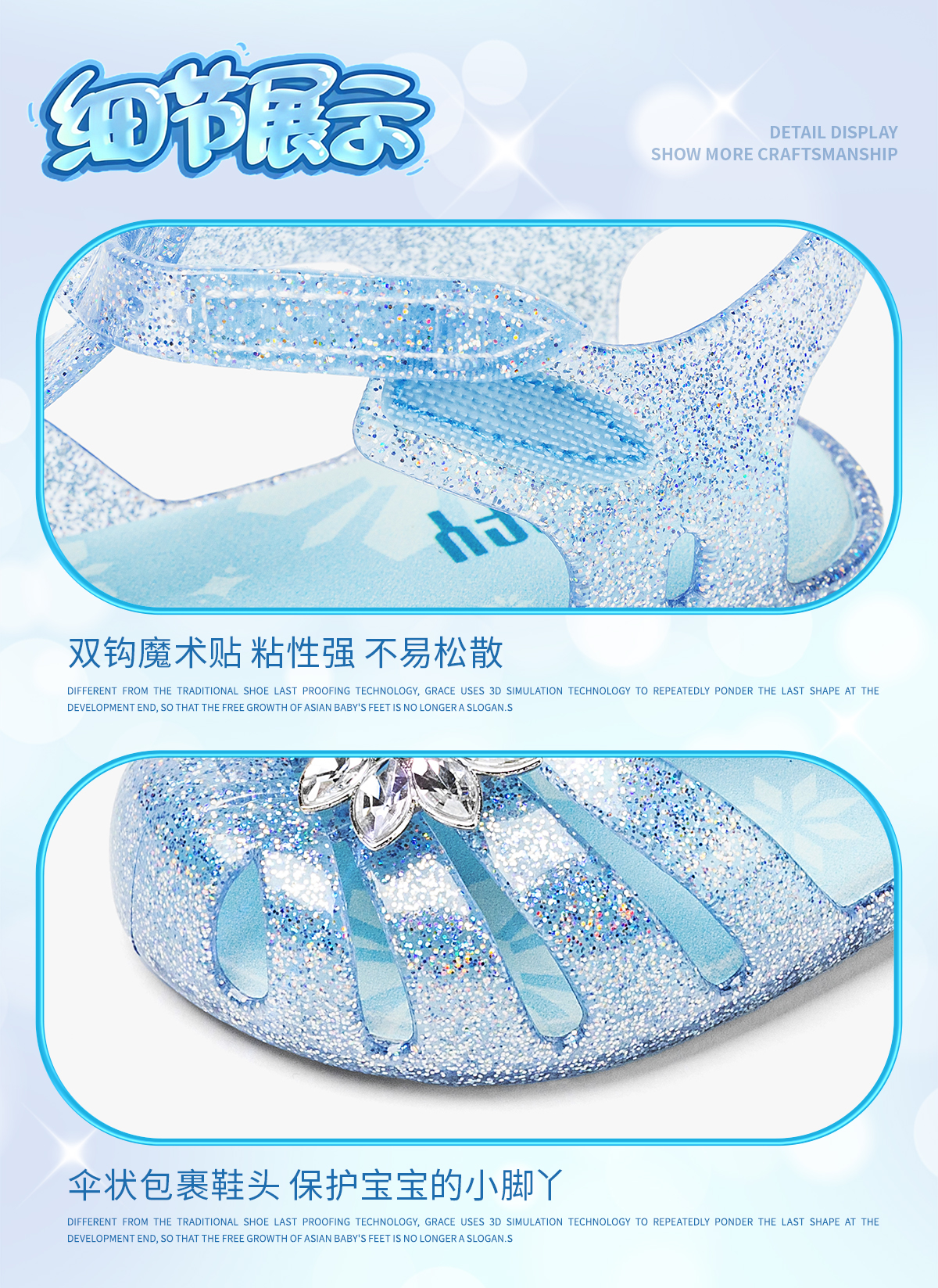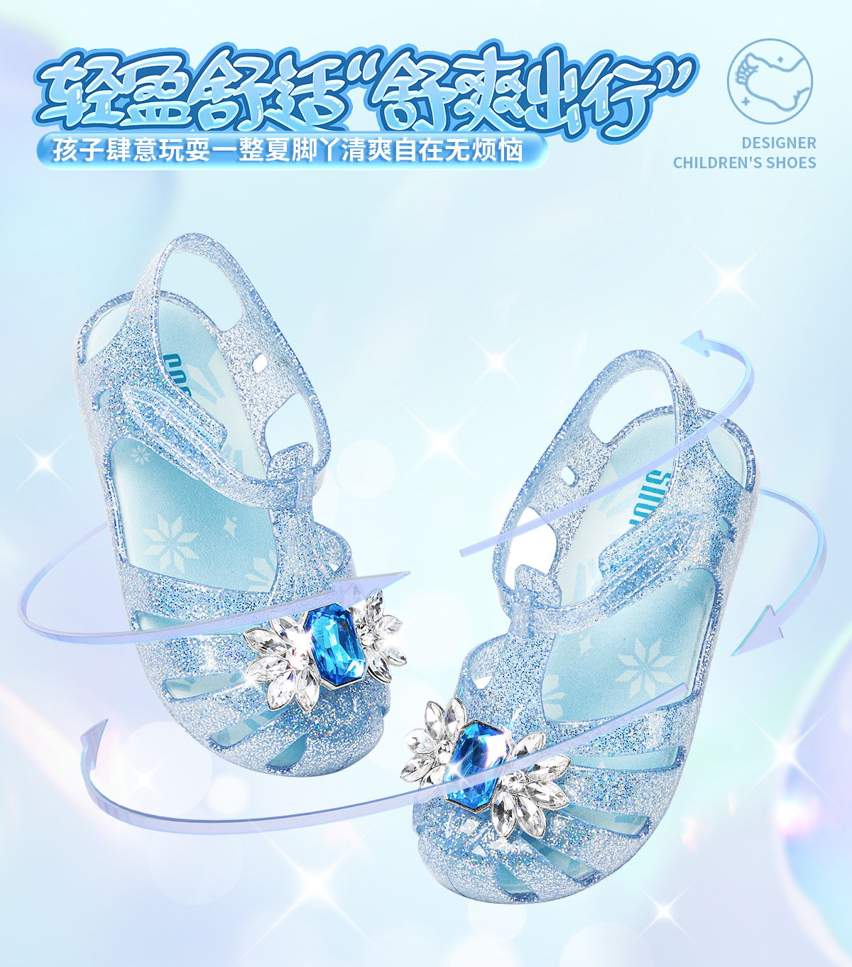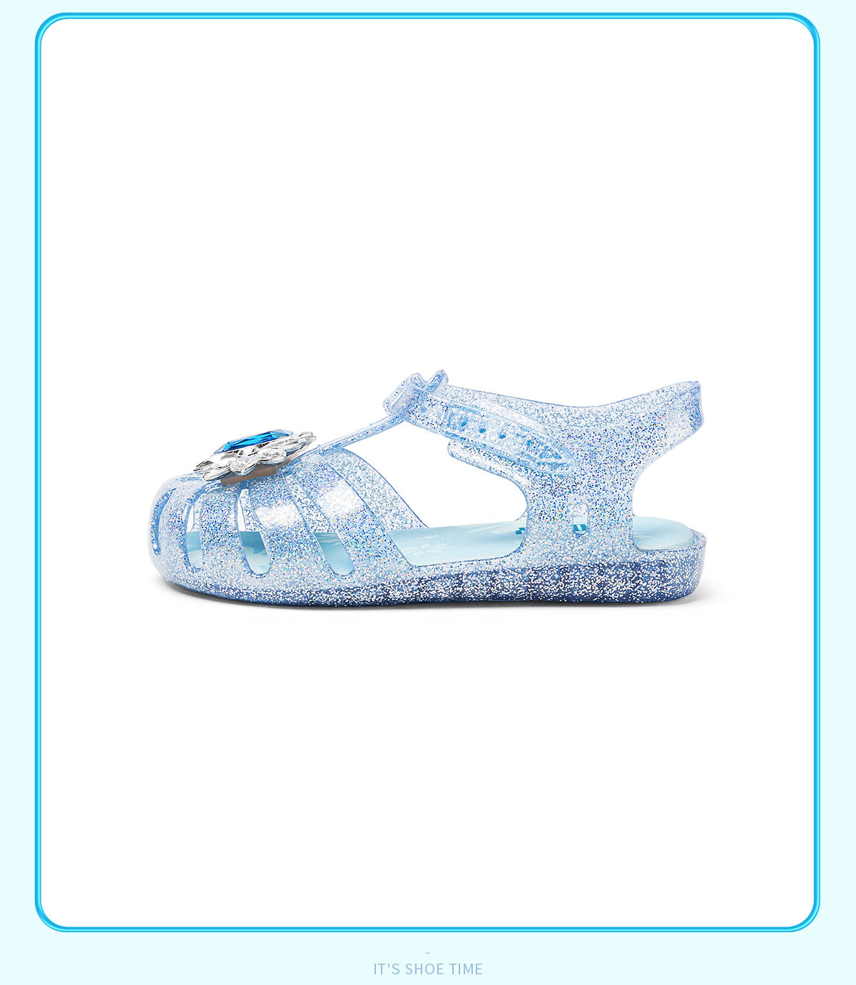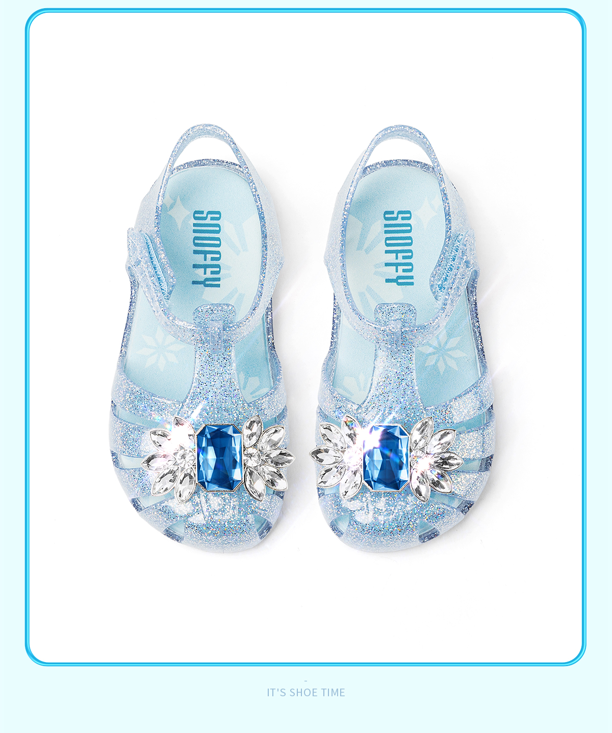Snoffy斯纳菲女童凉鞋爱莎水晶公主鞋2025儿童防滑夏季沙滩小宝宝果冻鞋BF72284★