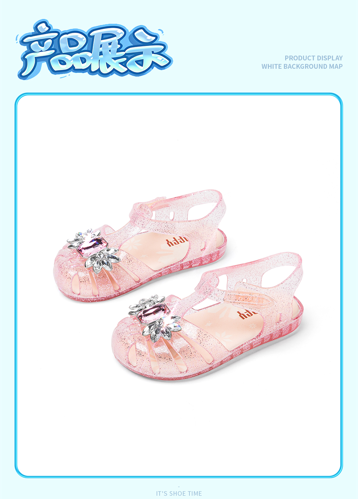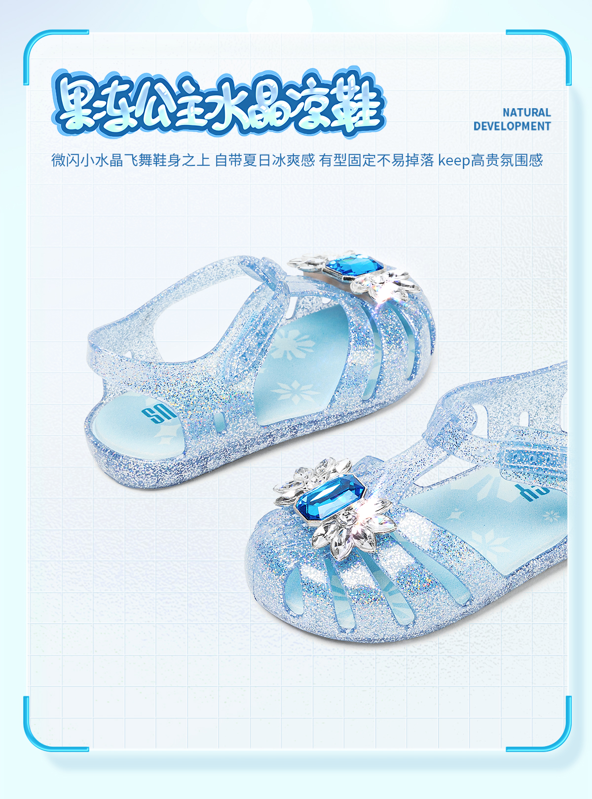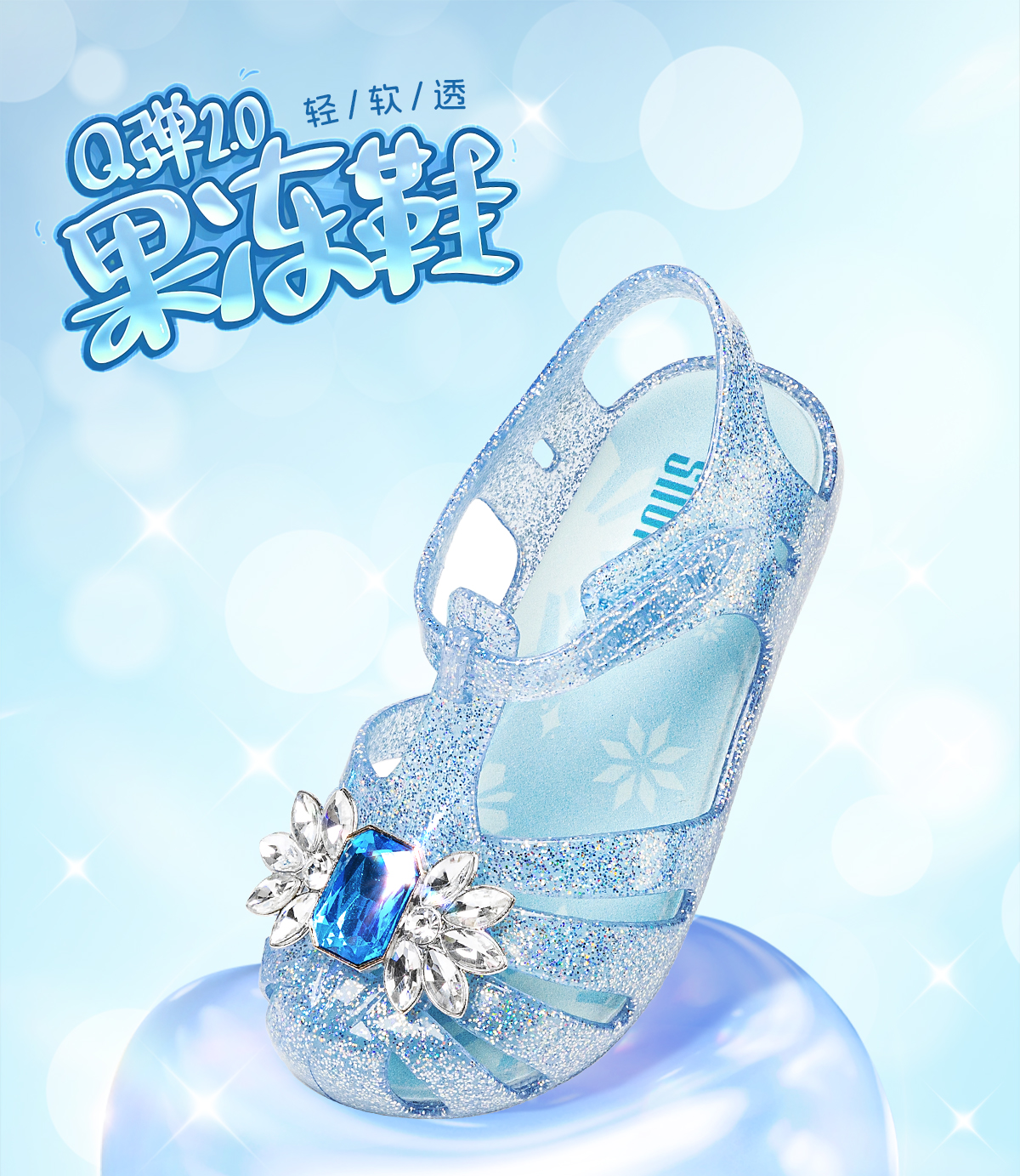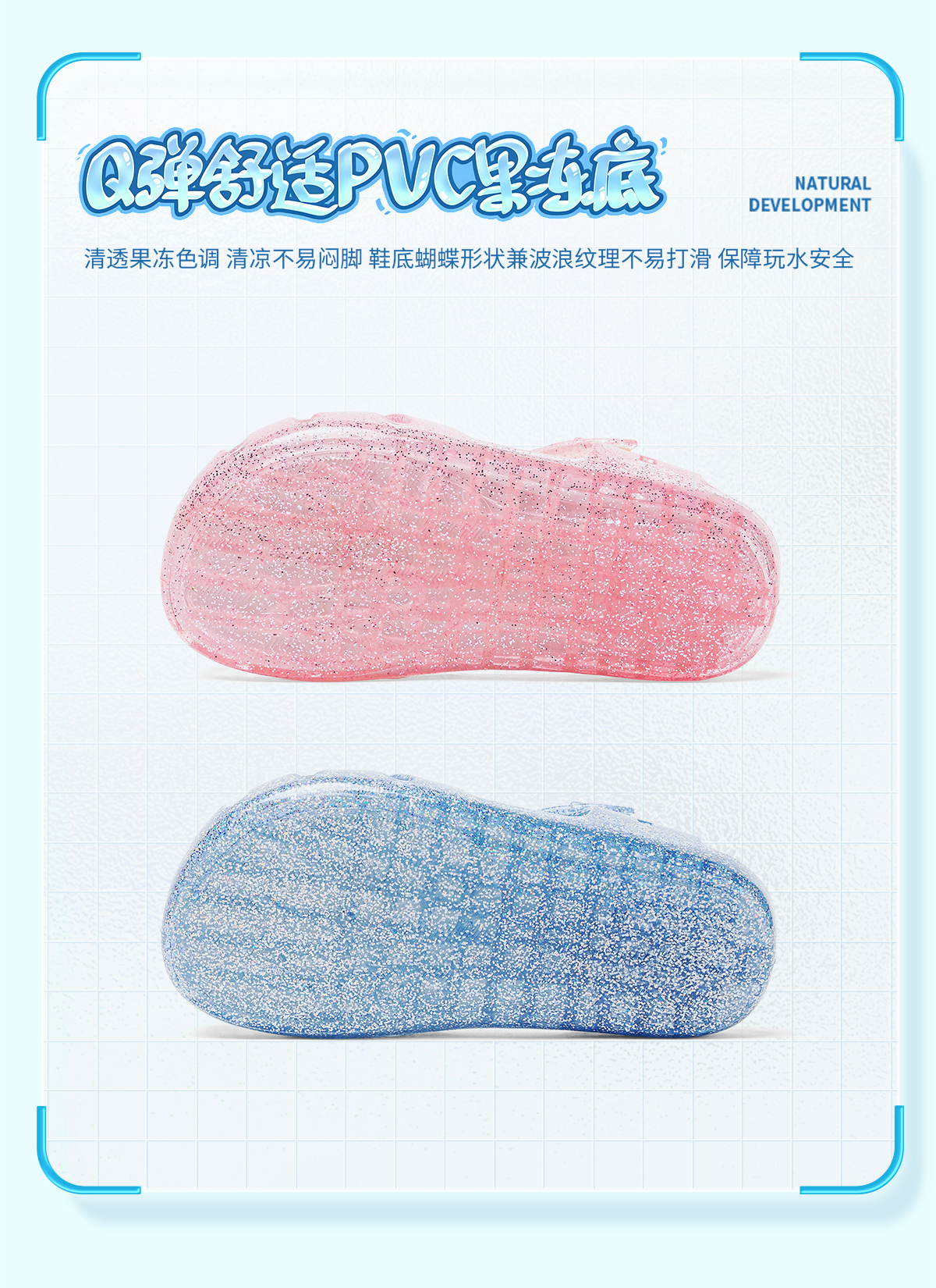 Snoffy斯纳菲女童凉鞋爱莎水晶公主鞋2025儿童防滑夏季沙滩小宝宝果冻鞋BF72284★