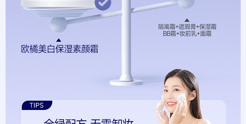 ORGINESE懒人素颜霜脸部防晒隔离遮瑕三合一美白裸妆保湿霜