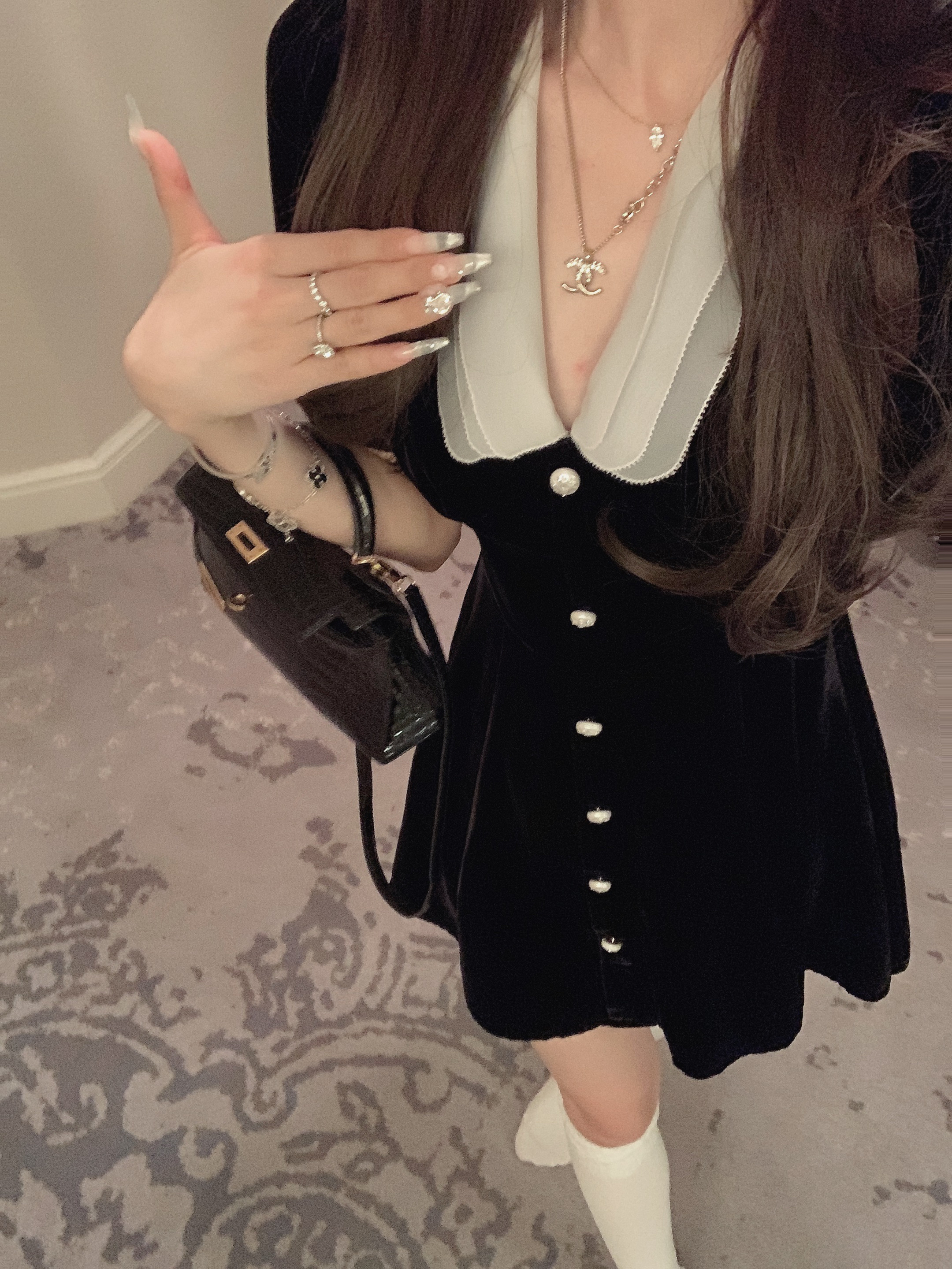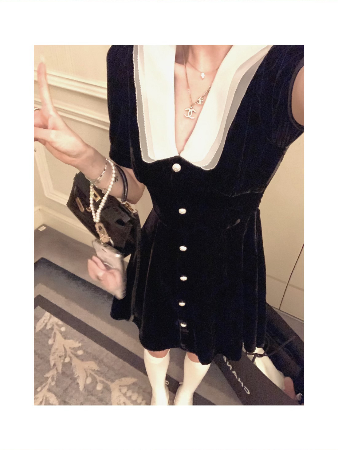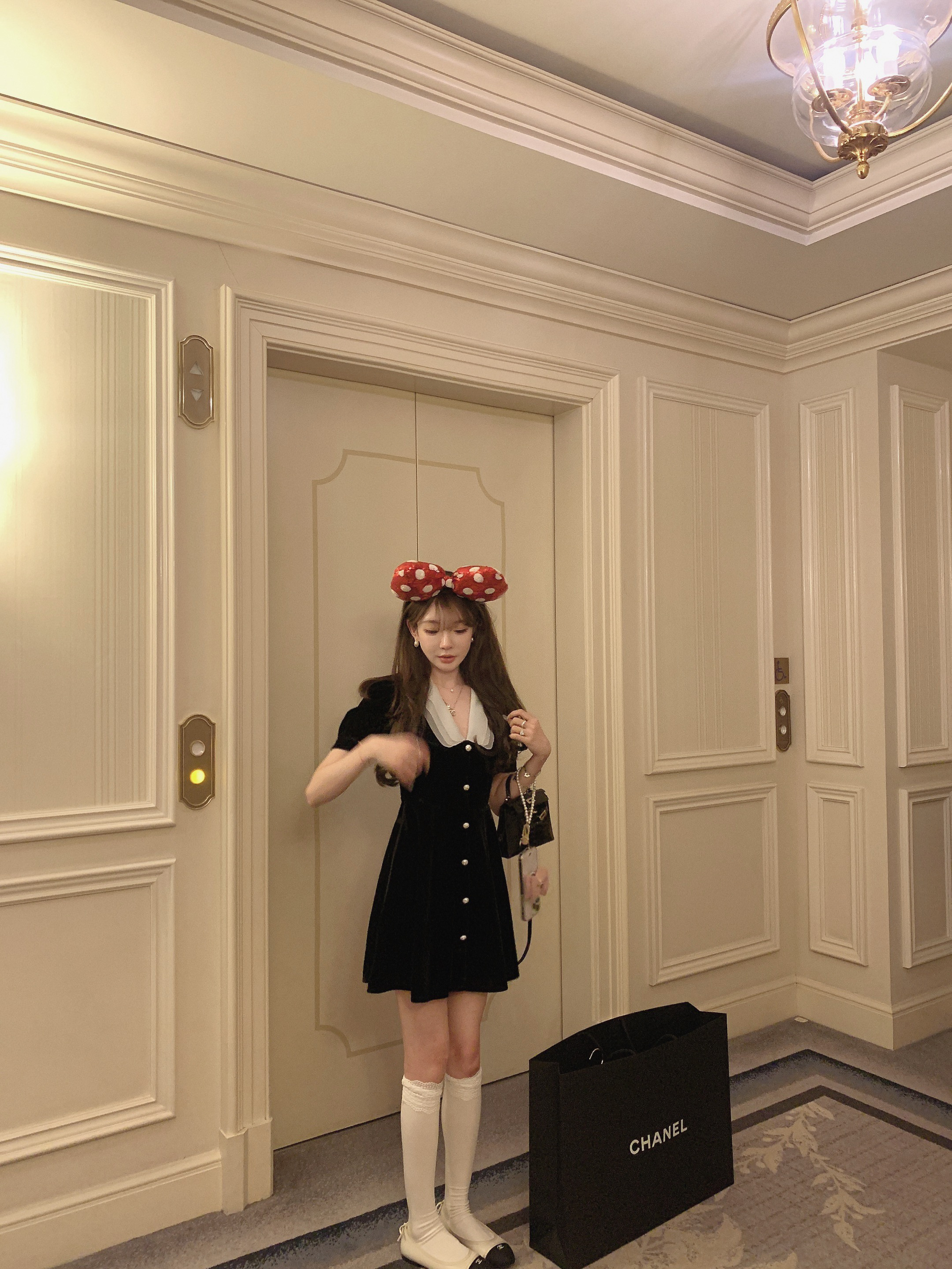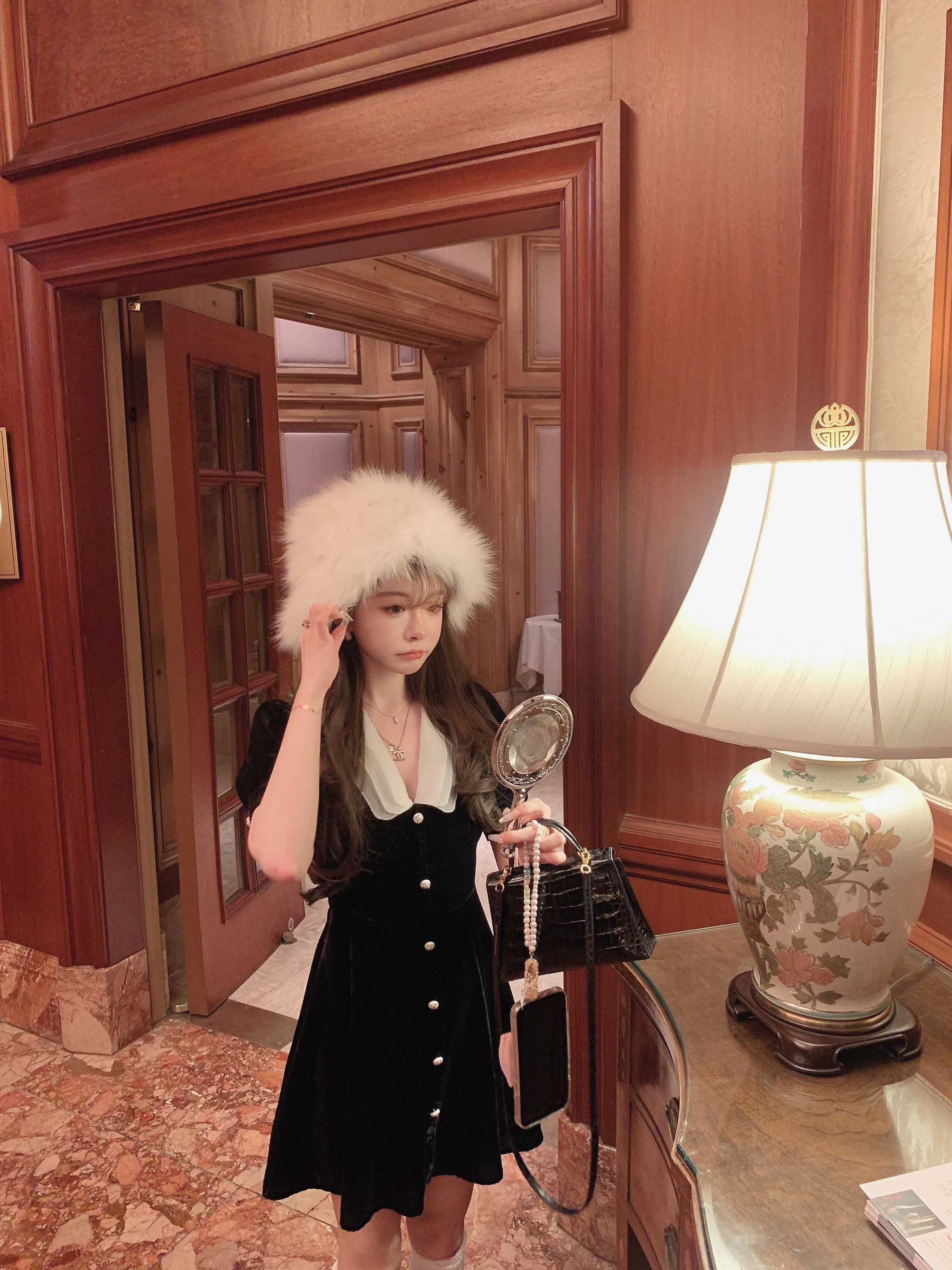 金蘑菇菇 千金丝绒裙 微泡泡袖又蛮有俏皮感的 好驾驭