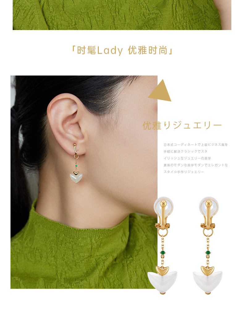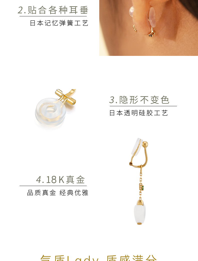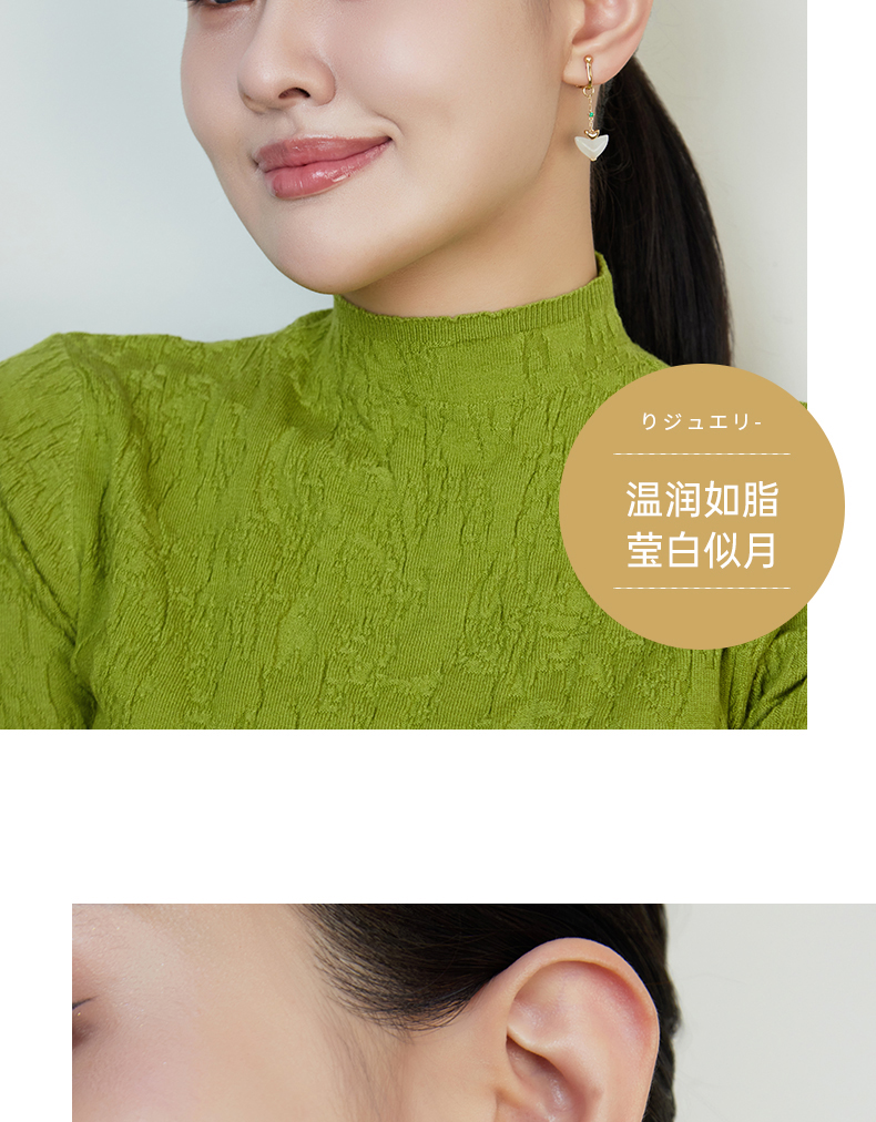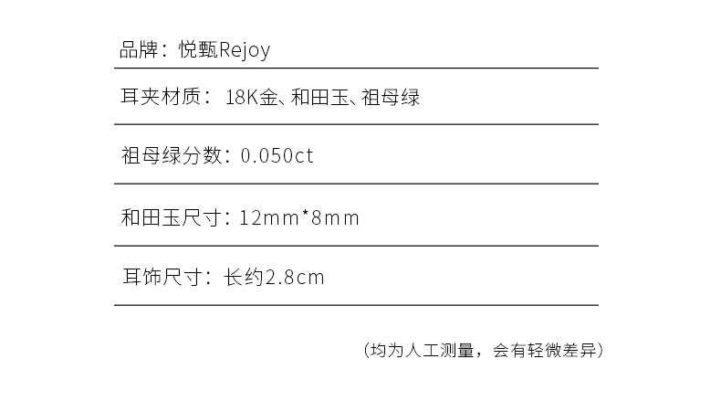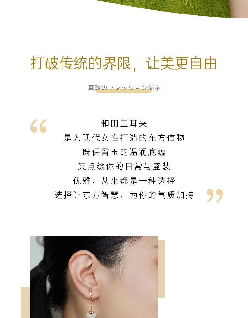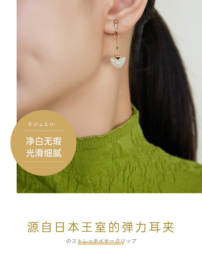 【天猫同款】耳扣款-瑾心-18K金和田玉祖母绿宝石耳夹