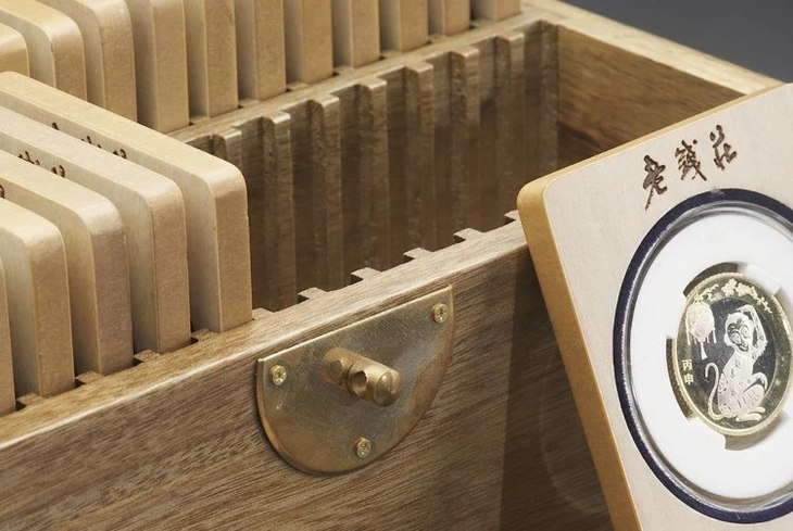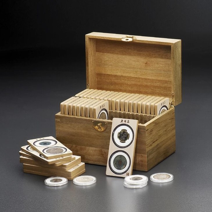 80只装插片式樟木钱币保护箱,外箱纯A级香樟木,箱子尺寸:长232mm宽150mm高152mm,壁厚1cm,箱子里外光洁上透明漆,做工精巧。插片40片,MDF贴椴木皮(因木片薄,原先选用实木很容易变型,故选此材质),插片尺寸:高130mm宽63mm厚7mm,插片开孔:52mm,内圈嵌有绒布圈,方便圆盒嵌入其中稳定,松紧合适而不易脱圈,适合放折十左右的古钱币,银元。金属扣与合页为纯铜材质,整体美观,大方,厚重,高档,永久耐用,不易变型,香气扑鼻,报价包邮但不含塑料圆盒(圆盒标准大小),开发成本很高,开发周期长,首期开发500只,最后仅余20多只,断货后将不再生产,喜欢的朋友不要错过!谢谢!