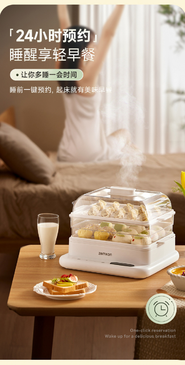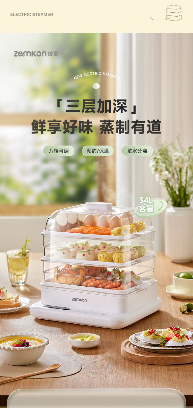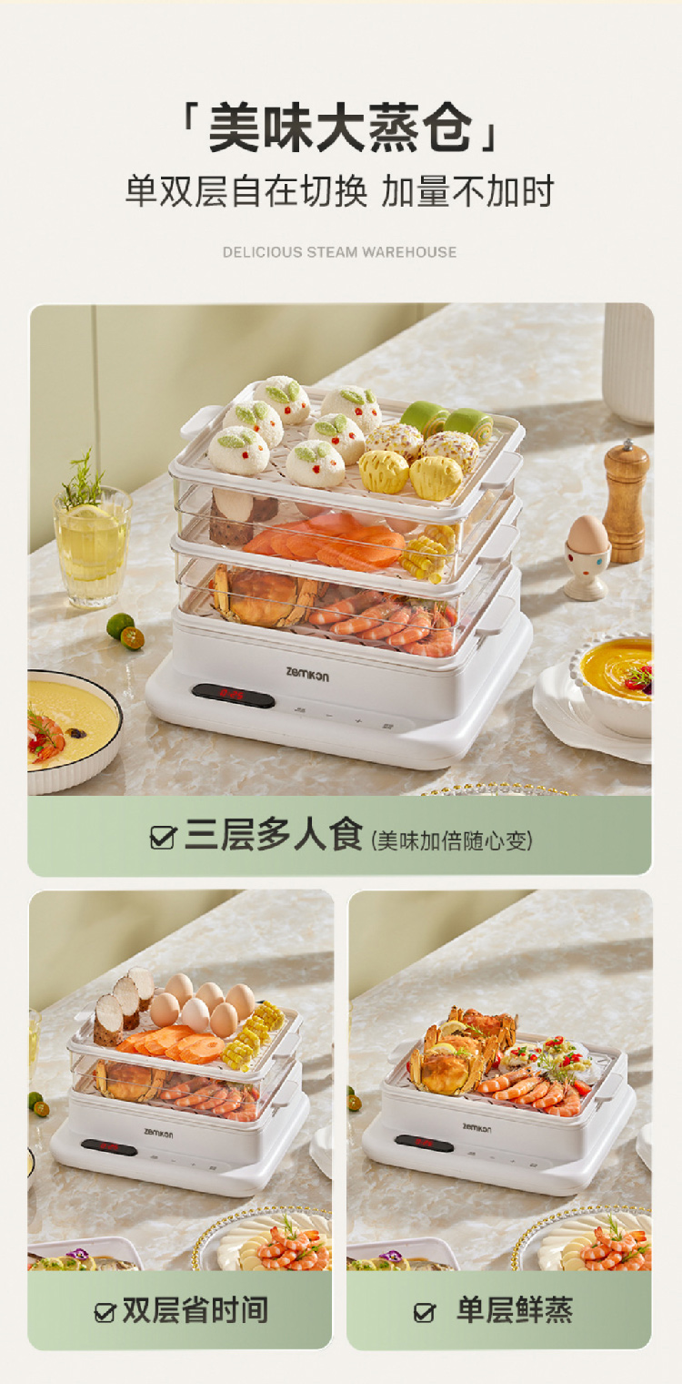 Zemkon家用蒸锅早餐机蒸煮一体锅三层全自动多功能电蒸锅