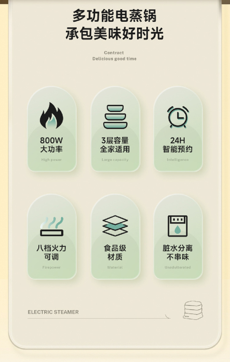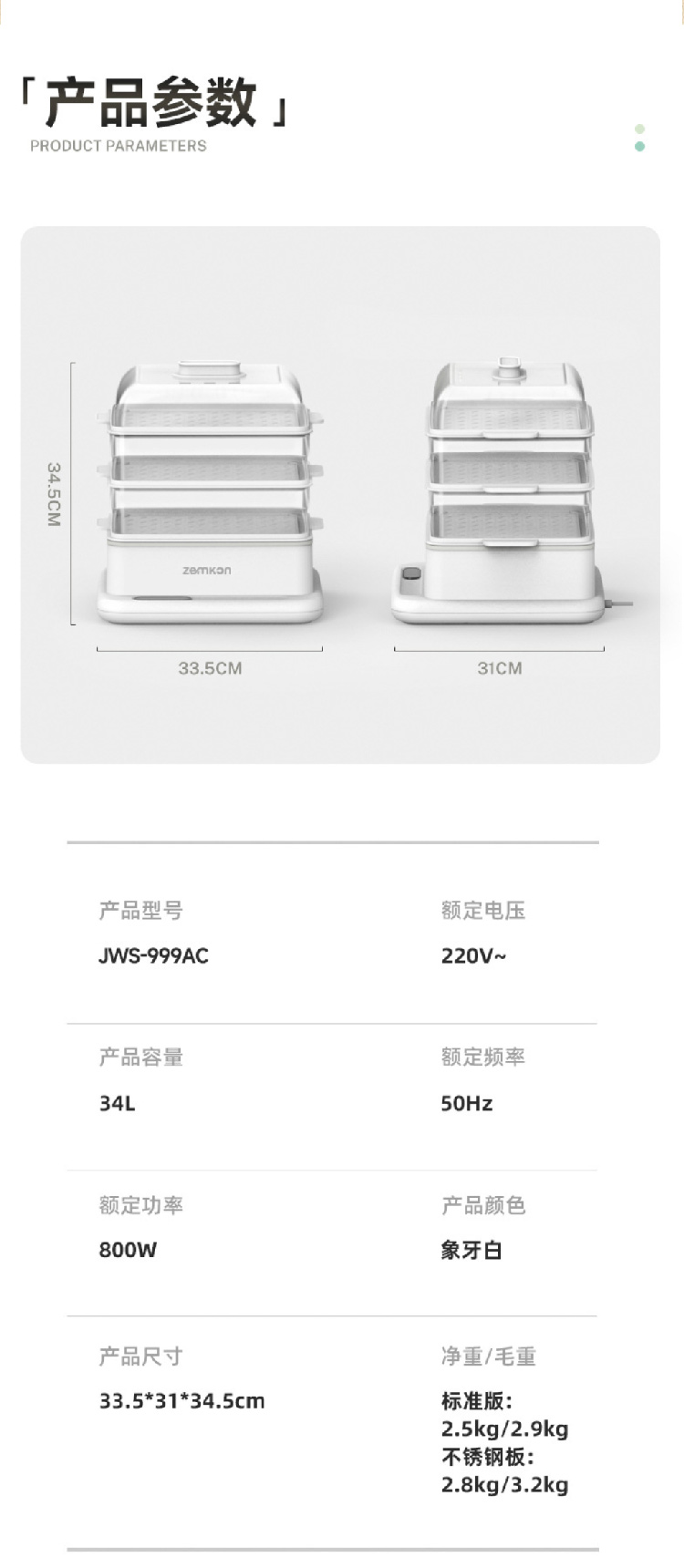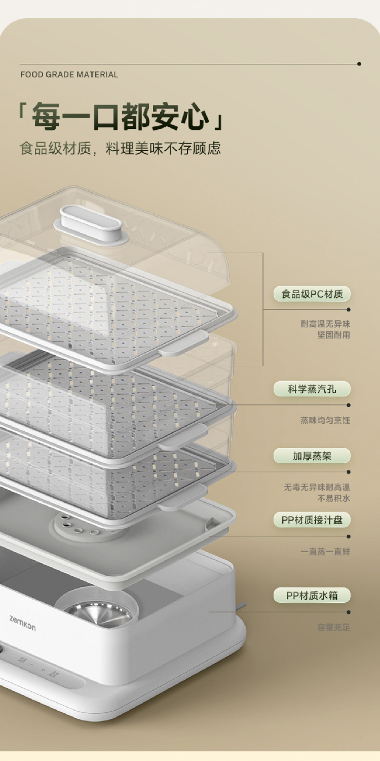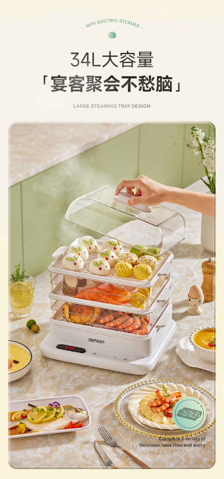 Zemkon家用蒸锅早餐机蒸煮一体锅三层全自动多功能电蒸锅