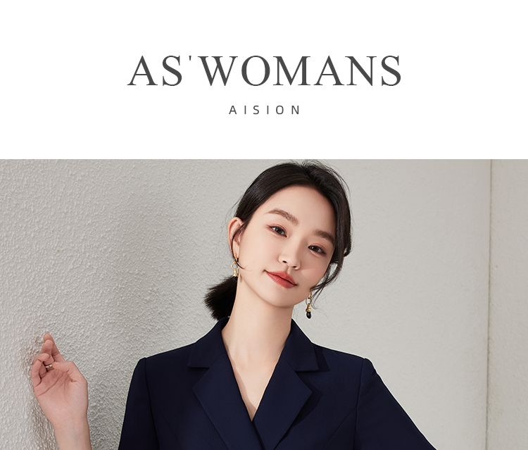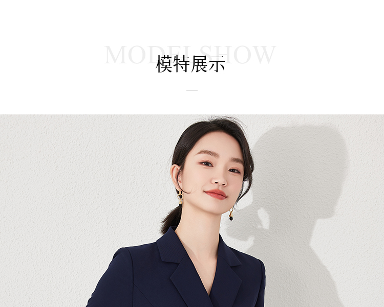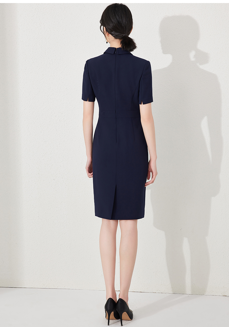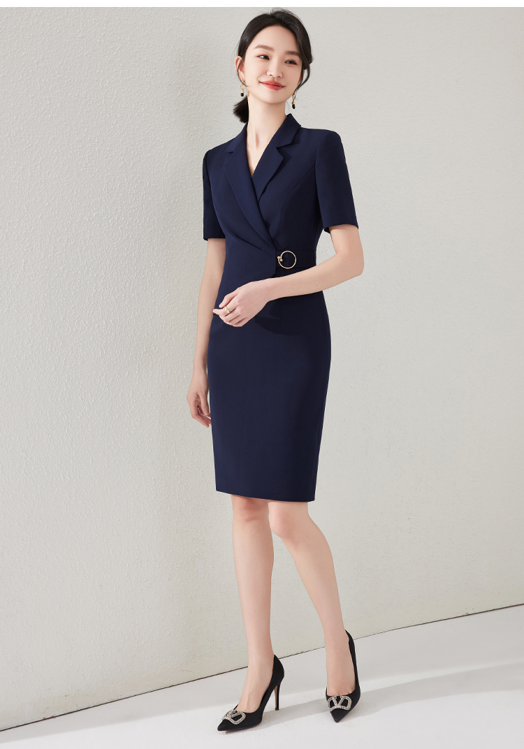IWY/藏青色西装连衣裙短袖售楼部高级感设计师修身气质职业装裙子24Q520