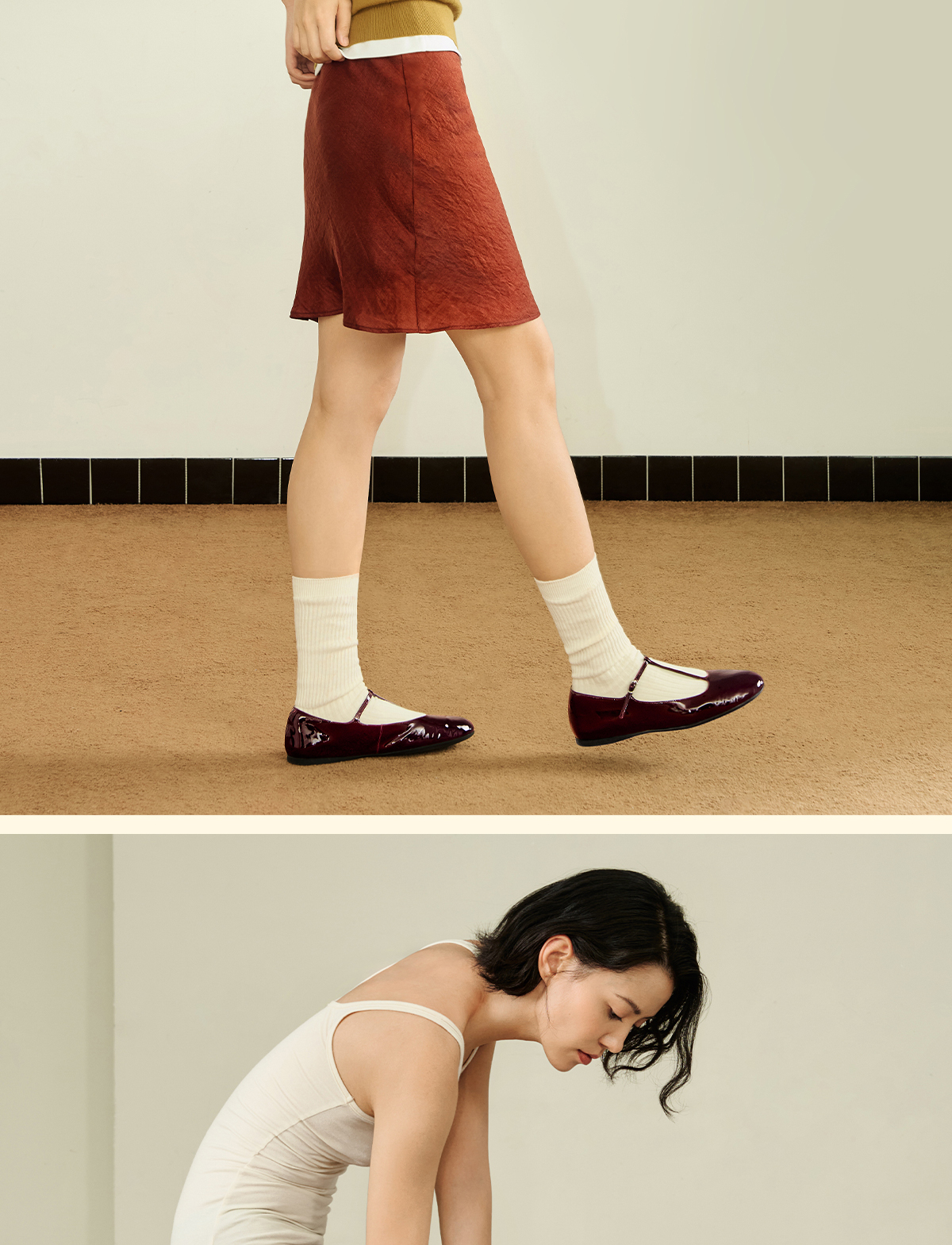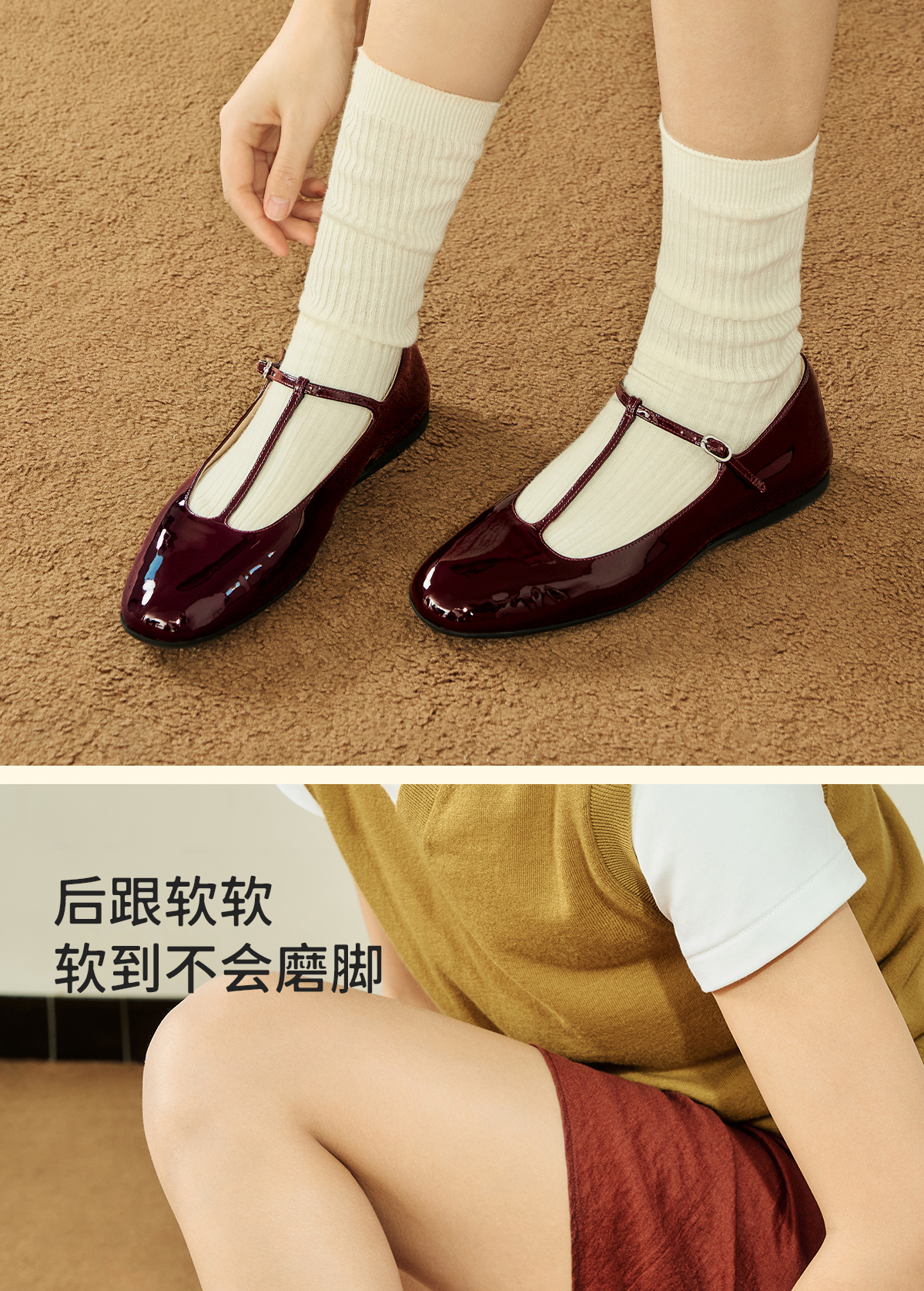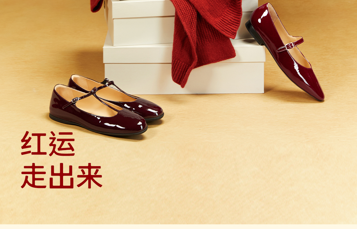 7or9春节本命红平底单鞋休闲法式玛丽珍