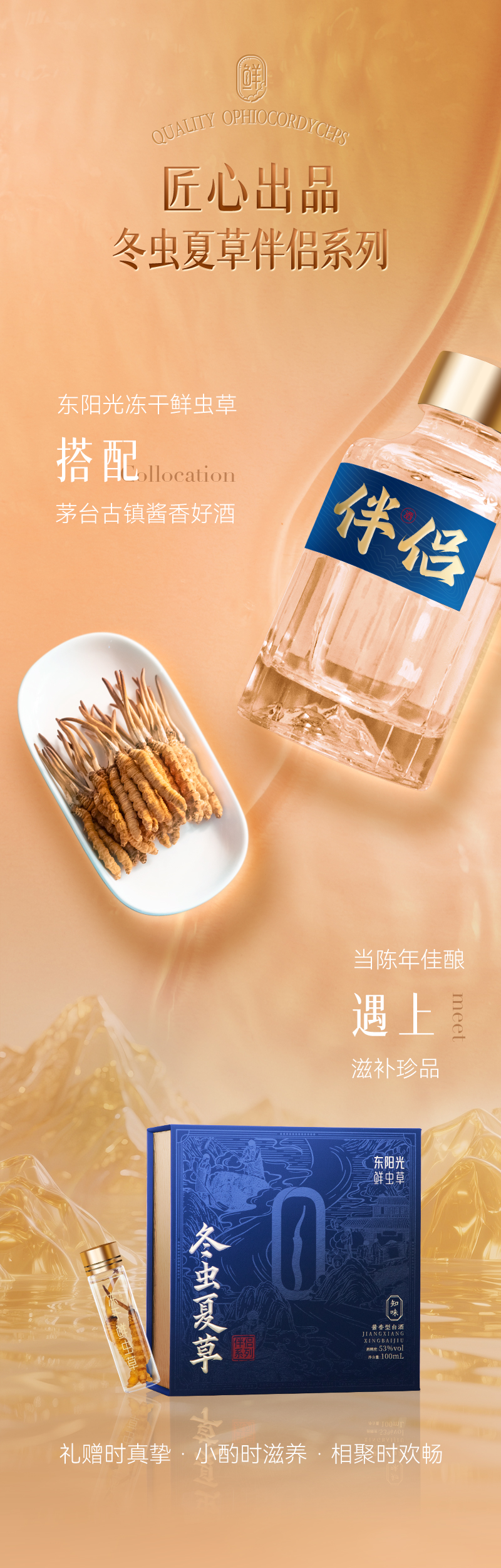东阳光冬虫夏草伴侣酒自用款【知味】100ML酒+3根冬虫夏草(3600+)