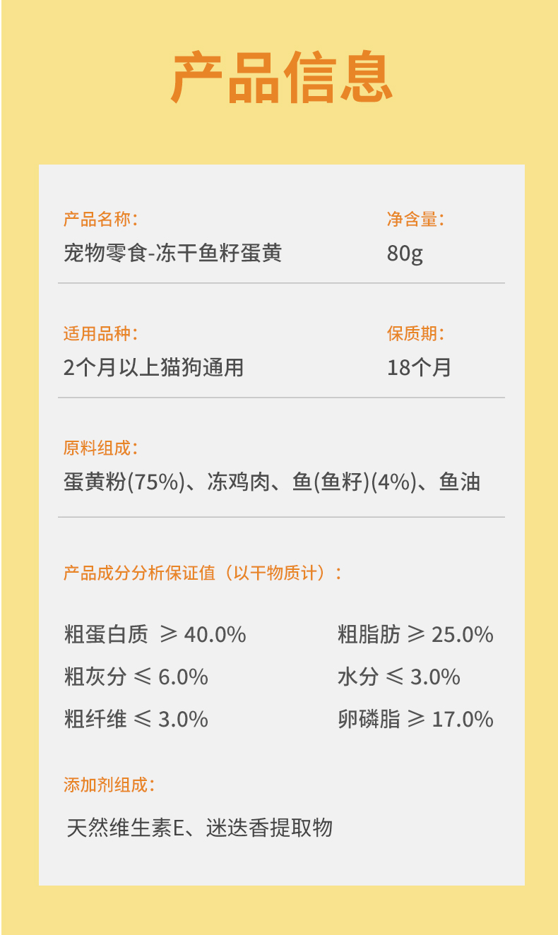 爱立方 冻干零食 鱼籽蛋黄 80g 冻干零食 补充卵磷脂
