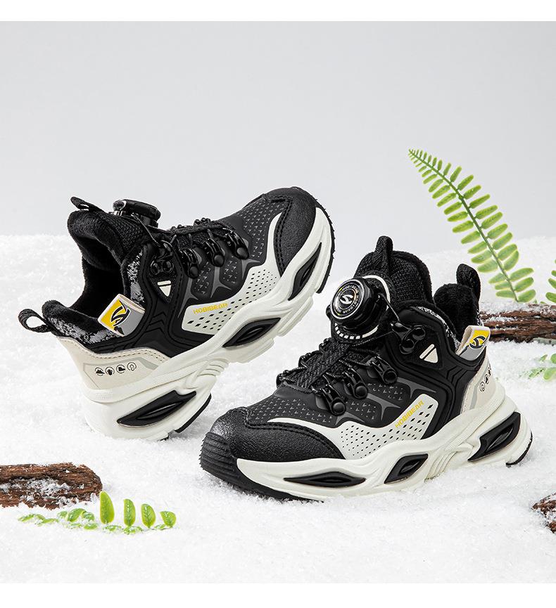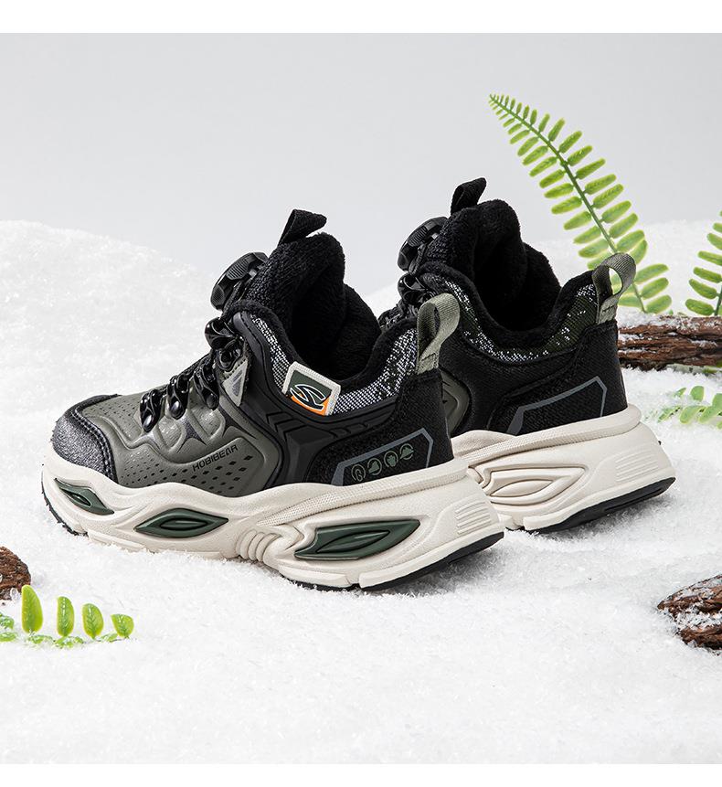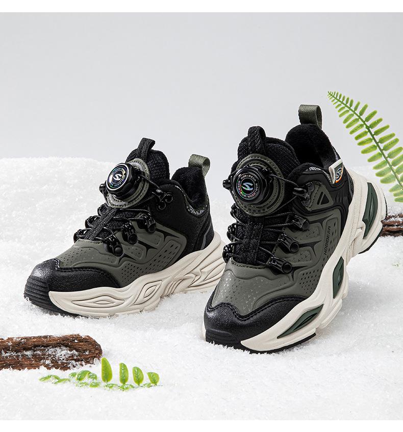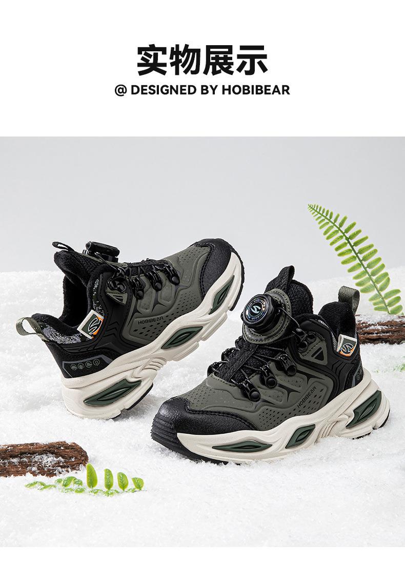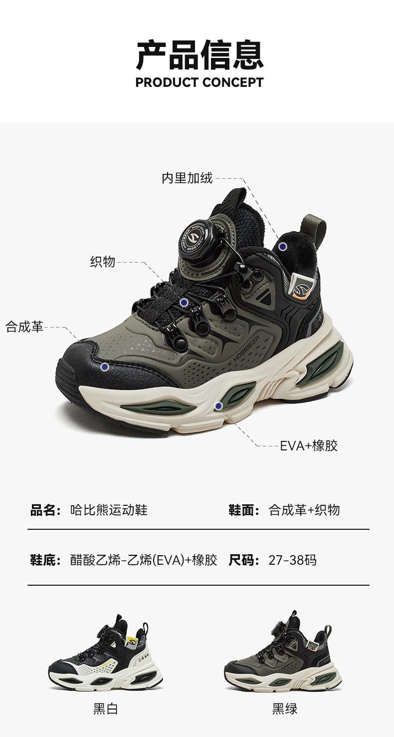 哈比熊加绒儿童运动鞋冬季男童纽扣鞋防寒老爹鞋保暖棉鞋